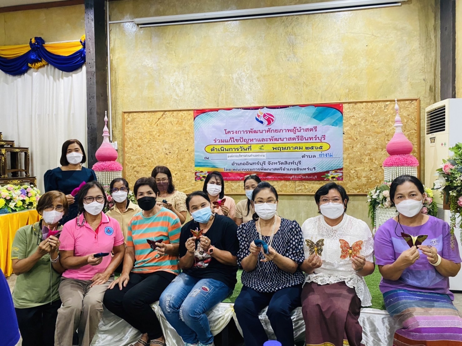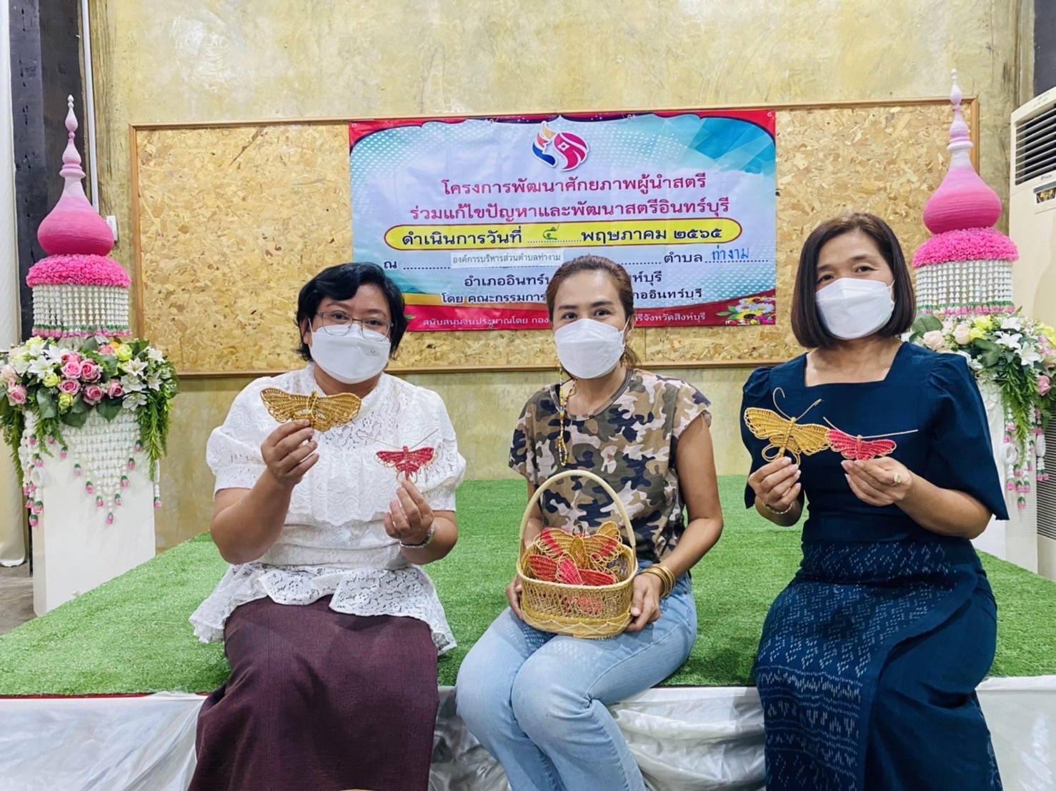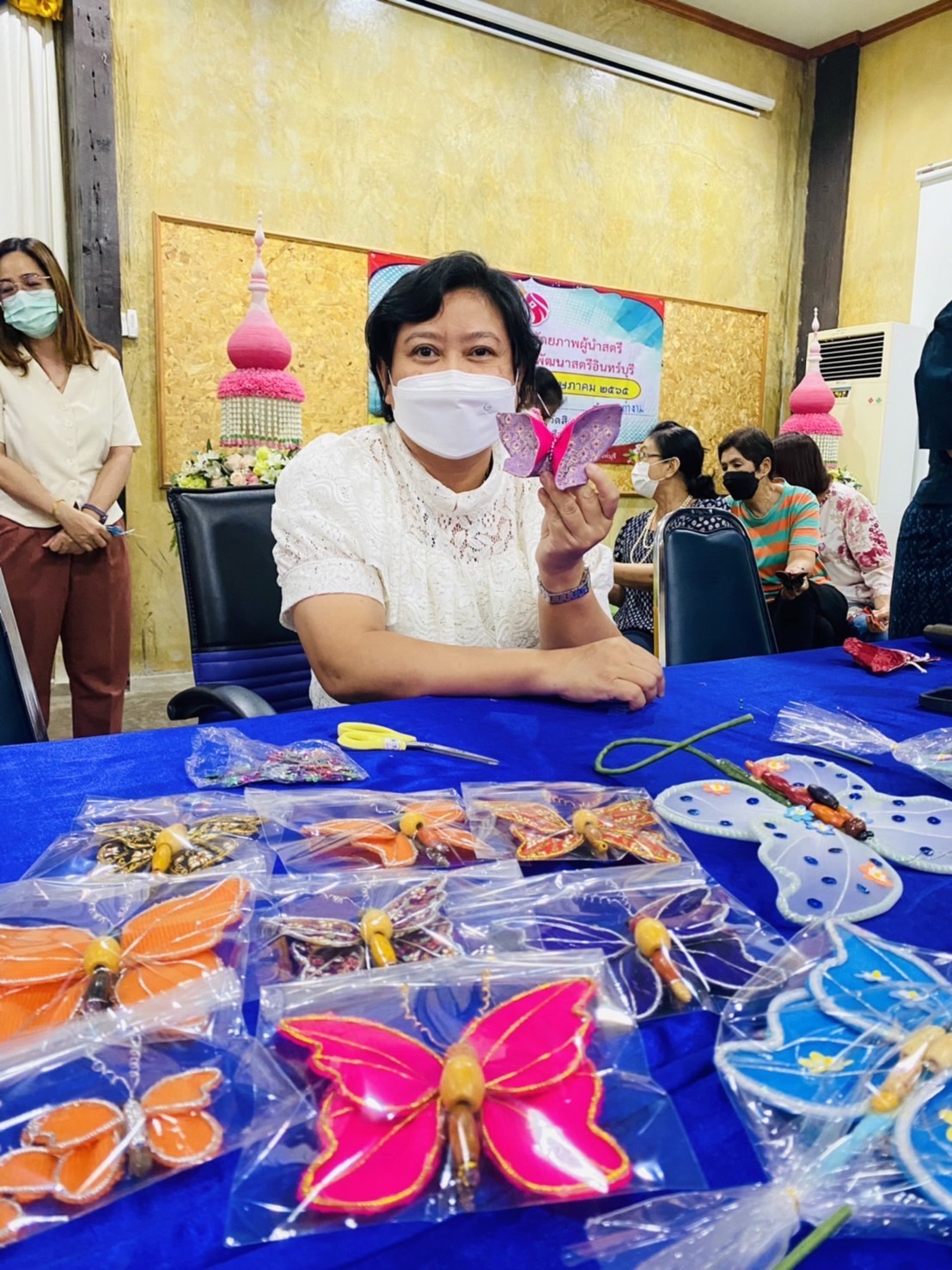 วันที่ 5 พฤษภาคม 2565 เวลา 09.00 น.เป็นต้นไป นางศิริลักษม์ เหมาะพิชัย นายอำเภออินทร์บุรี พร้อมด้วยนางพัชรินทร์ ทองเอื้อ พัฒนาการอำเภออินทร์บุรี กลุ่มแม่บ้านสตรีตำบลท่างาม ร่วมกันประดิษฐ์ผีเสื้อ เพื่อเป็นส่วนหนึ่งในนิทรรศการเฉลิมพระเกียรติ ระหว่างวันที่ 1-15 สิงหาคม 2565 ณ บริเวณถนนราชดำเนินกลาง กรุงเทพมหานคร ซึ่งการร่วมกิจกรรมในครั้งนี้ คณะกรรมการพัฒนาบทบาทสตรีอำเภออินทร์บุรี ทุกคนต่างร่วมมือร่วมใจกันประดิษฐ์ผีเสื้อจากผ้า เพื่อแสดงออกถึงความจงรักภักดี และสำนึกในพระมหากรุณาธิคุณของสมเด็จพระนางเจ้าสิริกิติ์ พระบรมราชินีนาถ พระบรมราชชนนีพันปีหลวง ที่ทรงงานหนัก ด้วยพระวิริยะ อุตสาหะ พระปรีชาชาญของพระองค์ในการส่งเสริมสนับสนุนสวมใส่ผ้าไทย ใช้ของไทย เพิ่มรายได้ให้กับครัวเรือน