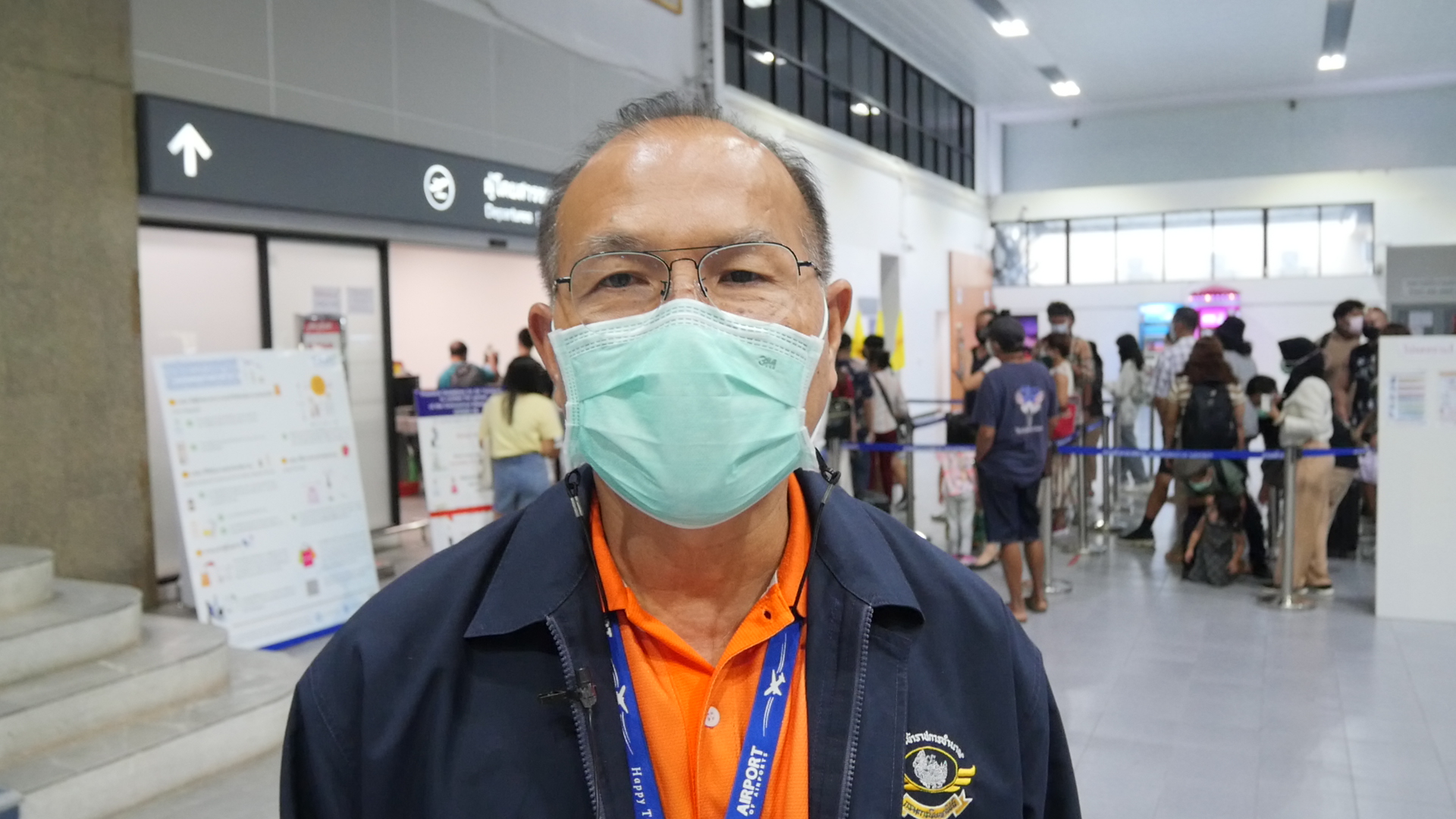 อย่างไรก็ตามการเพิ่มความเข้มงวดเราไม่ได้เพิ่มเพราะว่าเราเข้มงวดตลอดอยู่แล้ว เรื่องการรักษาความปลอดภัย ไม่มีคำว่าหย่อนลงหรือน้อยลงนะครับเราต้องเข้มงวดตลอด เราจะแบ่งส่วนของเจ้าหน้าที่รักษาความปลอดภัยถ้าเป็นเจ้าหน้าที่ของด้านตรวจอาวุธก็คือเจ้าหน้าที่ที่จะตรวจผู้โดยสารที่จะขึ้นเครื่องเรามีอยู่ 17 คน แล้วก็ในส่วนของเจ้าหน้าที่รักษาความปลอดภัยทั่วไปที่เราจ้างจากองค์การทหารผ่านศึกและรับจ้าง 14 คน แต่ว่าจะแยกส่วนการปฏิบัติหน้าที่ คนที่จะเข้าไปทางการตรวจรักษาตรวจเข้าพื้นที่หรือไปขึ้นเครื่อง จะต้องเป็นหน้าที่ที่มีได้รับใบรับรองจากสำนักงานการบินพลเรือนด้านการตรวจค้น อันนี้ก็เป็นประเด็นหลัก
