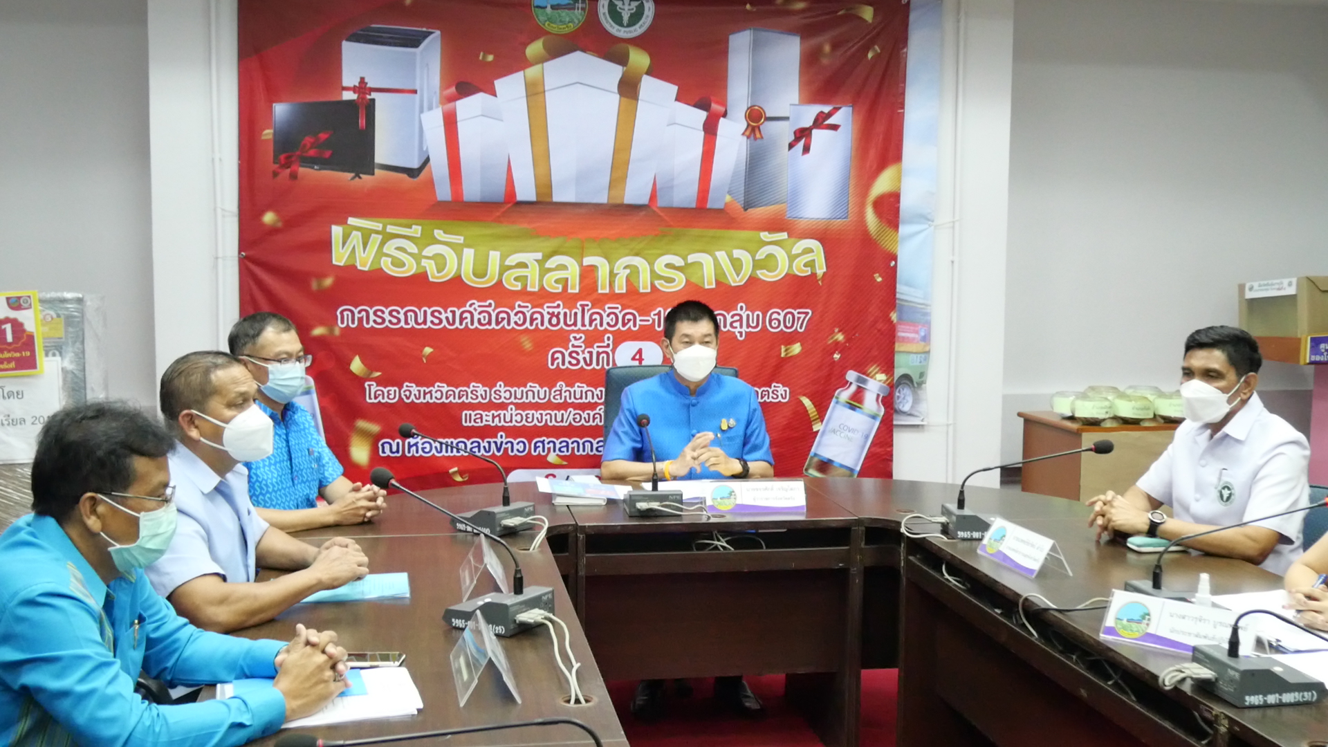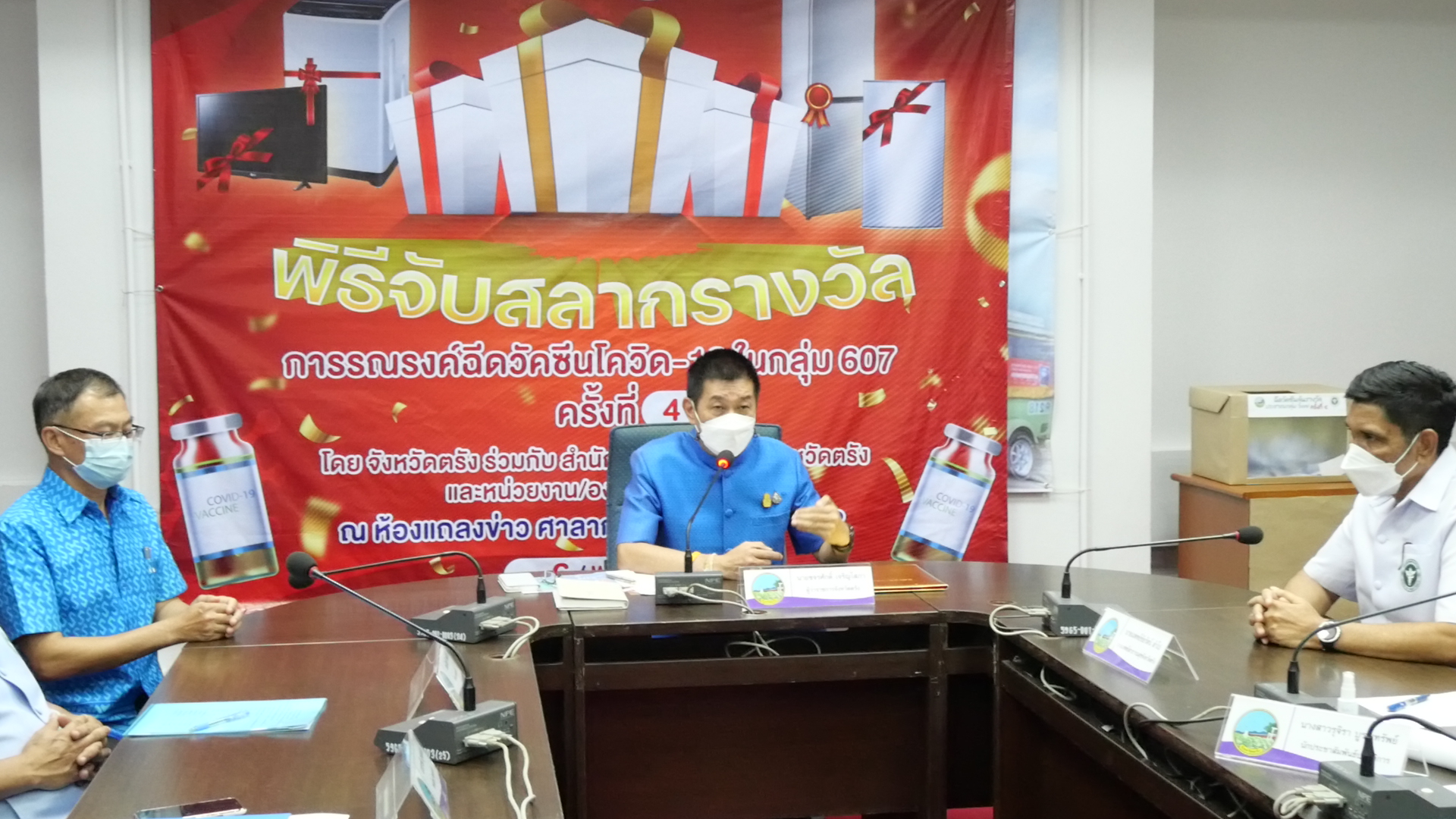 อย่างไรก็ตาม วันนี้ที่ห้องประชุมลิบง ได้มีการจับรางวัลมอบโชคให้กับผู้ที่มาฉีดวัคซีนเข็มกระตุ้นครั้งที่ 4 โดยมีผู้ว่าราชการจังหวัดตรังเป็นผู้มอบโชค โดยมีเป้าหมายเชิญชวนให้ชาวตรังมาฉีดวัคซีนเพิ่มขึ้น นอกจากได้รับวัคซีนแล้วยังได้รับรางวัลอีกด้วย ซึ่งมีทั้ง โทรทัศน์ ตู้เย็น เงินสด เป็นต้น