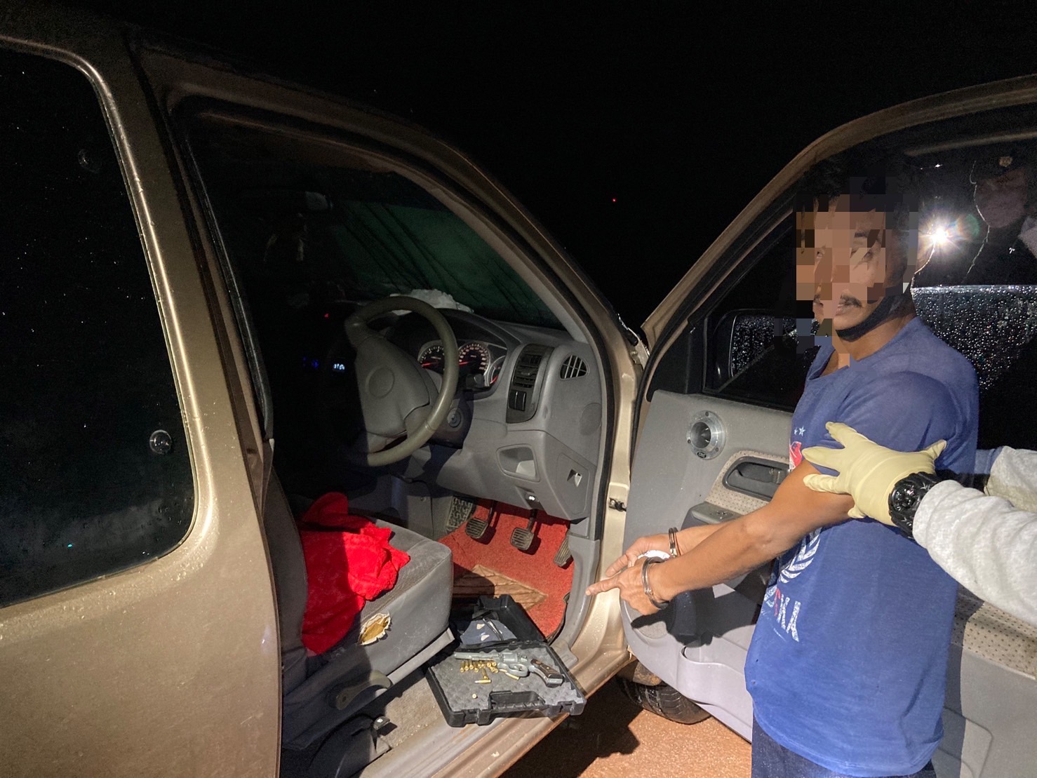 พร้อมด้วยของกลาง ลำดับที่ 1 รถยนต์กระบะ ยี่ห้อ ISUZU รุ่น SLX2.5 สีน้ำตาล หมายเลขทะเบียน ผข 3301 สุพรรณบุรี