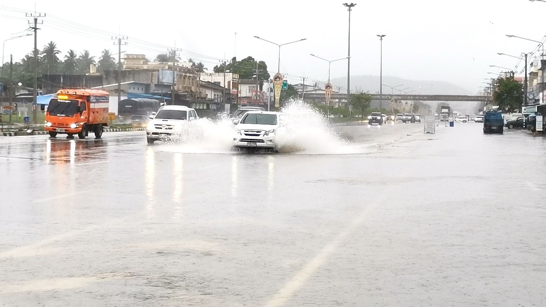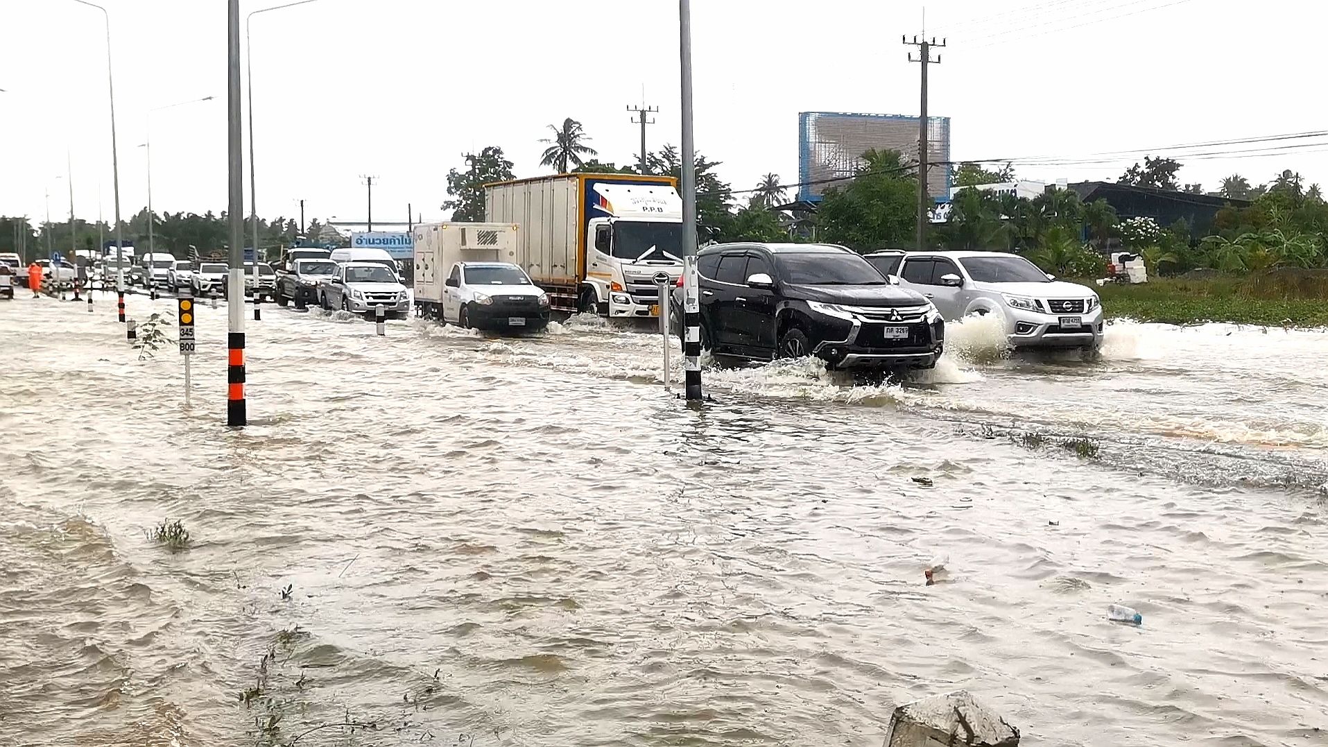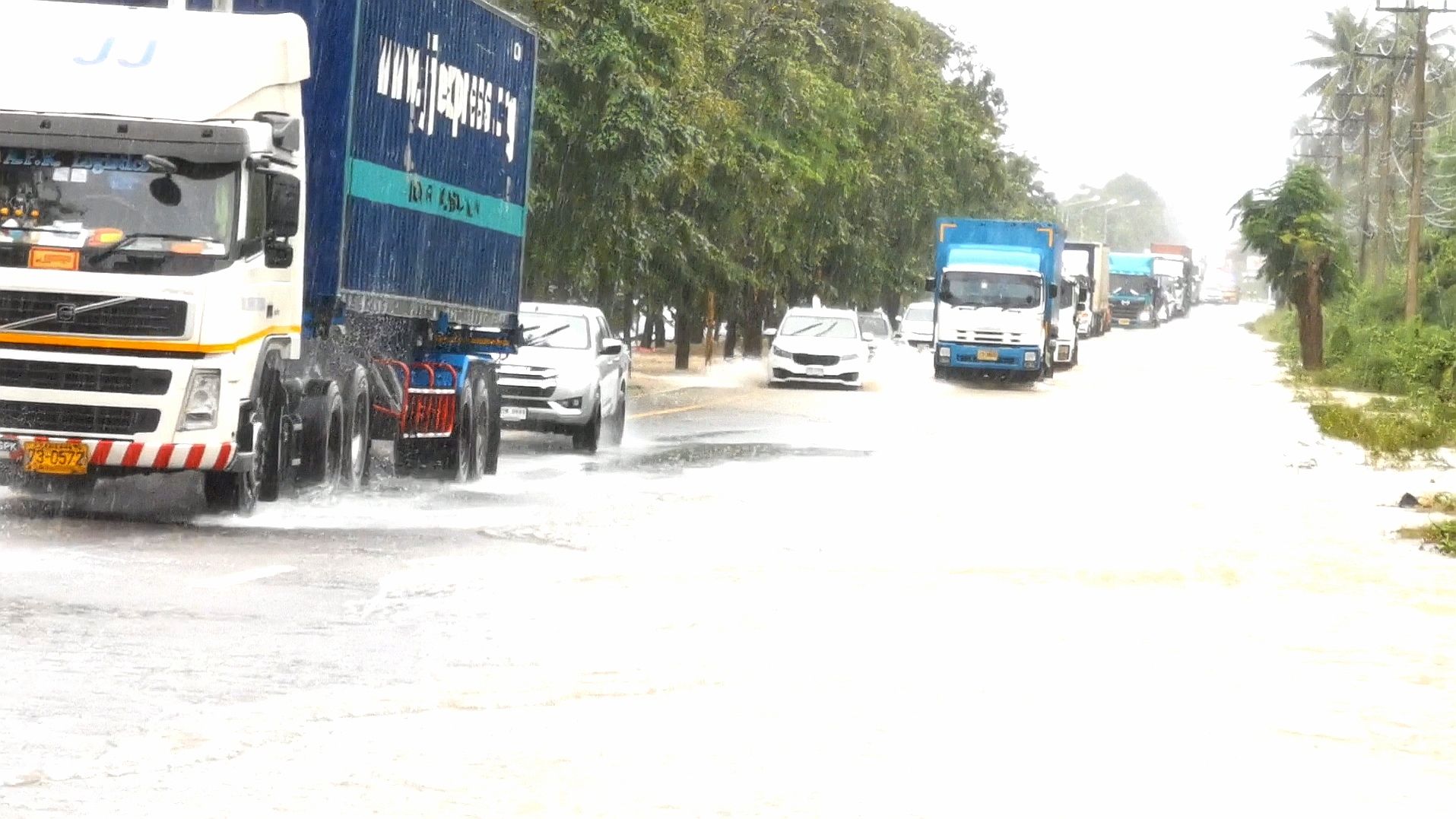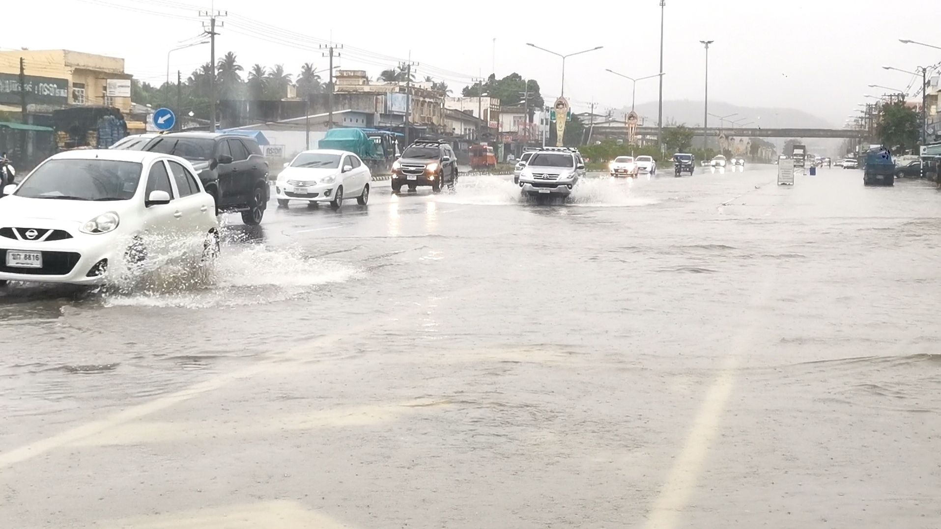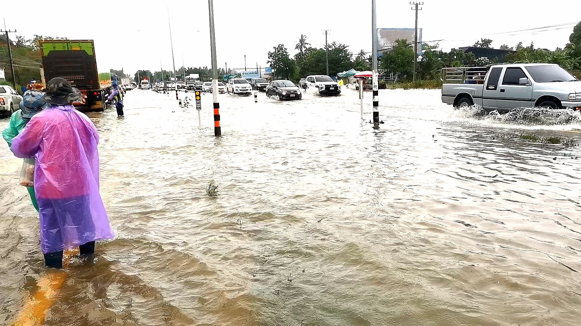 ทับสะแกน้ำท่วมหนัก น้ำป่าไหลข้ามถนนเพชรเกษม รถติดยาวอย่างหนัก