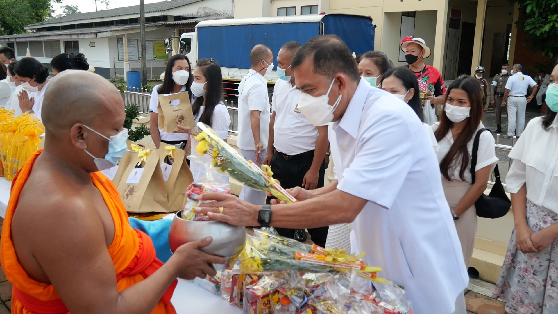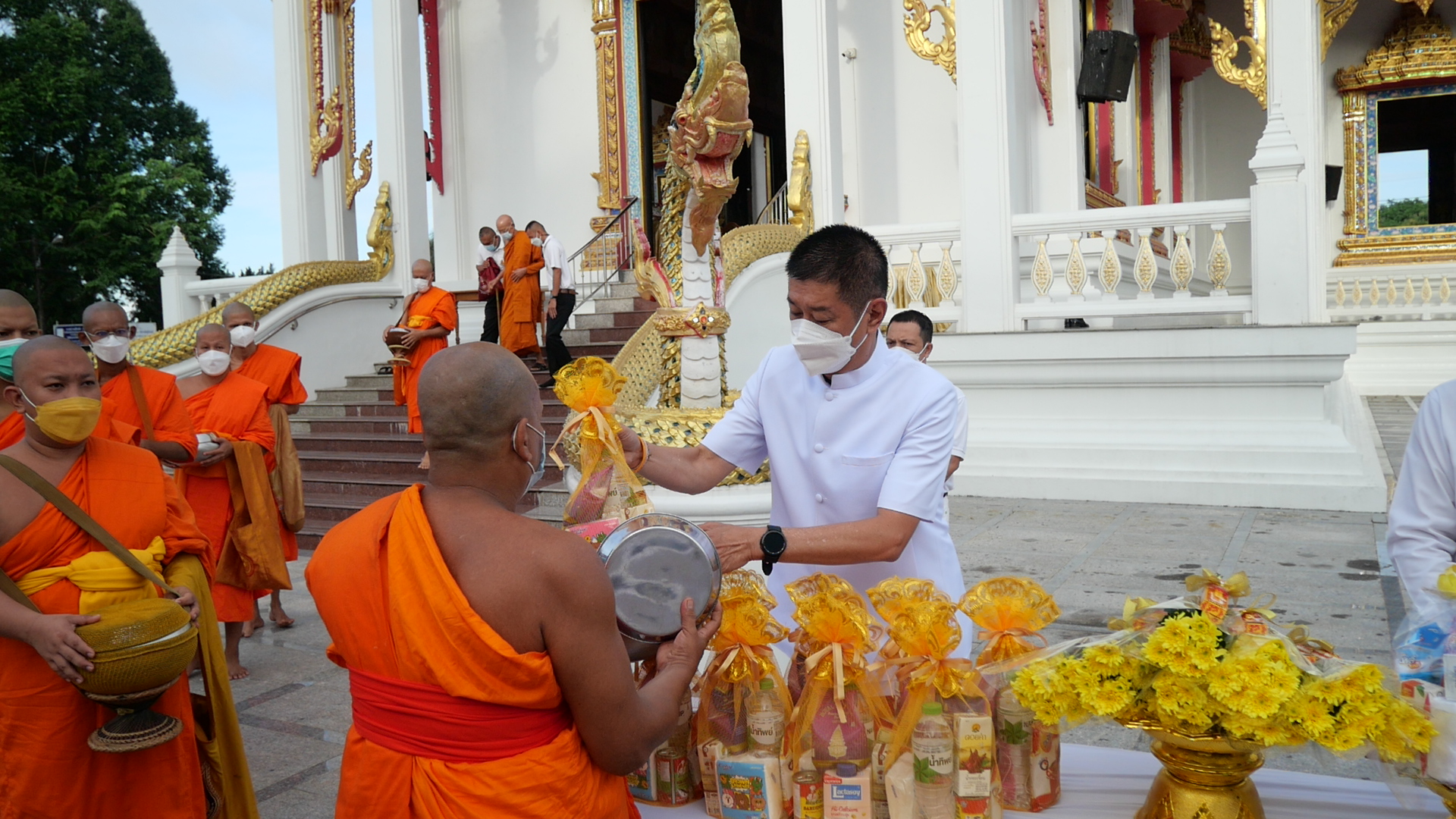 จังหวัดตรัง จัดพิธีทำบุญตักบาตรเนื่องในวันวิสาขบูชา และสัปดาห์ส่งเสริมพระพุทธศาสนา โดยมีประชาชนสวมใส่ชุดสีขาวมาร่วมพิธีจำนวนมาก