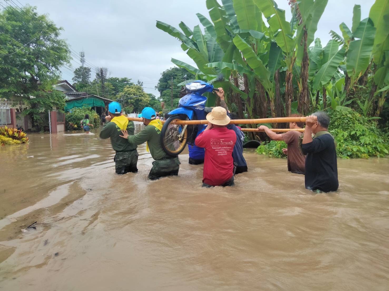 ในเบื้องต้นได้นำสิ่งของข้าวสารอาหารแห้งน้ำดื่ม และส่งเจ้าหน้าที่ อาสาสมัครรักษาชายแดน องค์การบริหารส่วนตำบล และเทศบาล ตลอดจนทางทหาร กองบังคับควบคุมที่ 2 หน่วยเฉพาะกิจกรมทหารม้ากองกำลังผาเมือง ส่งทหารเข้าช่วยขนย้ายสิ่งของให้กับประชาชนแล้ว ในเวลานี้น้ำได้ลดลงแล้ว แต่ถ้าฝนตกลงมาเพิ่มก็จะทำให้น้ำท่วมอีกเพราะน้ำปลายน้ำยังมีน้ำมากยังไม่ระบายทั้งหมด ได้ประกาศให้ประชาชนเก็บของที่เสียหายขึ้นที่สูงแล้ว ทางนายอำเภอและส่วนราชการได้ออกตรวจเยี่ยมทุกพื้นที่แล้ว