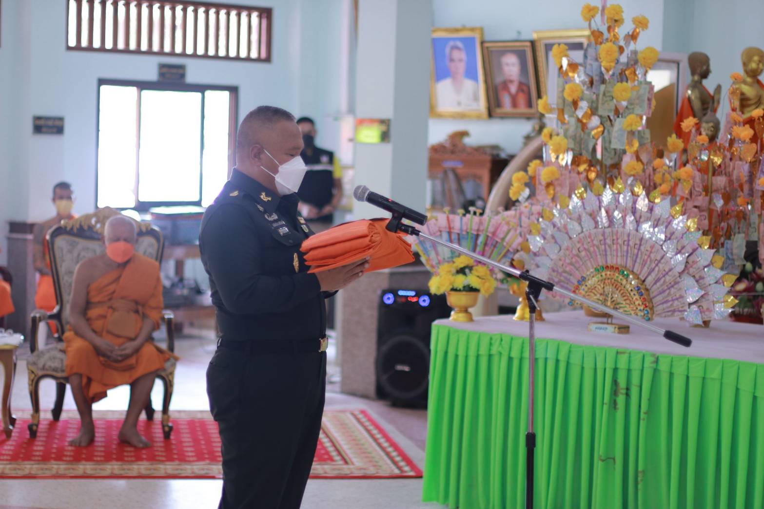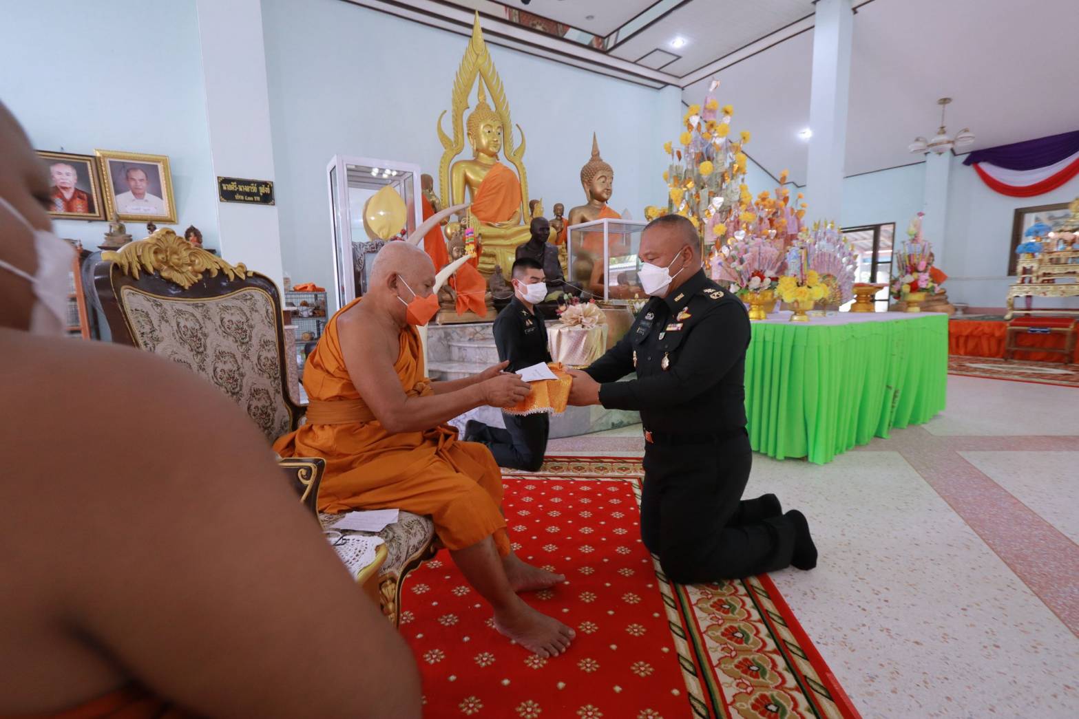 วันนี้ 22 พฤษภาคม 2565 ที่วัดควนตุ้งกู ตำบลบางสัก อำเภอกันตัง จังหวัดตรัง พลโท เกรียงไกร ศรีรักษ์ แม่ทัพภาคที่ 4/ผู้อำนวยการรักษาความมั่นคงภายในภาค 4 เป็นประธานทอดผ้าป่าสามัคคี สมทบทุนในการบูรณะปฏิสังขรณ์พระอุโบสถวัดควนตุ้งกู ทั้งนี้เพื่อเป็นการทำนุบำรุงศาสนสถาน สืบทอดประเพณีอันดีงามทางพระพุทธศาสนา ส่งเสริมความรักความสามัคคี ตลอดจนเป็นขวัญ และกำลังใจให้พุทธศาสนิกชนในพื้นที่ และใกล้เคียง โดยมี พระครูถาวรศีลวัฒน์ ที่ปรึกษาเจ้าคณะอำเภอกันตัง เจ้าอาวาสวัดตรังคภูมิพุทธาวาส เป็นประธานฝ่ายสงฆ์, พลโท ธิรา แดหวา แม่ทัพน้อยที่ 4/รองผู้อำนวยการรักษาความมั่นคงภายในภาค 4 ส่วนหน้า ส่วนราชการ ทหาร ตำรวจ ภาครัฐ เอกชน และพุทธศาสนิกชนในพื้นที่เข้าร่วมพิธีถวายปัจจัยเป็นจำนวนมาก ภายใต้มาตรการป้องกันการแพร่ระบาดของเชื้อไวรัส covid-19 อย่างเคร่งครัด