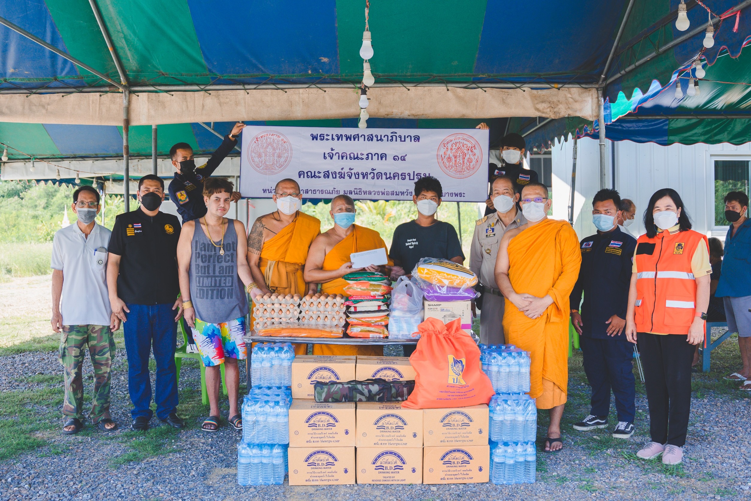 วันที่23พฤษภาคม2565พระเทพศาสนาภิบาล เจ้าคณะภาค 14 เจ้าอาวาสวัดไร่ขิง พระอารามหลวง ประธานอำนวยการศูนย์ช่วยเหลือผู้ประสบภัยพิบัติคณะสงฆ์จังหวัดนครปฐม, หลวงพ่อพระเทพมหาเจติยาจารย์ เจ้าคณะจังหวัดนครปฐม/รองประธานอำนวยการฯ หลวงพ่อพระพิพัฒน์ศึกษากร รองเจ้าคณะจังหวัดนครปฐม/รองประธานอำนวยการฯ, พระครูปุญญาภิสันท์ เจ้าคณะอำเภอบางเลน/หัวหน้างานสาธารณสงเคราะห์, พระครูปลัดสิทธิวัฒน์ เจ้าอาวาสวัดไผ่ล้อม/รองหัวหน้างานสาธารณสงเคราะห์ และพระครูศรีสุตากร ประธานหน่วยฯ/ผู้ประสานงานดำเนินการฯ