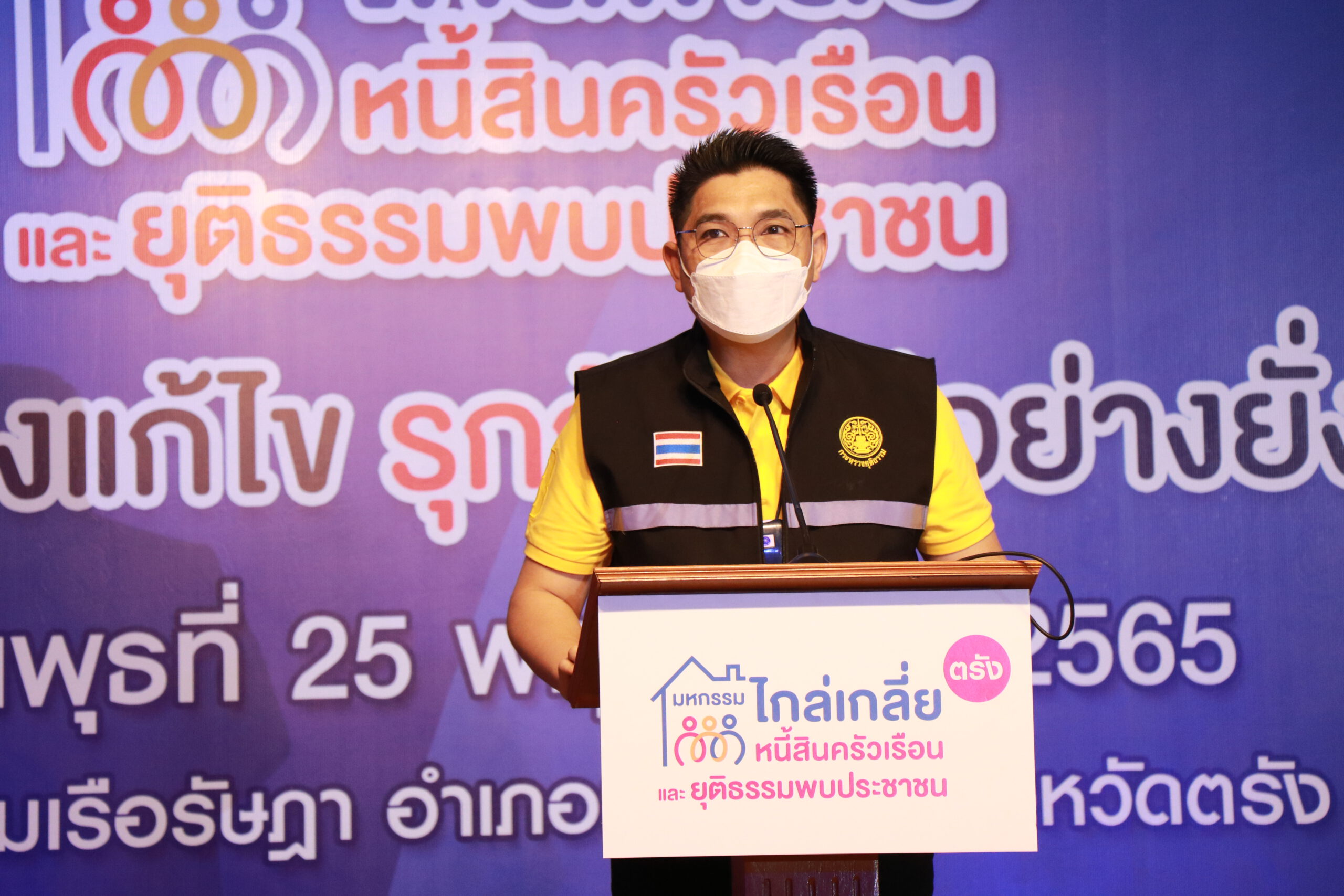 เลขานุการรัฐมนตรีว่าการกระทรวงยุติธรรมเป็นประธานเปิดงานมหกรรมไกล่เกลี่ยหนี้สินครัวเรือน จังหวัดตรัง และยุติธรรมพบประชาชน