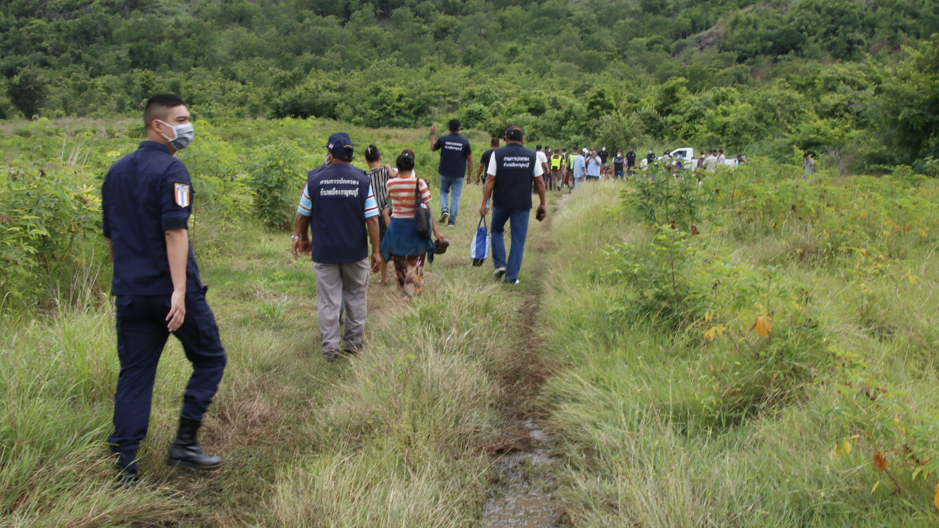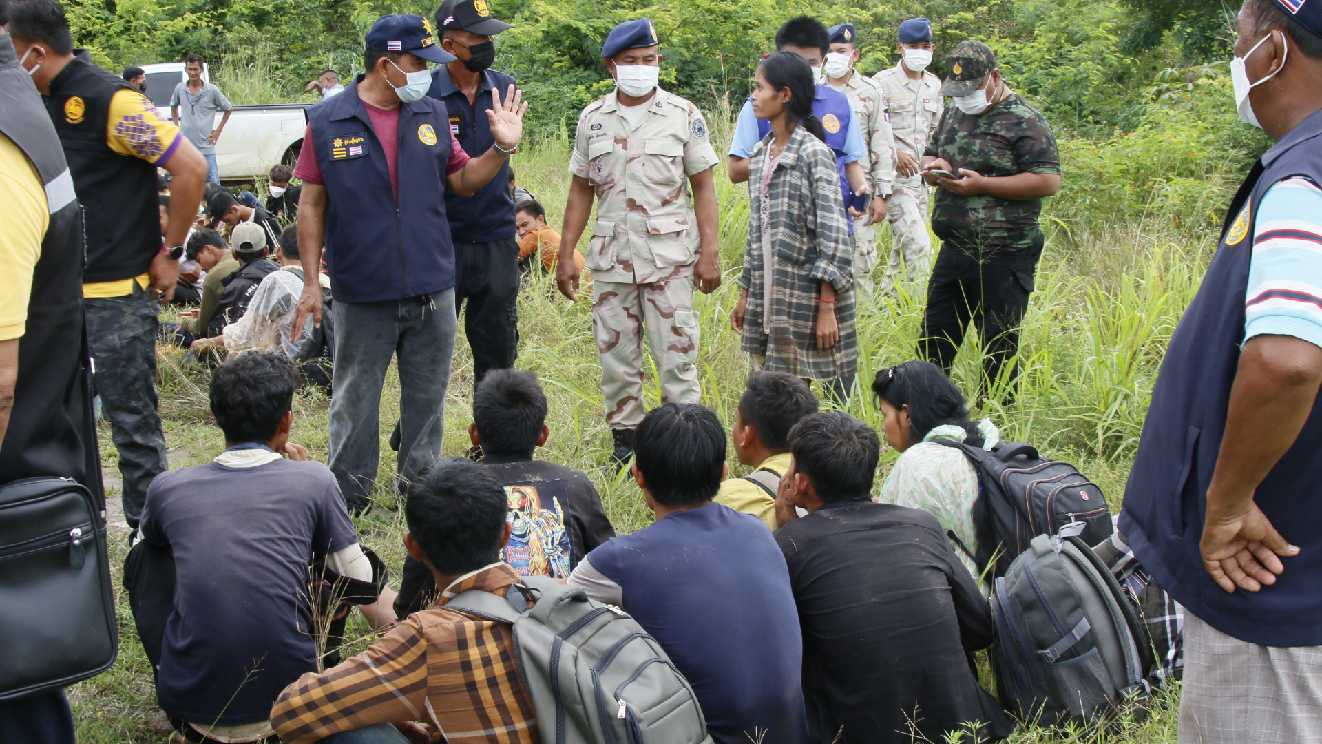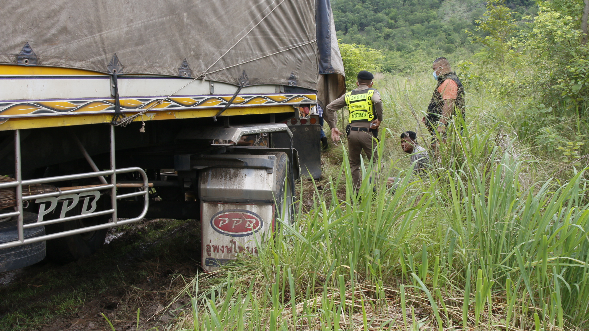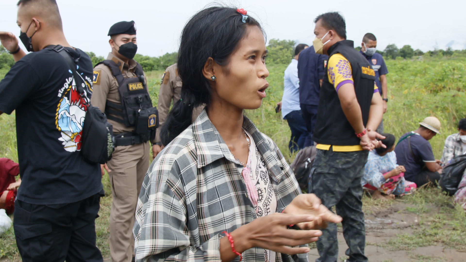ขณะที่เจ้าหน้าที่ตำรวจทางหลวง 2 นาย กำลังนำตัวคนขับรถมาสอบ เพื่อรอกำลังมาเสริม บรรดาแรงงานได้ลงจากรถพ่วงหลบหนีไปแอบซ่อนตัวอยู่ในป่าไร่มันสัมปะหลัง เจ้าหน้าที่ ที่ได้เดินทางไปสมทบต้องกระจายกำลังออกค้นหาอยู่นาน เมื่อเจอแรงงานเหล่านั้นเตรียมวิ่งหนี เจ้าหน้าที่ต้องใช้อาวุธปืนยิงขึ้นฟ้าข่มขู่ ก่อนแรงงานทั้งหมดเดินออกมาจากไร่มันสัมปะหลัง มีทั้งหญิง – ชาย และเด็กเล็กบางรายอายุแค่เพียง 5 เดือน รวมอยู่ในกลุ่มแรงงานนี้ด้วย