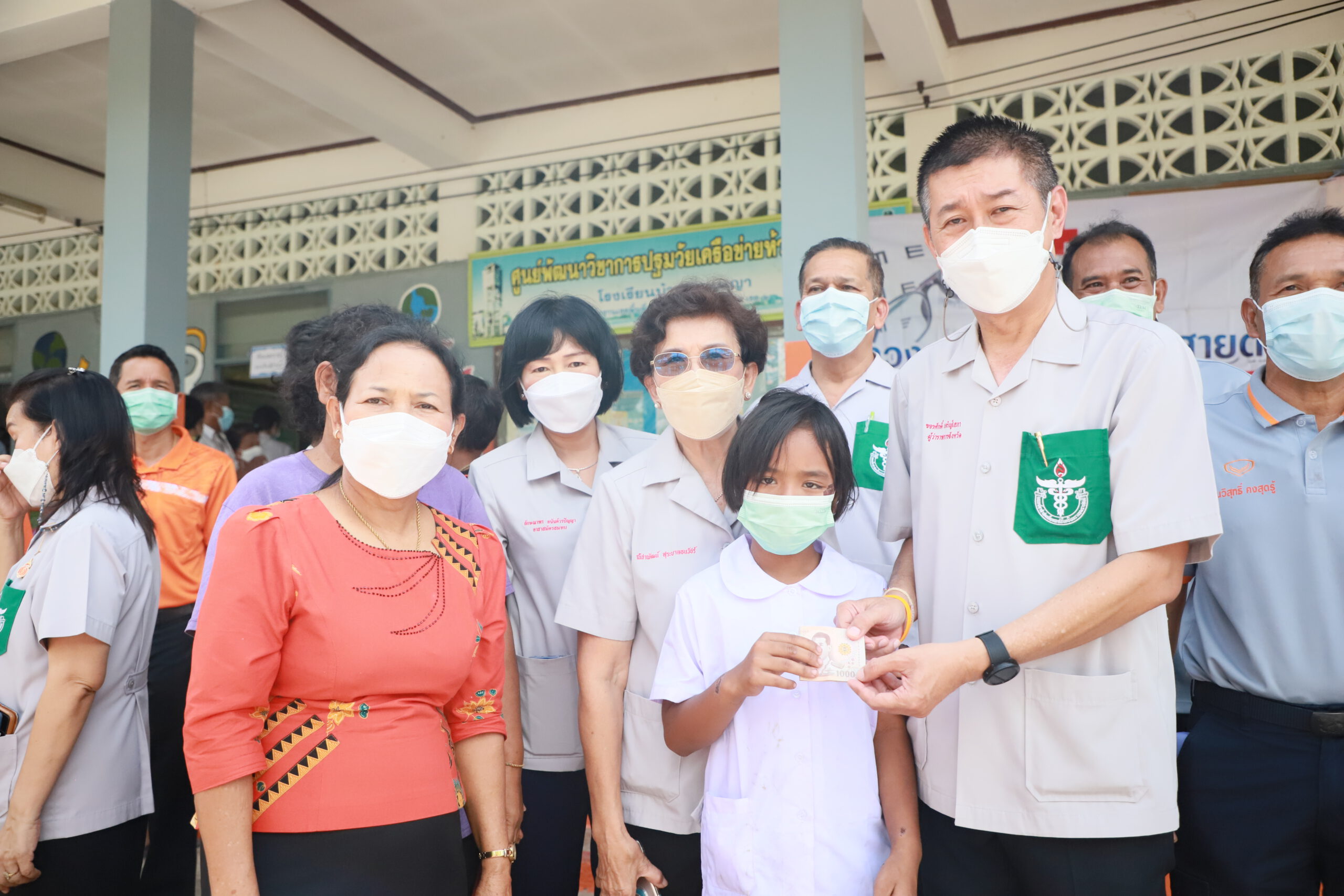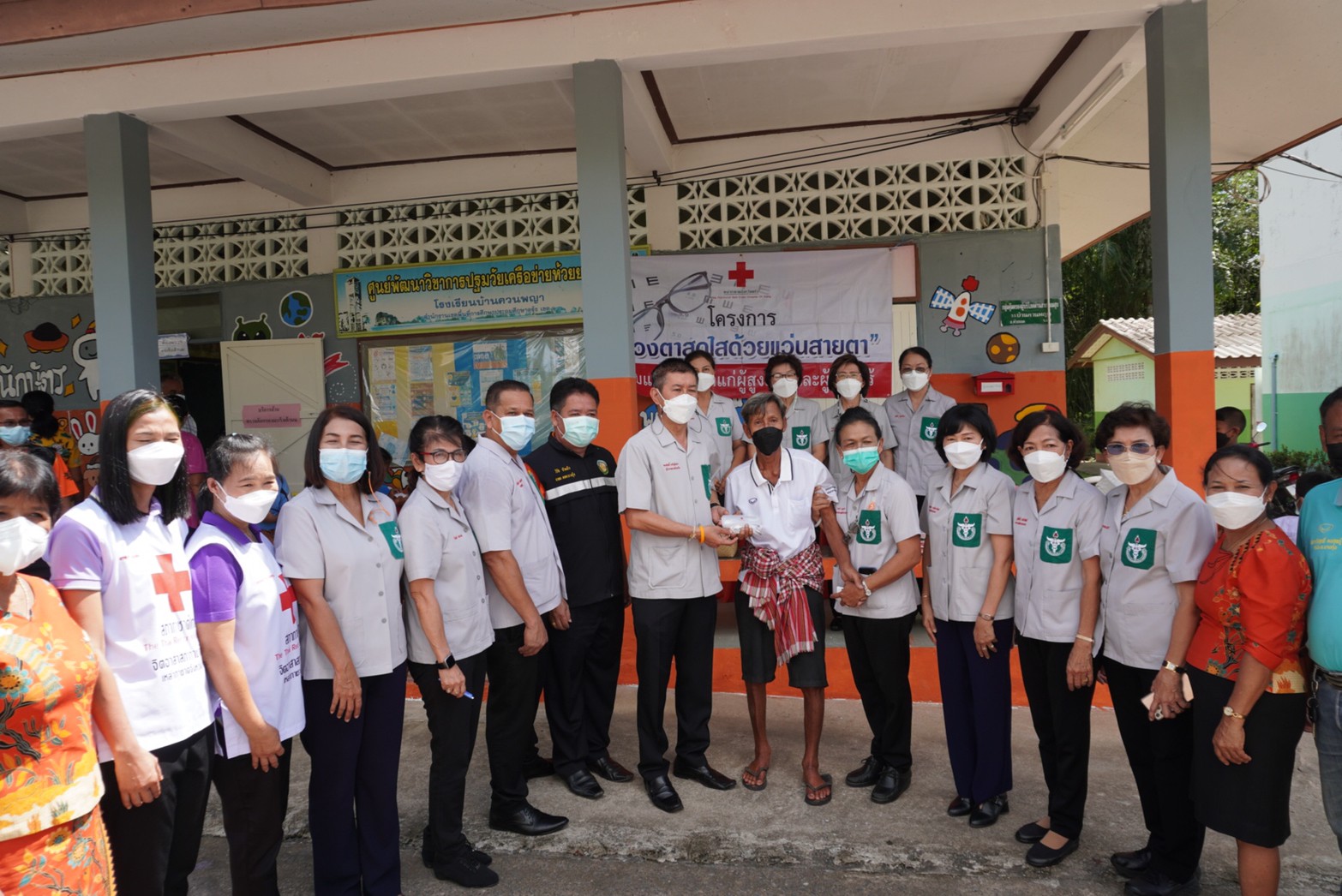 นอกจากนี้ทางสำนักงานเหล่ากาชาดจังหวัดตรังได้มอบแว่นตาและผู้สูงอายุและนำกระป๋องออมสิน/ขนม/ของเล่นมอบให้แก่เด็กนักเรียน โดยมีผู้มาใช้บริการจำนวน 210 คน