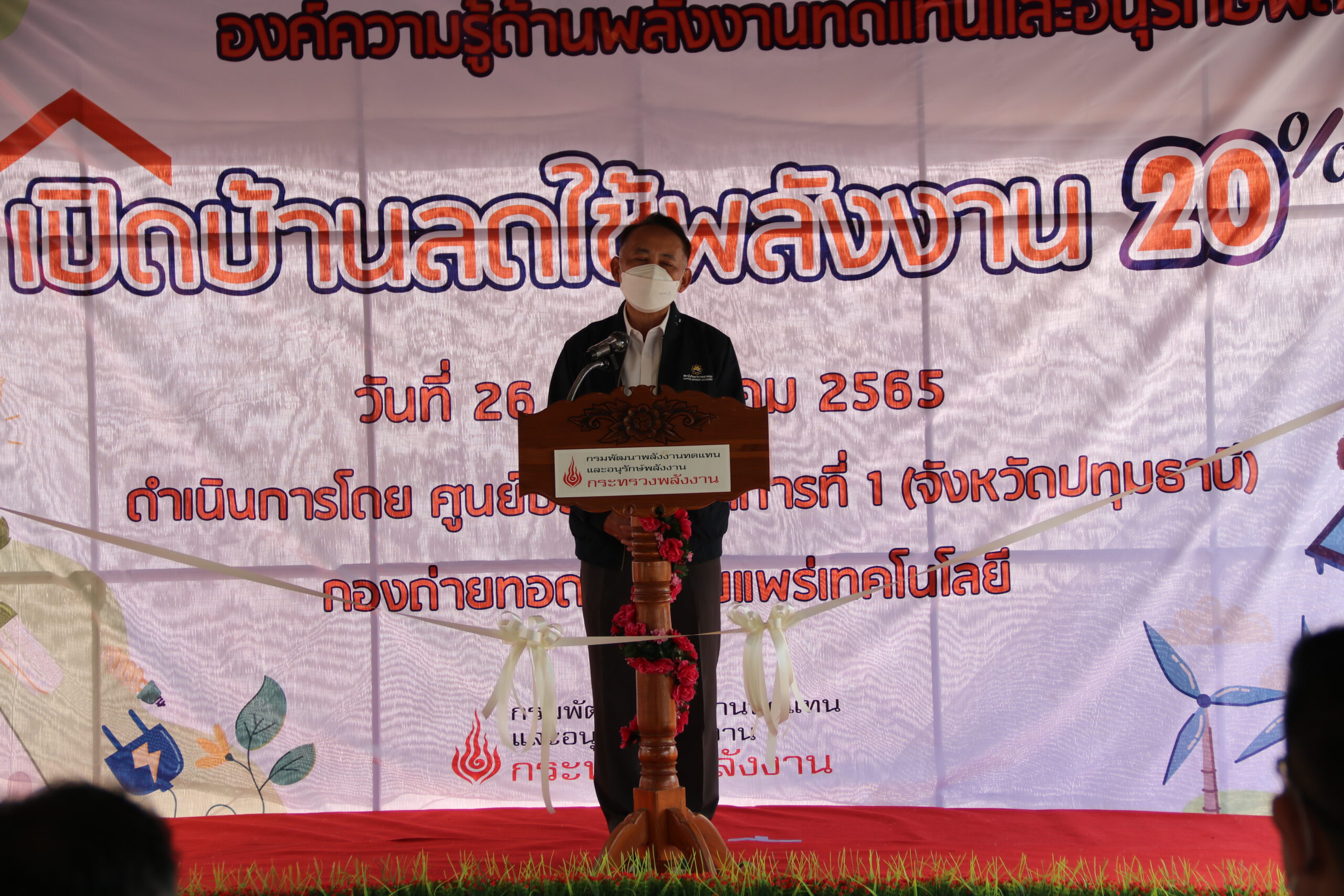 เมื่อเวลา 09.00 น. วันที่ 26 พฤษภาคม 2565 ที่สำนักงานพลังงานจังหวัดปทุมธานี กระทรวงพลังงาน ซ.คชสาร(จารุศร) ต.คลองหนึ่ง อ.คลองหลวง จ.ปทุมธานี ดร.ประเสริฐ สินสุขประเสริฐ อธิบดีกรมพัฒนาพลังงานทดแทนและอนุรักษ์พลังงาน (พพ.) กระทรวงพลังงาน เดินทางมาเป็นประธานในกิจกรรมเปิดบ้านพลังงาน ประจำปี พ.ศ.2565 และกิจกรรม “รวมพลังคนไทย ลดใช้พลังงาน หาร 2” โดยมีนายคมสันต์ พู่ทอง หัวหน้าศูนย์บริการวิชาการที่ 1 จังหวัดปทุมธานี พลังงานจังหวัดในเขตพื้นที่ภาคกลาง จังหวัดปทุมธานี, นนทบุรี, ชลบุรี, พระนครศรีอยุธยา, สมุทรปราการ, สระบุรี และอ่างทอง หัวหน้าส่วนราชการ สถานศึกษา เครือข่ายทางด้านพลังงานทั้งภาครัฐรัฐ เอกชน ผู้อำนวยการกองส่งเสริมการอนุรักษ์พลังงาน ผู้อำนวยการกองพัฒนาทรัพยากรบุคคลด้านพลังงาน หัวหน้าศูนย์บริการวิชาการที่ 1, 2 และ 8 หัวหน้าส่วนราชการ และ คณะครูนักเรียนโรงเรียนธรรมศาสตร์คลองหลวงวิทยาคม เข้าร่วมงาน