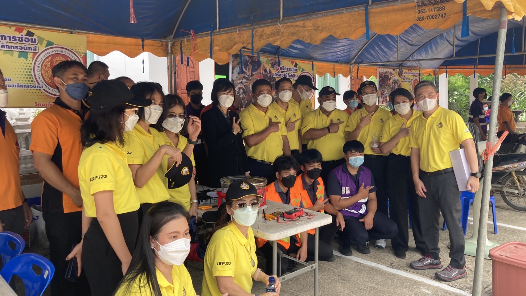จากนั้นพลตรี ชำนาญ ช้างสาต ผู้อำนวยการสถาบันจิตวิทยาความมั่นคง สถาบันวิชาการป้องกันประเทศ ได้ ทำการมอบอุปกรณ์การเรียนการสอนให้กับโรงเรียนชาวไทยภูเขาหน่วยพัฒนาการเคลื่อนที่ 32 สมาททีวี 55 นิ้ว จำนวน2 เครื่อง เก้าอี้ พร้อมโต๊ะนักเรียน 80 ชุด และชุดวอร์ม นักเรียน 124 ชุด โต๊ะปิงปอง 1 ตัว อุปกรณ์กีฬาอีกจำนวนหนึ่ง และมอบทุนให้วิทยาลัยอาชีพฝางที่มาช่วยจัดนักศึกษามารับซ่อมเครื่องใช้ไฟฟ้า รถจักรยานยนต์ และเครื่องยนต์และเครื่องมือใช้งานเกษตรกรรม ให้กับประชาชนในพื้นที่บ้านหลวง หมู่ที่ 6 ตำบลโหล่งขอด แล้วได้เดินทางไปร่วมทหาร นพค 32 ทำการสร้างฝายชะลอน้ำที่ห้วยแล้ง บ้านหลวง หมู่ที่ 6 ตำบลโหล่งขอด ซึ่งทางทหาร ชาวบ้านฝ่ายปกครอง อบต ได้สร้างมาทุกปี หลายสิบฝาย เพื่อเก็บน้ำสร้างความชื้นให้ป่าทำให้ต้นไม้ต้นเล็กๆสามารถเติบโตได้เพิ่มจำนวนต้นไม้จำนวนมากในแต่ละปี ซึ่งในป่านี้มีความหนาแน่นของต้นไม้มากขึ้นทุกปีและยังป้องกันไฟป่าได้อย่างดี โดยให้นักศึกษาตักดินหินในพื้นนที่นำมาทับในตะแกรงเหล็กเพื่อเก็บน้ำและป้องกันการพังทะลายของตัวฝาย ในการมาศึกษาดูงานของจริงพื้นที่จริงๆเพื่อร่วมอนุรักษ์สิ่งแวดล้อมทางธรรมชาติ เพื่อสนับสนุนการเรียนการสอนในโรงเรียนที่ขาดแคลน ส่งเสริมค่านิยมจิตอาสาสร้างจิตสำนึกที่ดีมีจิตสาธารณะรู้คุณค่าของการแบ่งปันและช่วยเหลือผู้อื่น เพื่อเกิดความรักสามัคคี ประสานการปฏิบัติงานในลักษณะเครือข่ายมีส่วนร่วมแก้ปัญหาและพัฒนาชุมชนระดับพื้นที่
