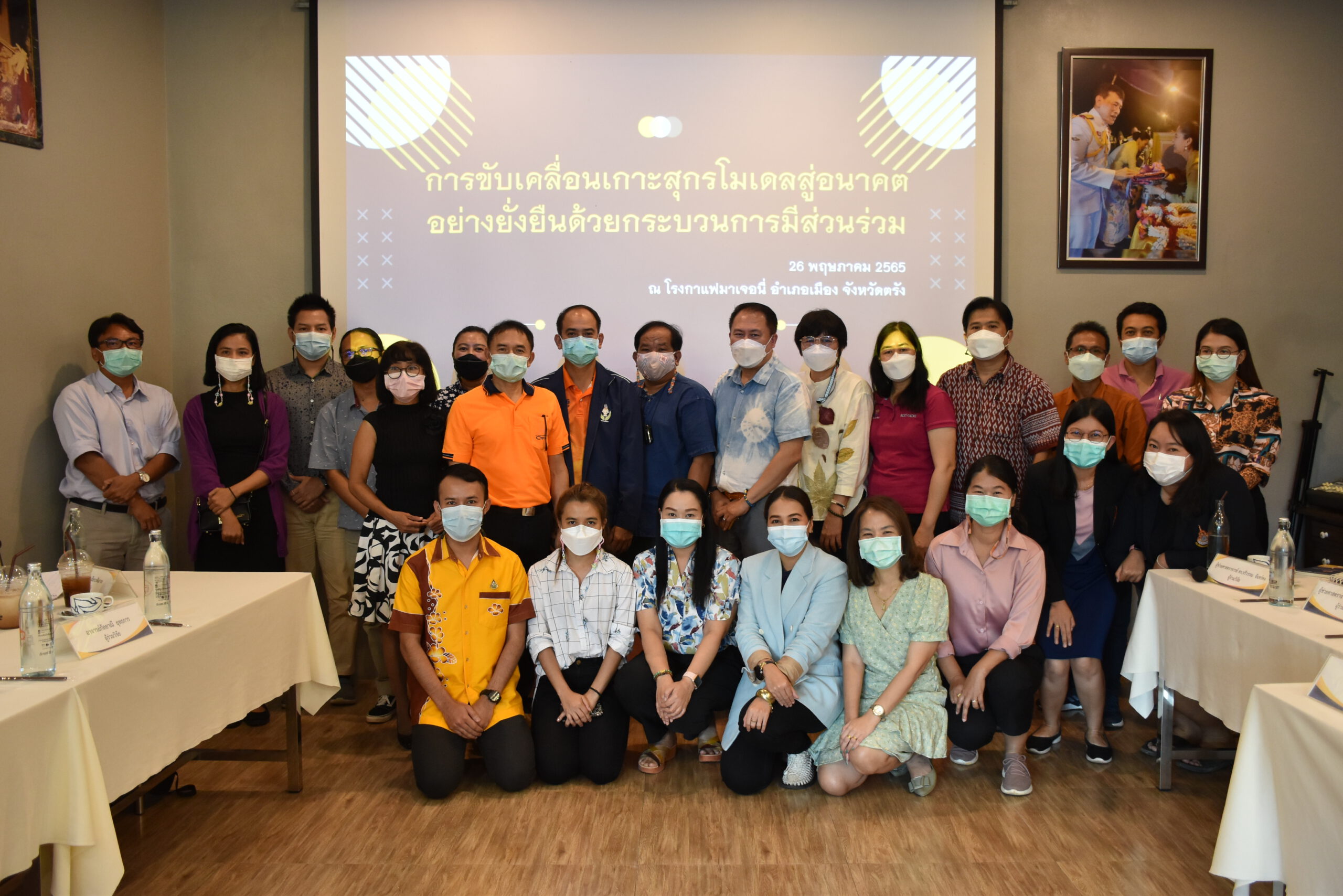 จากนั้น ผศ.อภิรักษ์ สงรักษ์ รองอธิการบดีมหาวิทยาลัย พร้อมผู้ทรงคุณวุฒิ และนักวิจัยของมหาวิทยาลัยได้ร่วมกันวิเคราะห์ข้อมูลความคิดเห็นจากการที่ได้ลงพื้นที่นำเสนอแนวทางการพัฒนาเพื่อขับเคลื่อนโครงการ “เกาะสุกรโมเดลเพื่อการพัฒนาที่ยั่งยืน” ให้สอดคล้องกับการพัฒนาควบคู่กับนโยบายของจังหวัดตรัง โดยได้เน้นการพัฒนานวัตกรรมที่ตอบสนองต่อความต้องการของท้องถิ่น ซึ่งจะต้องไม่ส่งผลกระทบต่อสิ่งแวดล้อมเป็นสำคัญ ตอบสนอง แผนงานพัฒนาเมืองอัจฉริยะจังหวัดตรัง หรือTrang Smart City โดยสถาบันวิจัยและพัฒนามหาวิทยาลัย สนับสนุนพันธ กิจมหาวิทยาลัย ในการสร้างงานวิจัยนวัตกรรมที่ตอบสนองต่อความต้องการของท้องถิ่นและพื้นที่ สร้าง “เกาะสุกรโมเดลเพื่อการพัฒนาที่ยั่งยืน” หวังเป็นต้นแบบของจังหวัดตรังในการพัฒนาพื้นที่ควบคู่กับการพัฒนากำลังคนสร้างการรับรู้นำไปสู่การพัฒนาการท่องเที่ยวทีมีคุณภาพ สร้างความเข้มแข็งและรายได้ให้กับชุมชนเกาะสุกร