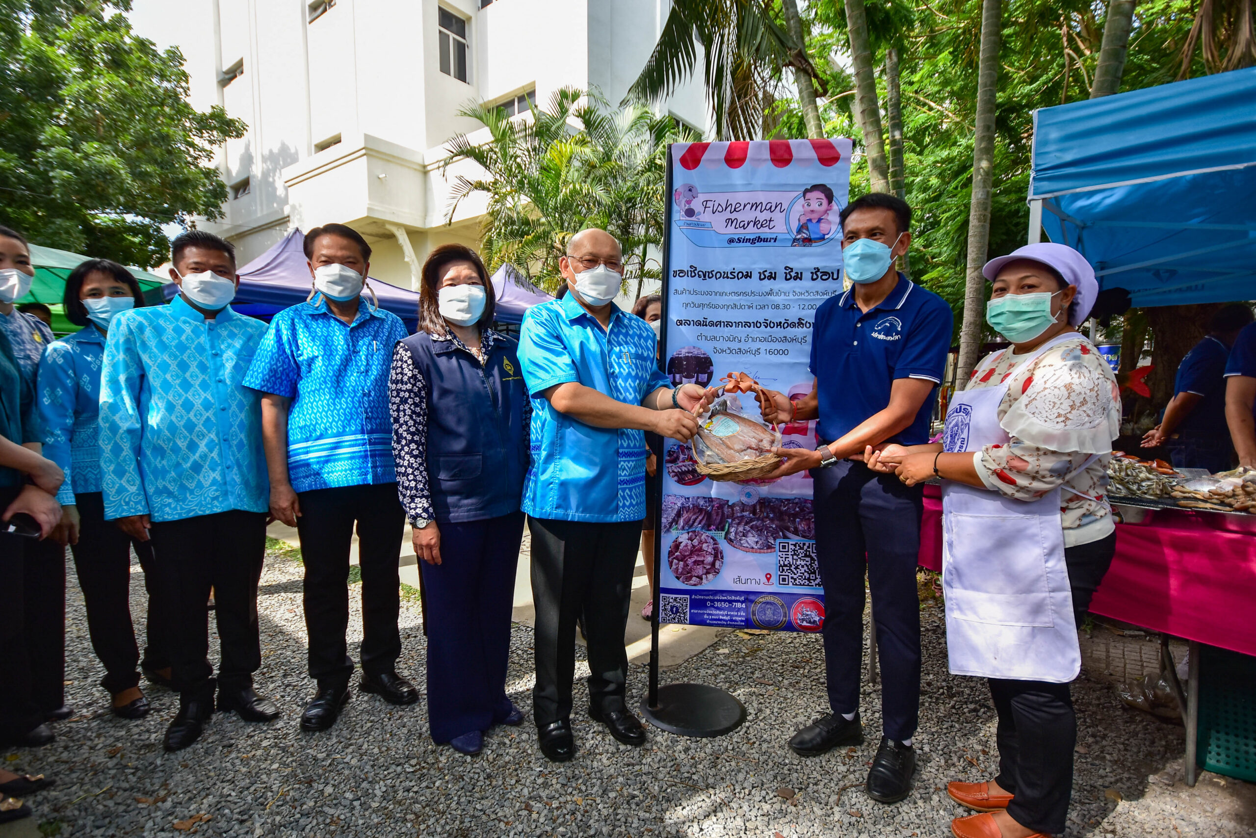 วันศุกร์ที่ 27 พฤษภาคม พ.ศ.2565 นายชัยชาญ สิทธิวิรัชธรรม ผู้ว่าราชการจังหวัดสิงห์บุรี เซ็นชื่อป้ายเปิดร้าน Fisherman Market โครงการกระจายสินค้าประมงพื้นบ้านสู่ผู้บริโภค ณ ตลาดนัดข้างศาลากลางจังหวัดสิงห์บุรี โดยนายอำพร ศักดิ์เศรษฐ ประมงจังหวัดสิงห์บุรี ร่วมกับกลุ่มเกษตรกร กลุ่มวิสาหกิจชุมชนแปรรูปผลิตภัณฑ์สัตว์น้ำในพื้นที่เปลี่ยนให้เป็นร้าน Fisherman Market@ Singburi เพื่อเพิ่มช่องการจำหน่ายสินค้าแปรรูปผลิตภัณฑ์สัตว์น้ำและเพิ่มรายได้ให้เกษตรกร ตามนโยบายเร่งด่วนของกรมประมงในการเพิ่มช่องทางการจำหน่ายสินค้าผลิตภัณฑ์จาการทำประมงพื้นบ้านของกลุ่มชาวประมงพื้นบ้านจังหวัดสิงห์บุรี ในช่วงสถานการณ์การแพร่ระบาดของเชื้อไวรัสโควิด-19