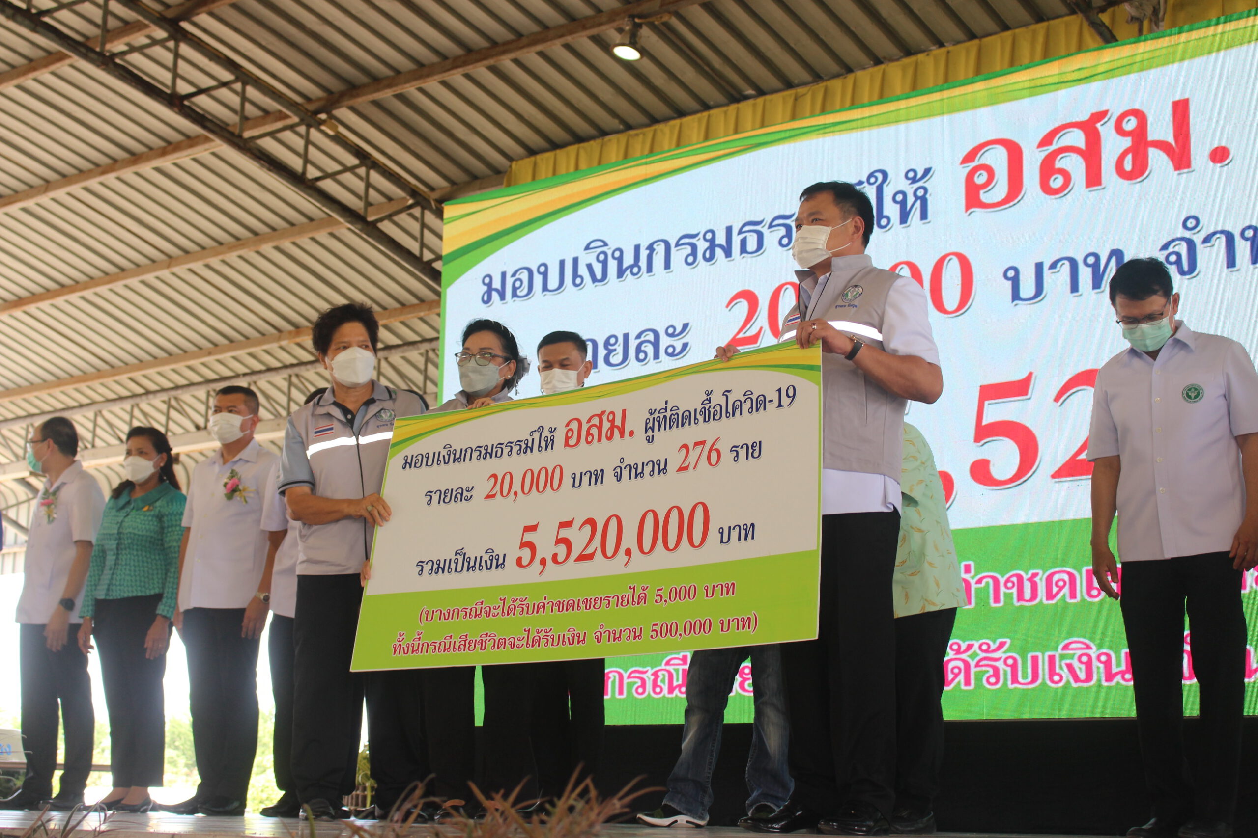 จากการปฏิบัติหน้าที่ รายละ 20,000 บาท จำนวน 276 รายรวมเป็นเงิน 5,520,000 บาท (ห้าล้านห้าแสนสองหมื่นบาทถ้วน) โดยมุ่งหวังว่าอาสาสมัครสาธารณสุขประจำหมู่บ้าน ที่เป็นกำลังหลักสำคัญจะสามารถพัฒนาด้านสุขภาพและคุณภาพชีวิตของประชาชนในเขตรับผิดชอบ การป้องกันโรค และการรักษาพยาบาลเบื้องต้น ตลอดจนเป็นผู้นำการสร้างสุขภาพให้แก่ชาวบ้านในชุมชน เพื่อให้ชุมชนสามารถจัดระบบสุขภาพชุมชนได้อย่างเหมาะสมด้วยตัวชุมชนเองได้อย่างยั่งยืน