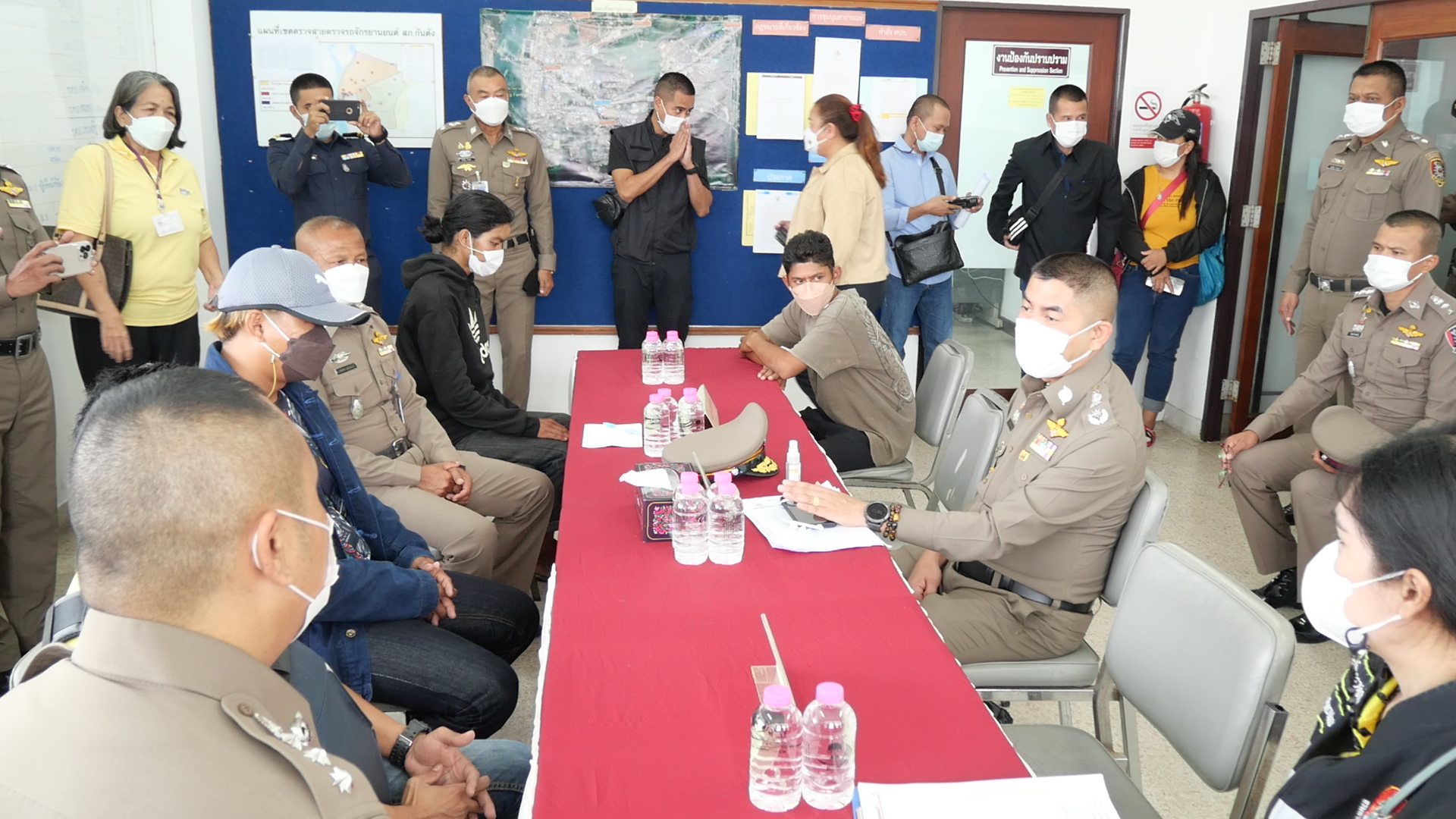 จากข้อมูลดังกล่าว คณะทำงานเพิ่มประสิทธิภาพฯ จึงรวบรวมพยานหลักฐาน ร้องทุกข์กล่าวโทษผู้ร่วมกระทำผิดต่อพนักงานสอบสวน สภ.กันตัง ก.จว.ตรัง ดำเนินคดีกับผู้ต้องหาจำนวน 3 ราย ประกอบด้วย 1. นายศุภกร ลายแจ้ง อายุ 59 ปี ทำหน้าที่ผู้ควบคุมการทำงานบนเรือ (ไต๋เรือ). นาย กฤษณะ คงโอ อายุ 43 ปี ทำหน้าที่ผู้ควบคุมการทำงานบนเรือ (ได้เรือ) ช่วงตั้งแต่ต้นเดือนมิถุนายน 25643. นายเสถียร เงินอเนก อายุ 61 ปี เจ้าของเรือ นักงานตำรวจแห่งชาติ ขอความร่วมมือพี่น้องสื่อมวลชน ประชาสัมพันธ์ให้ประชาชน ได้ทราบถึงการดำเนินการและการกระทำผิดที่เกี่ยวข้องกับการทำประมงผิดกฎหมาย หากประซาชนพบเห็นการกระทำผิดในลักษณะดังกล่าว สามารถแจ้งข้อมูลมายัง ศูนย์พิทักษ์เด็ก สตรี ครอบครัว ป้องกันปราบปรามการค้ามนุษย์ และภาคประมง สำนักงานตำรวจแห่งชาติ (ศพดส.ตร.) โดยตรง ช่องทางสายด่วน 1599 นอกจากนี้ยังได้มีการประชุมเจ้าหน้าที่ที่เกี่ยวข้อง ไม่ว่าจะเป็นแรงงานจังหวัดตรัง เจ้าหน้าที่ตำรวจ เจ้าหน้าที่ศูนย์PIPO เพื่อปรับการทำงานให้ดีขึ้น