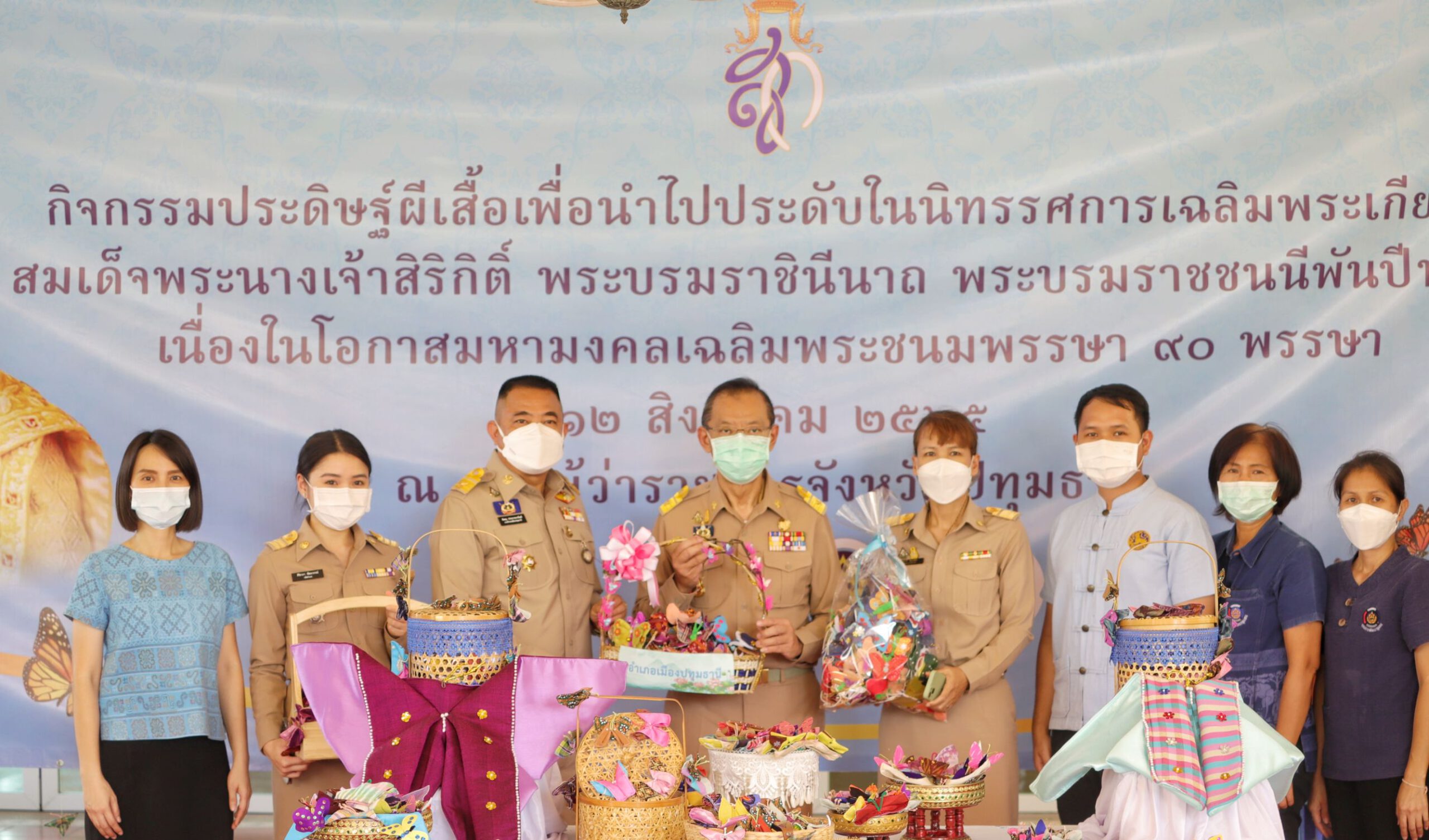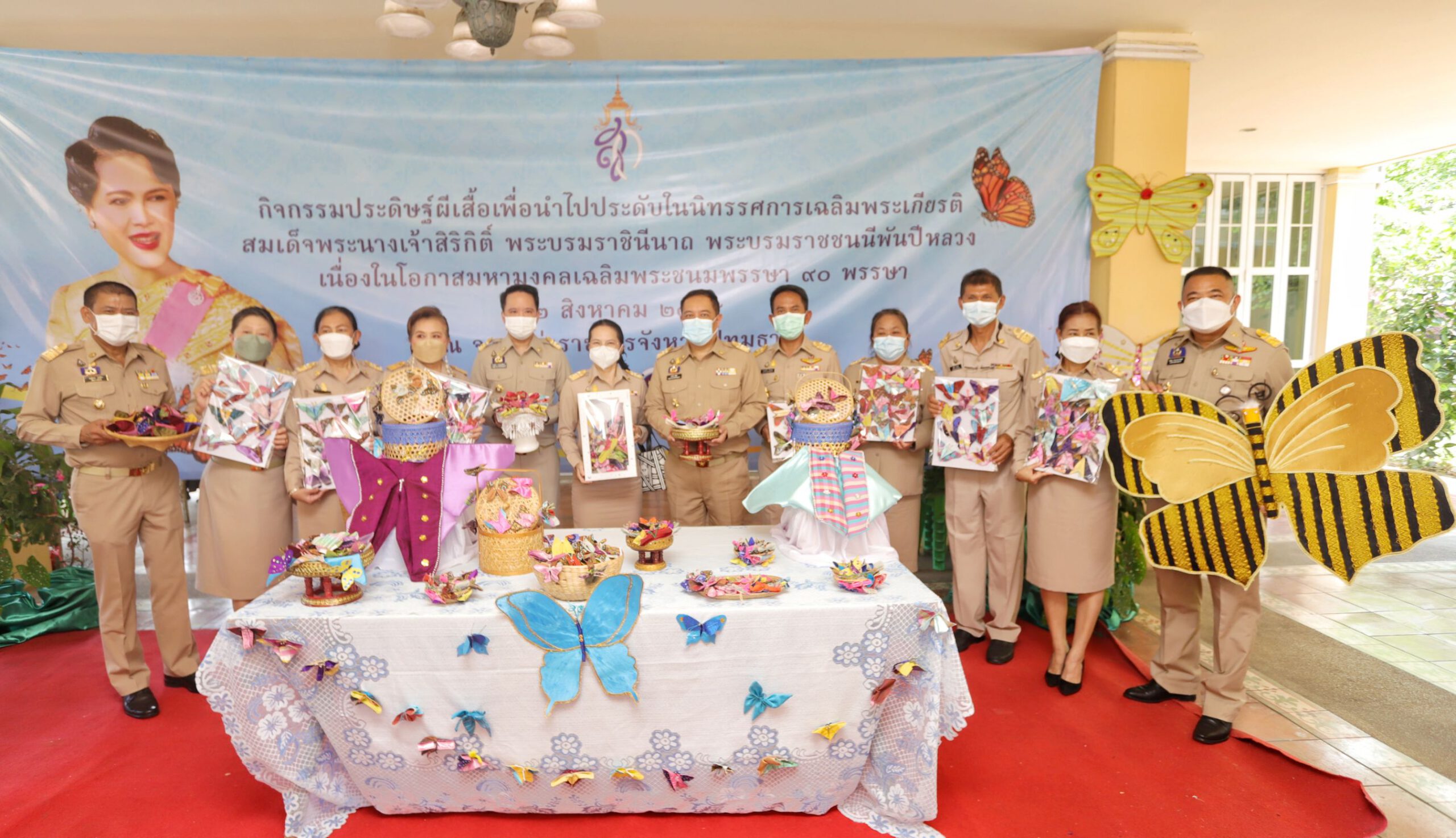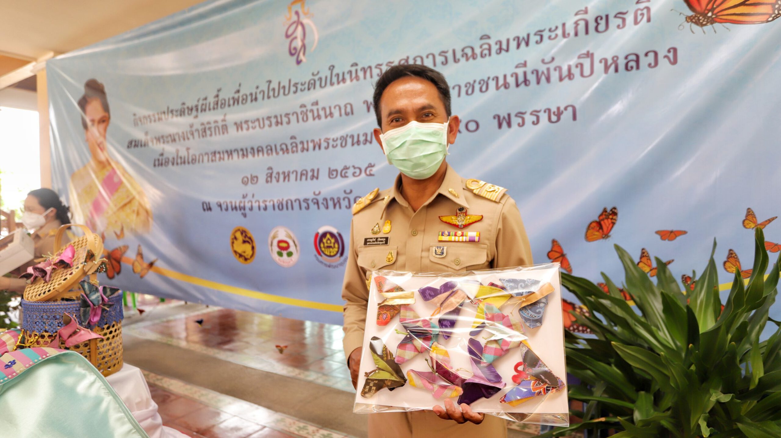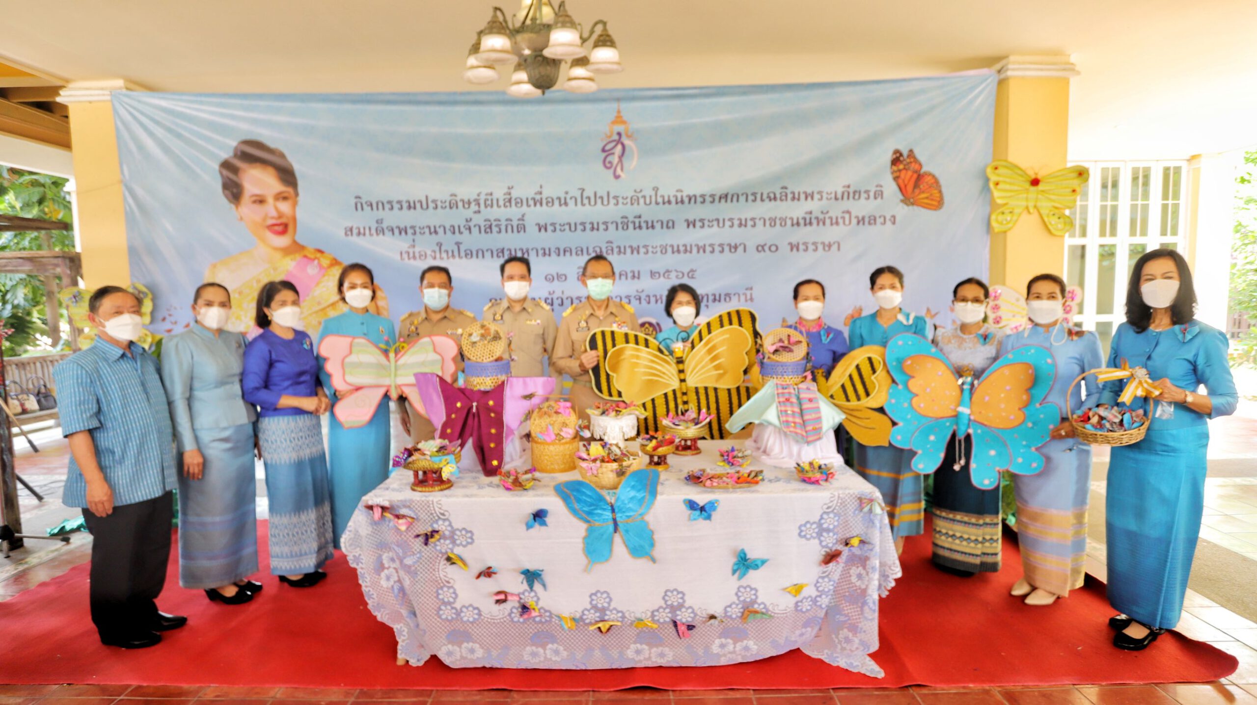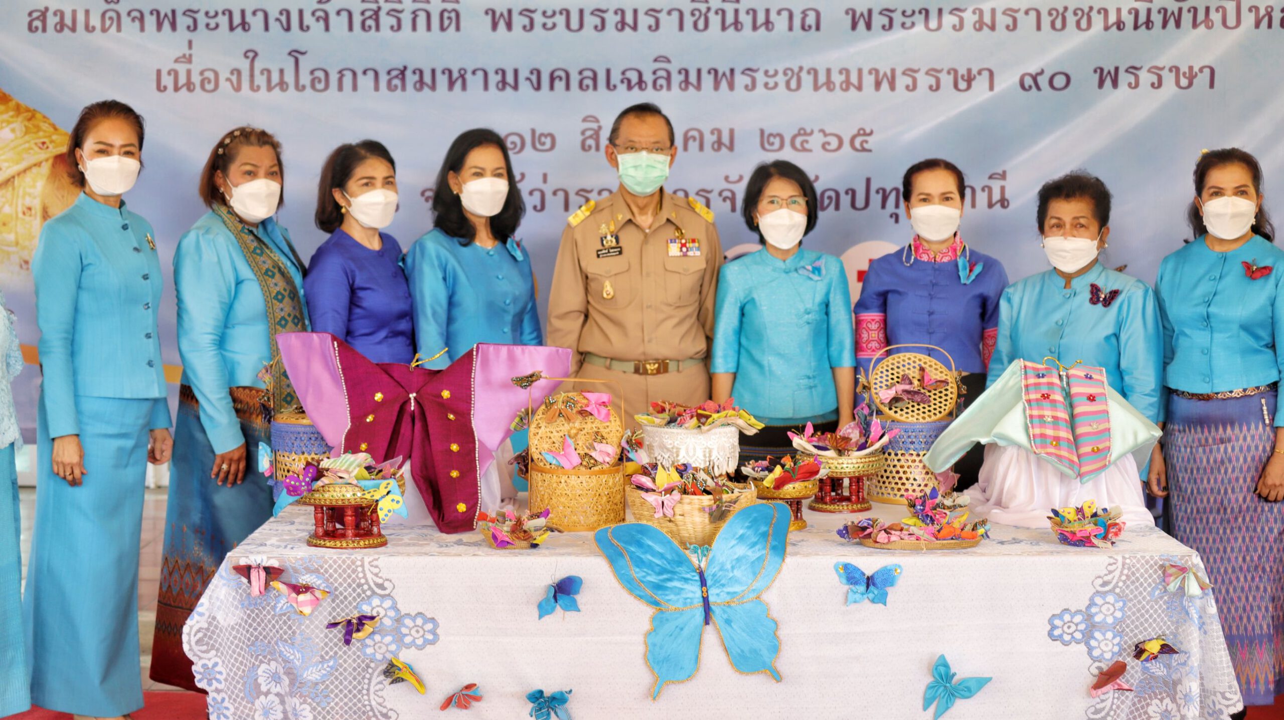 นายณรงค์ศักดิ์ โอสถธนากร ผู้ว่าราชการจังหวัดปทุมธานี เป็นประธานกิจกรรมโดยมี นายพงศธร กาญจนะจิตรา รองผู้ว่าราชการจังหวัดปทุมธานี นายเอกวิทย์ มีเพียร รองผู้ว่าราชการจังหวัดปทุมธานี พ.อ.วินัย อภัยกุลชร จิตอาสา 904 / รอง ผอ.กอ.รมน.ปท นางจินจณา โอสถธนากร นายกเหล่ากาชาดจังหวัดปทุมธานี นายดรณ์ สมิตะเกษตริน ปลัดจังหวัดปทุมธานี หัวหน้าส่วนราชการ นายอำเภอทั้ง 7 อำเภอ กลุ่มผู้นำสตรีจังหวัดปทุมธานี และหน่วยงานที่เกี่ยวข้องเข้าร่วมส่งมอบผีเสื้อจากลายอัตลักษณ์ผ้าไทย และผ้าพื้นถิ่นของจังหวัดปทุมธานี มาประดิษฐ์เป็นผีเสื้อหลากสีสัน หลายรูปแบบ หลายขนาด โดยมีขนาดและสีแตกต่างกัน เพื่อส่งมอบต่อให้กระทรวงมหาดไทย เพื่อนำไปประดับในนิทรรศการเฉลิมพระเกียรติสมเด็จพระนางเจ้าสิริกิติ์ พระบรมราชินีนาถ พระบรมราชชนนีพันปีหลวงในวโรกาสมหามงคลเฉลิมพระชนมพรรษา 90 พรรษา 12 สิงหาคม 2565