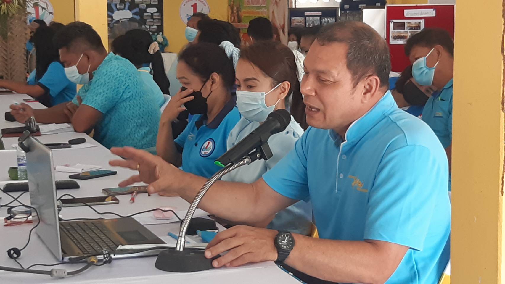 เมื่อเวลา 13.30 น.วันที่ 31 พ.ค.65 นายอาทร พิมชะนก ผู้ตรวจราชการการการพัฒนาชุมชน ประธานคณะกรรมการประกวดหมู่บ้านกองทุนแม่ของแผ่นดินบ้านมะเดื่อทอง หมู่ที่ 5 ตำบลเขาล้าน อำเภอทับสะแก จังหวัดประจวบคีรีขันธ์ นางสาววาสนา ไขว้พันธ์ ผู้อำนวยการศูนย์ศึกษาและพัฒนาชุมชนเขตเพชรบุรี นายนพรัตน์ ไวอัมภา ผู้อำนวยการส่วนประสานพื้นที่ ปปส.ภาค 7 โดยมี นายดำรงค์ มากระจันทร์ พัฒนาการจังหวัดหวัดประจวบฯ นายสำนวน ทองศรี นายอำเภอทับสะแก หัวหน้าส่วนราชการ นายวัชรินทร์ จันทร์เดช สถาบันพัฒนาองค์กรชุมชน หรือ พอช.จังหวัดประจวบฯ นายทวีศักดิ์ จุลเนียม ผู้ใหญ่บ้านมะเดื่อทอง กำนัน ผู้ใหญ่บ้าน ผอ.โรงเรียนบ้านมะเดื่อทอง ผอ.รพ.สต. ผู้บริหารสหกรณ์เครดิตยูเนี่ยน กรรมการหมู่บ้าน และ เด็กนักเรียนชมรมTO BE NUMBER ONE ให้การต้อนรับ