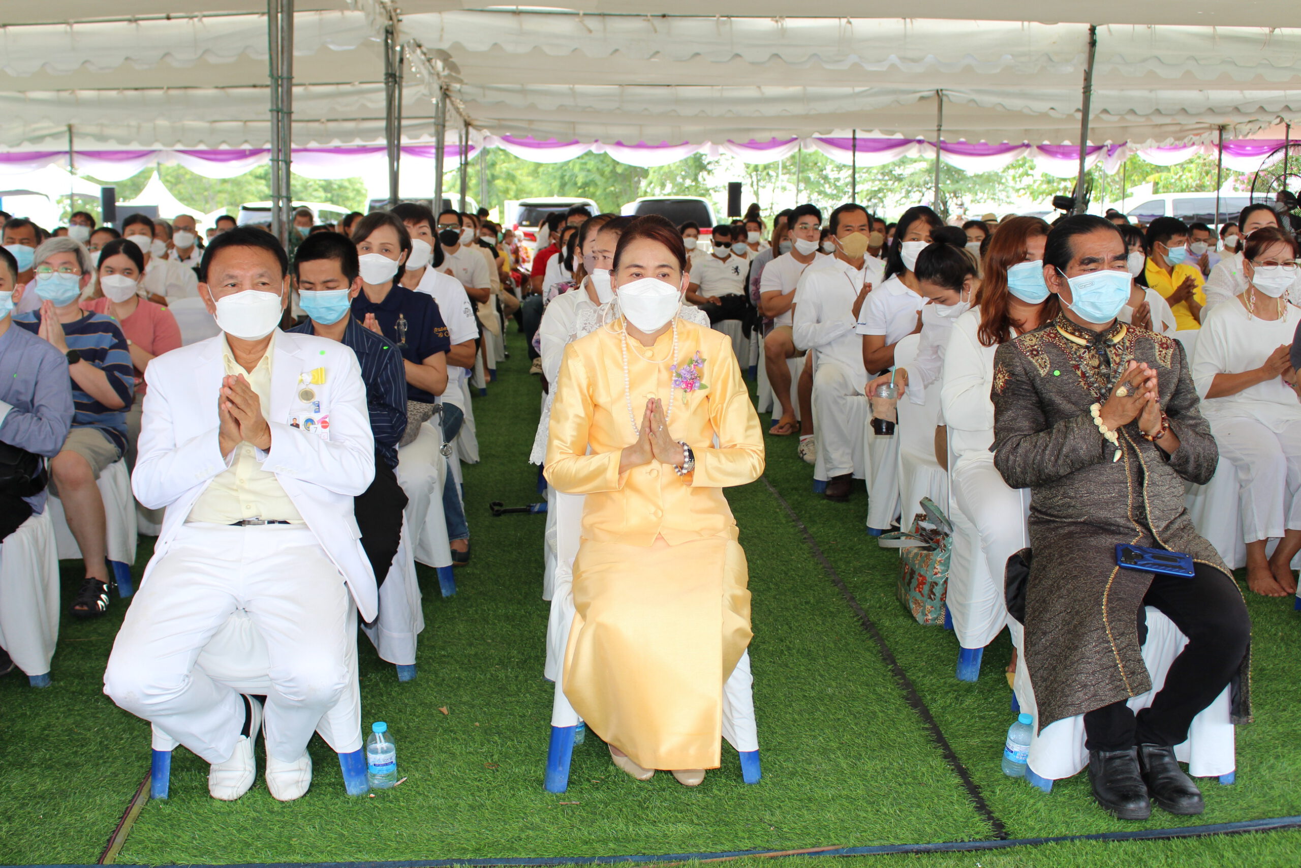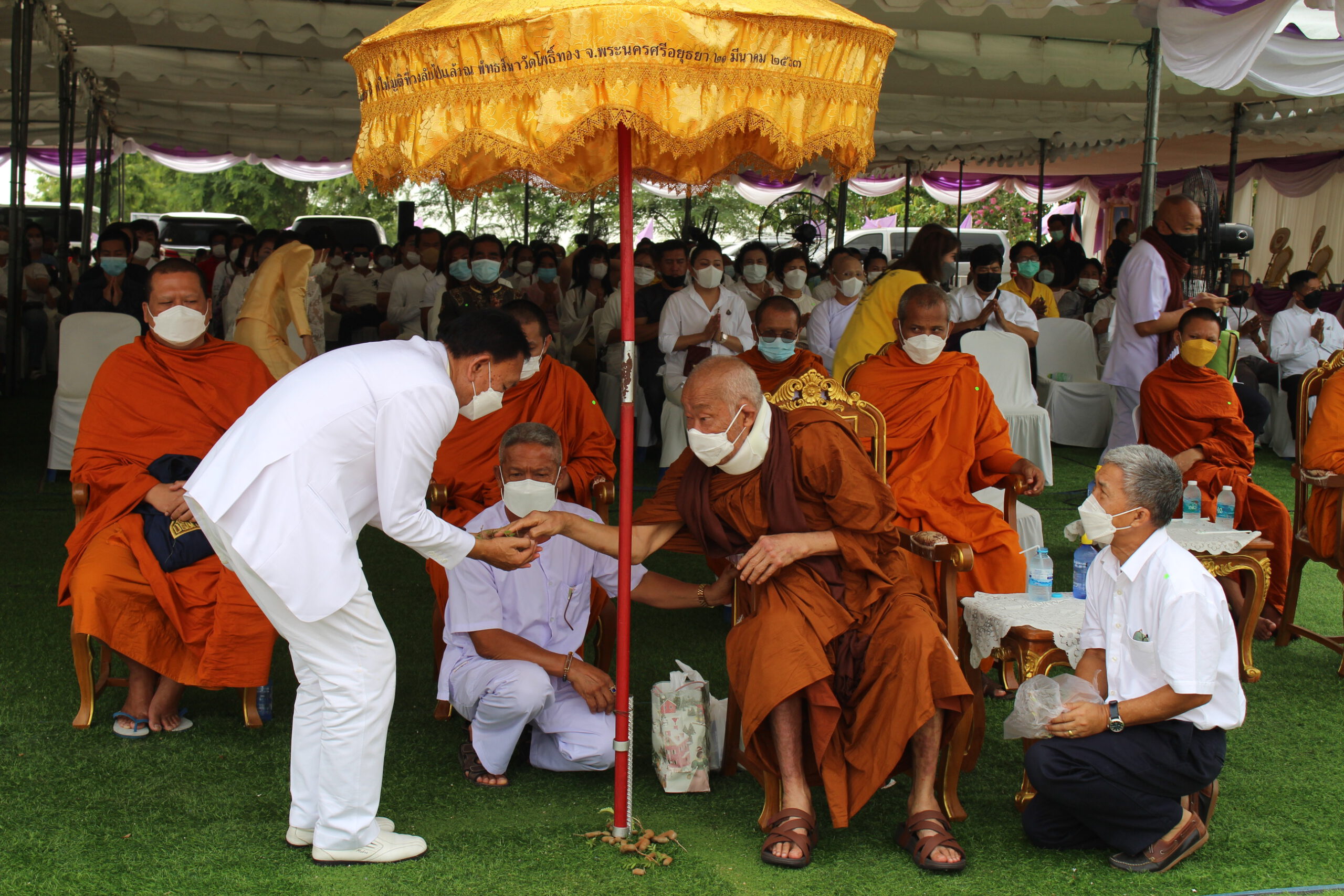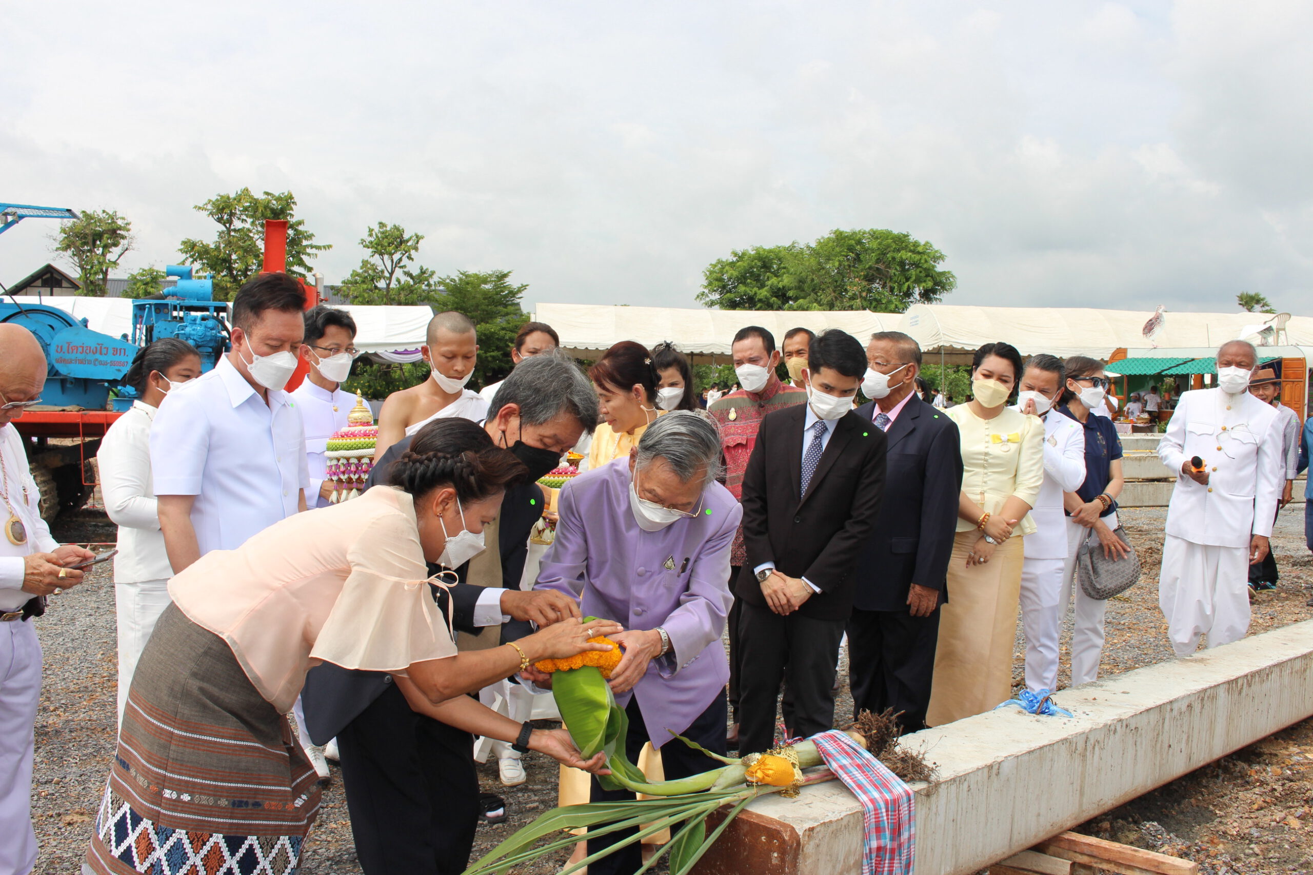 เริ่มตั้งแต่ เวลา9.๐9 น.ซึ่งเป็นพิธีบวงสรวงสิ่งศักดิ์สิทธิ์ และเป็นพิธีสงฆ์เจริญพุทธมนตร์ โดยมีพระครูมงคลธรรมโสภณ (หลวงปู่โทน) สิริมังคโร วัดแจ้งประจันตคาม จังหวัดปราจีนบุรี เป็นประธานฝ่ายสงฆ์ ต่อมาเมื่อเวลา 10.๐9 เป็นมงคลฤกษ์ นายชวน หลีกภัย ประธานในพิธี ประกอบพิธีเสาเอก จำนวน 4 พระองค์ จากนั้นท่านประธานในพิธี ได้มอบใบประกาศเกียรติคุณผู้สนับสนุนโครงการฯ จำนวน 25 ท่าน แล้วเดินทางกลับ