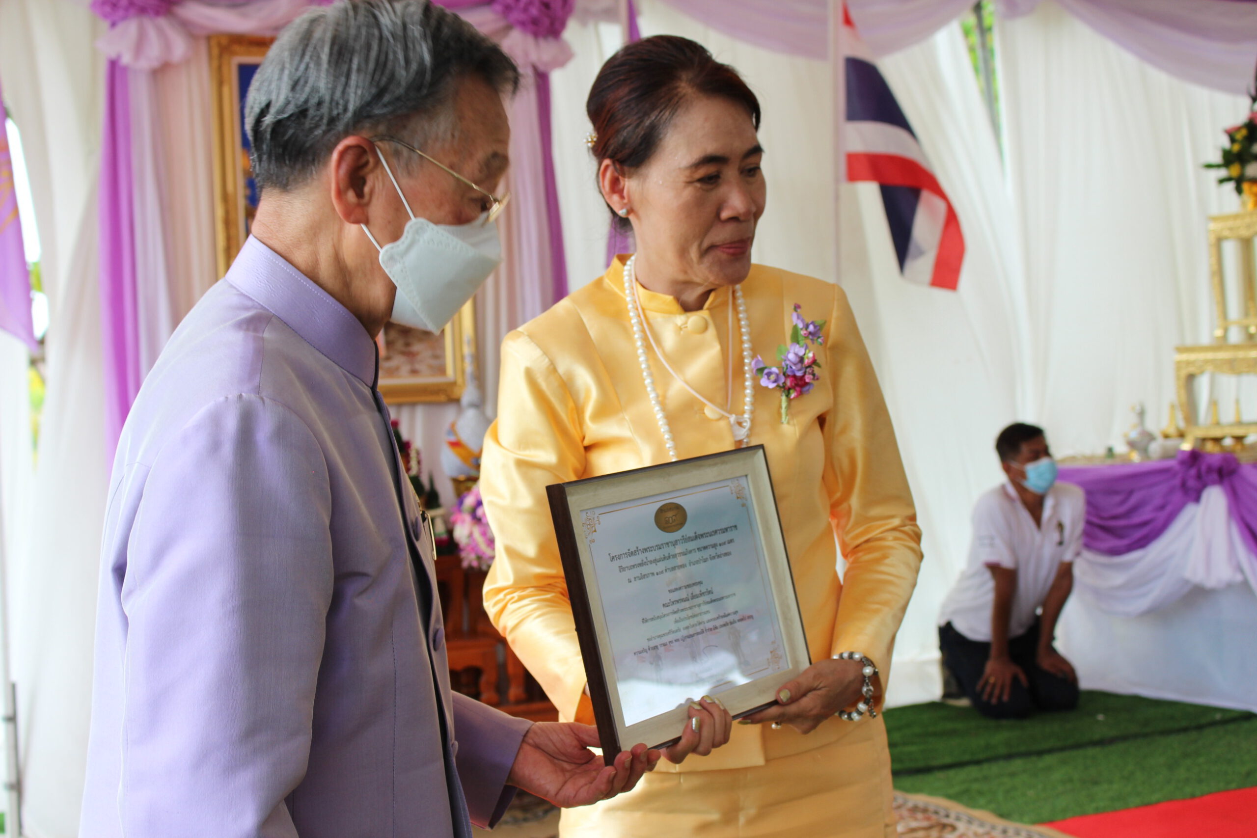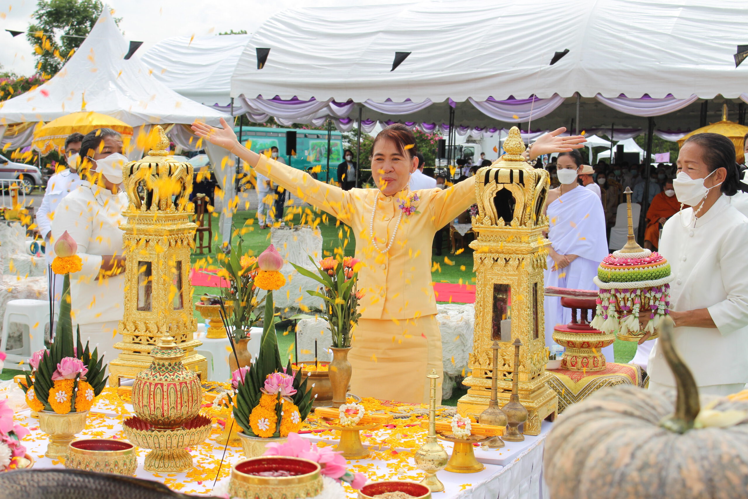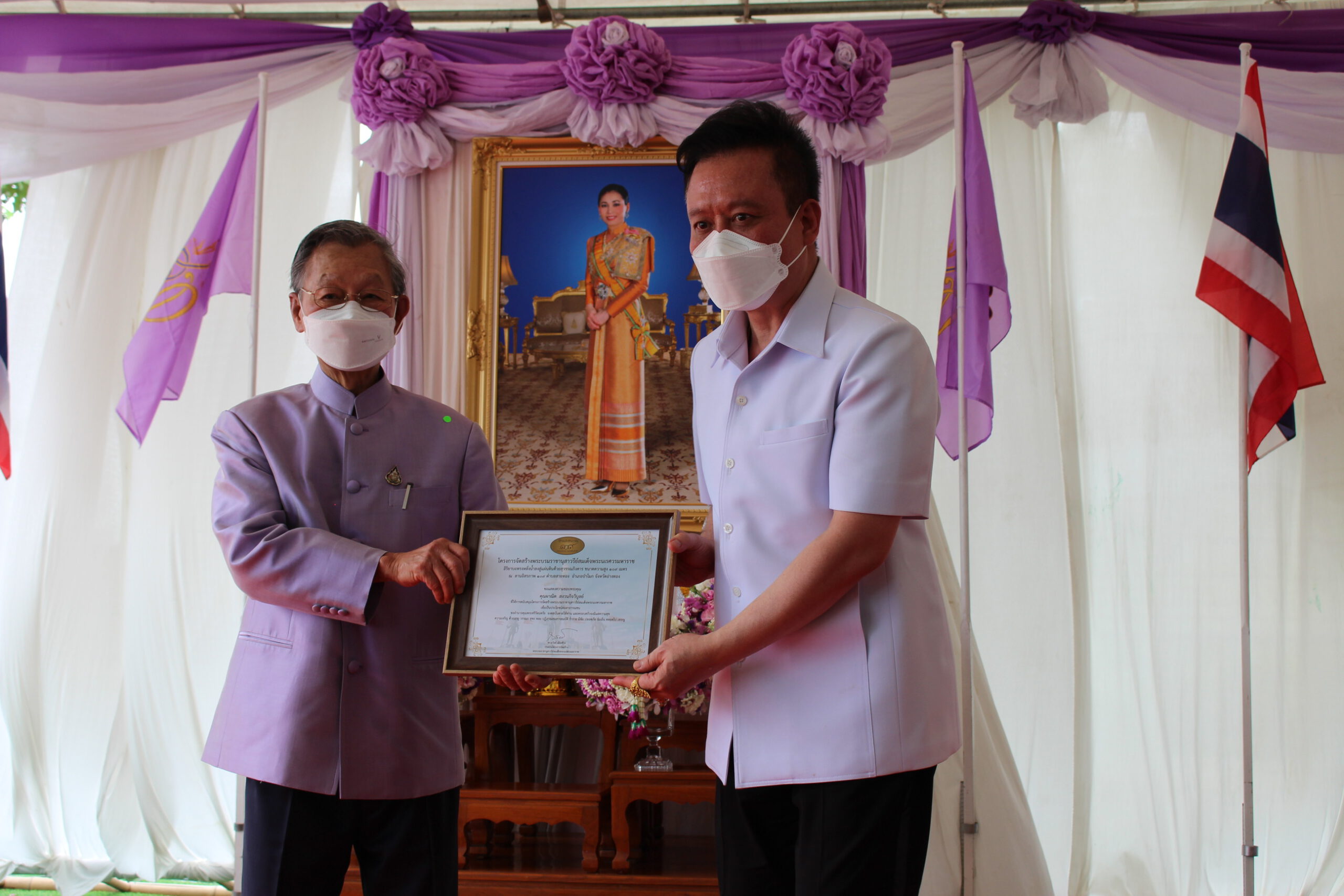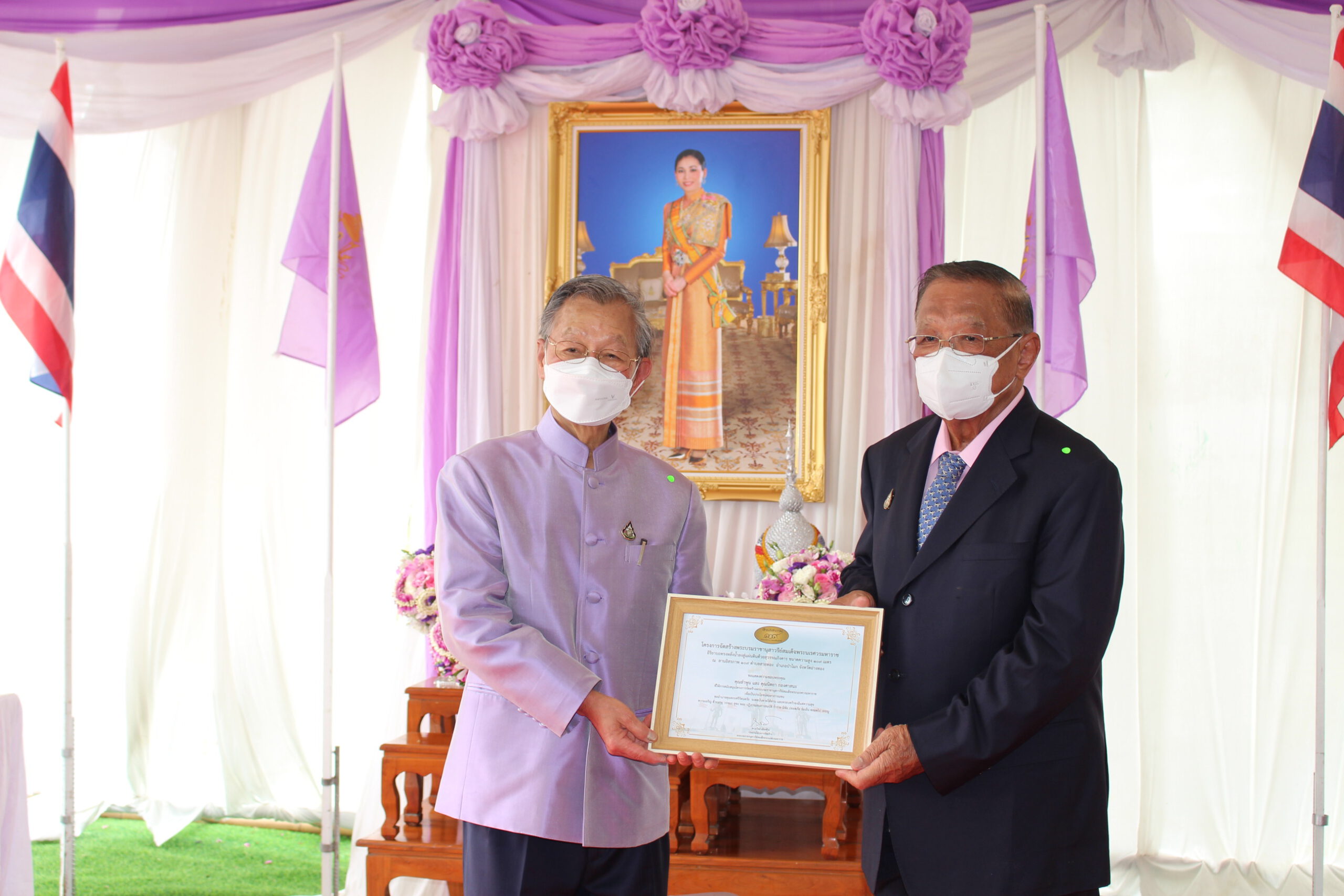 ภายหลังที่พระบาทสมเด็จพระเจ้าอยู่หัวฯ และสมเด็จพระราชาชินี ทรงเสด็จมาวางศิลาฤกษ์แท่นพระบรมรูปพระบรมราชานุสาวรีย์ สมเด็จพระนเรศวรมหาราช เมื่อวันที่9 เมษายน 2565 เนื่องในโอกาสวันคล้ายวันเฉลิมพระชนมพรรษาสมเด็จพระนางเจ้าสุทิดา พัชรสุธาพิมลลักษณ พระบรมราชินี ในวันที่ 3 มิถุนายน 2565เป็นวันมหามงคล ในการนี้ ดร.ถวัลย์ เมืองช้าง ประธานกรรมการบริษัท เอเชีย ไฟน์ อาร์ท จำกัด พร้อมด้วย นางสาวเอกรัตน์ นาคาคง รองผู้ว่าราชการจังหวัดอ่างทอง ข้าราชการ พ่อค้า และประชาชนร่วมพิธีถวายเป็นพระราชกุศล