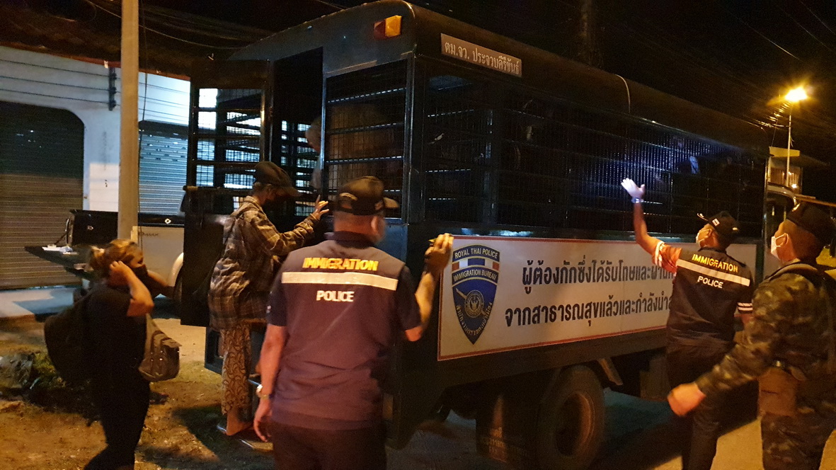 เมื่อเจ้าหน้าที่ไปถึง พบรถยนต์เก๋งยี่ห้อเชฟโรเลต สีบรอนซ์-เงิน หมายเลขทะเบียน ญย 3319 กทม. จอดอยู่บริเวณหน้าห้องเช่า โดยมี 2 ชาวเมียนมาร์ ทราบชื่อ 1.นาย เย มิน ทุน และ 2.นายออง โม มิน กำลังนำเสบียงซึ่งเป็นข้าวกล่องมาส่งให้กลุ่มแรงงานชาวเมียนมาร์ที่หลบซ่อนตัวอยู่ภายในห้องเช่า จึงได้เข้าตรวจสอบก็ต้องถึงกับผงะ เมื่อภายในห้องเช่าพบกลุ่มชาวเมียนมาที่หลบหนีเข้าเมืองจำนวนมาก ทั้งชาย-หญิง และเด็กเล็ก นั่งพักอาศัยเรียงรายจนเต็มห้อง เจ้าหน้าที่จึงได้ประสานนายสมชาย ปี่แก้ว นายก อบต.คลองวาฬ พร้อมด้วยเจ้าหน้าที่ทหารหน่วยเฉพาะกิจจงอางศึก กองกำลังสุรสีห์ เจ้าหน้าที่ฝ่ายปกครองอำเภอเมืองประจวบฯ เจ้าหน้าที่ตำรวจภูธรคลองวาฬ เจ้าหน้าที่ตำรวจตรวจคนเข้าเมืองประจวบคีรีขันธ์ (ตม.) เจ้าหน้าที่อาสารักษาดินแดนอำเภอเมืองประจวบคีรีขันธ์ (อส.) เข้าตรวจสอบจับกุม ส่งดำเนินคดีตามกฎหมาย