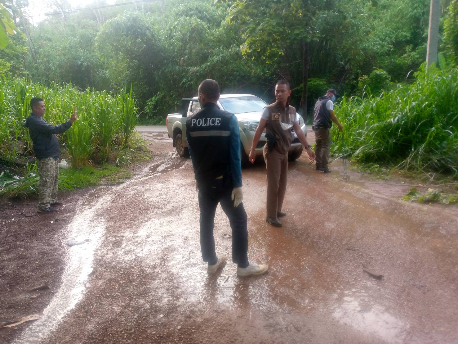 จากการตรวจค้นภายในรถ ปรากฏพบแรงงานต่างด้าวชาวเมียนมา จำนวน 8 คน เป็นชาย 3 คน หญิง 5 คน นั่งแออัดกันอยู่ภายในรถสภาพบาดเจ็บศรีษะแตกบางรายถึงกับสลบ เจ้าหน้าที่จึงประสานขอความช่วยเหลือจากเจ้าหน้าที่มูลนิธิกู้ภัยกาญจนบุรี นำอุปกรณ์ทางการแพทย์มาช่วยรักษาในเบื้องต้นจนทุกคนอาการดีขึ้น จากนั้นจึงคุมตัวไปสอบปากคำที่ สภ.ทองผาภูมิ