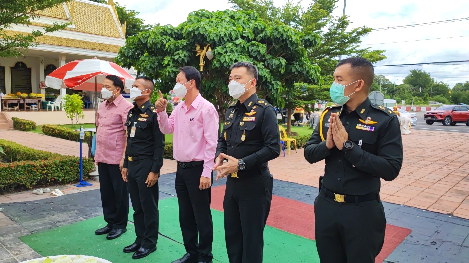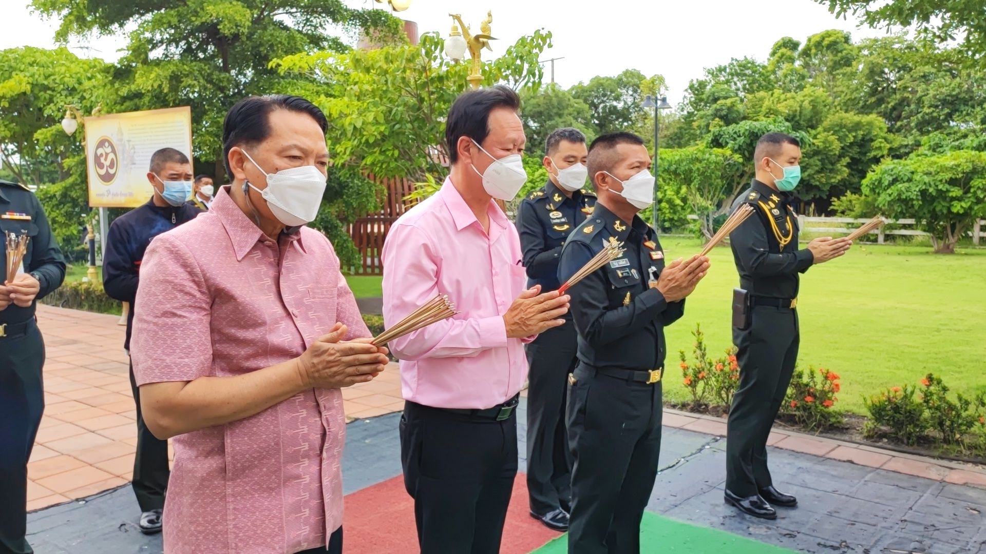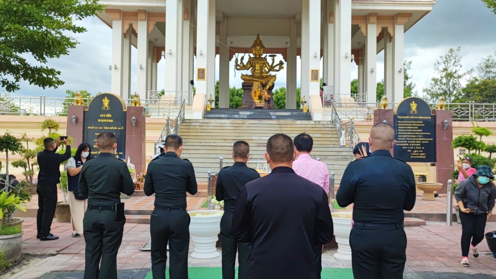 พล.ต.วิรัฎฐ์ วงษ์จันทร์ หัวหน้าสำนักงานเลขานุการคณะกรรมการพัฒนาเพื่อความมั่นคงในระดับพื้นที่ในเขตกองทัพภาคที่ 1 (หน.สล.พมพ.ทภ.1) พร้อมคณะ และ พล.ต.ธนสิน สุขโข ผู้บัญชาการมณฑลทหารบกที่ 13 และคณะฯ ได้ สักการะขอพรองค์เทวาลัยพระพรหม ให้เกิดความโชคดีมีชัยและเป็นศิริมงคล ในโอกาสเดินทางมาร่วมประชุมหัวหน้าส่วนราชการ เพื่อบูรณาการแก้ไขปัญหาในพื้นที่ลุ่มแม่น้ำเจ้าพระยาตอนล่าง