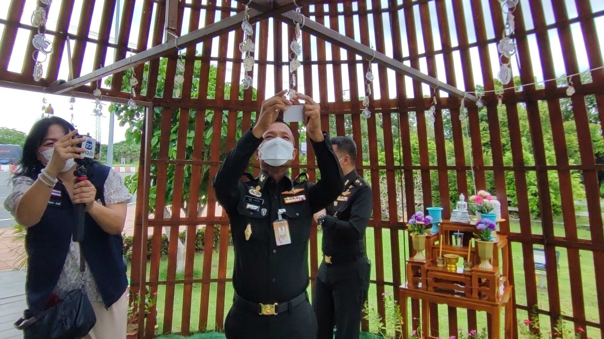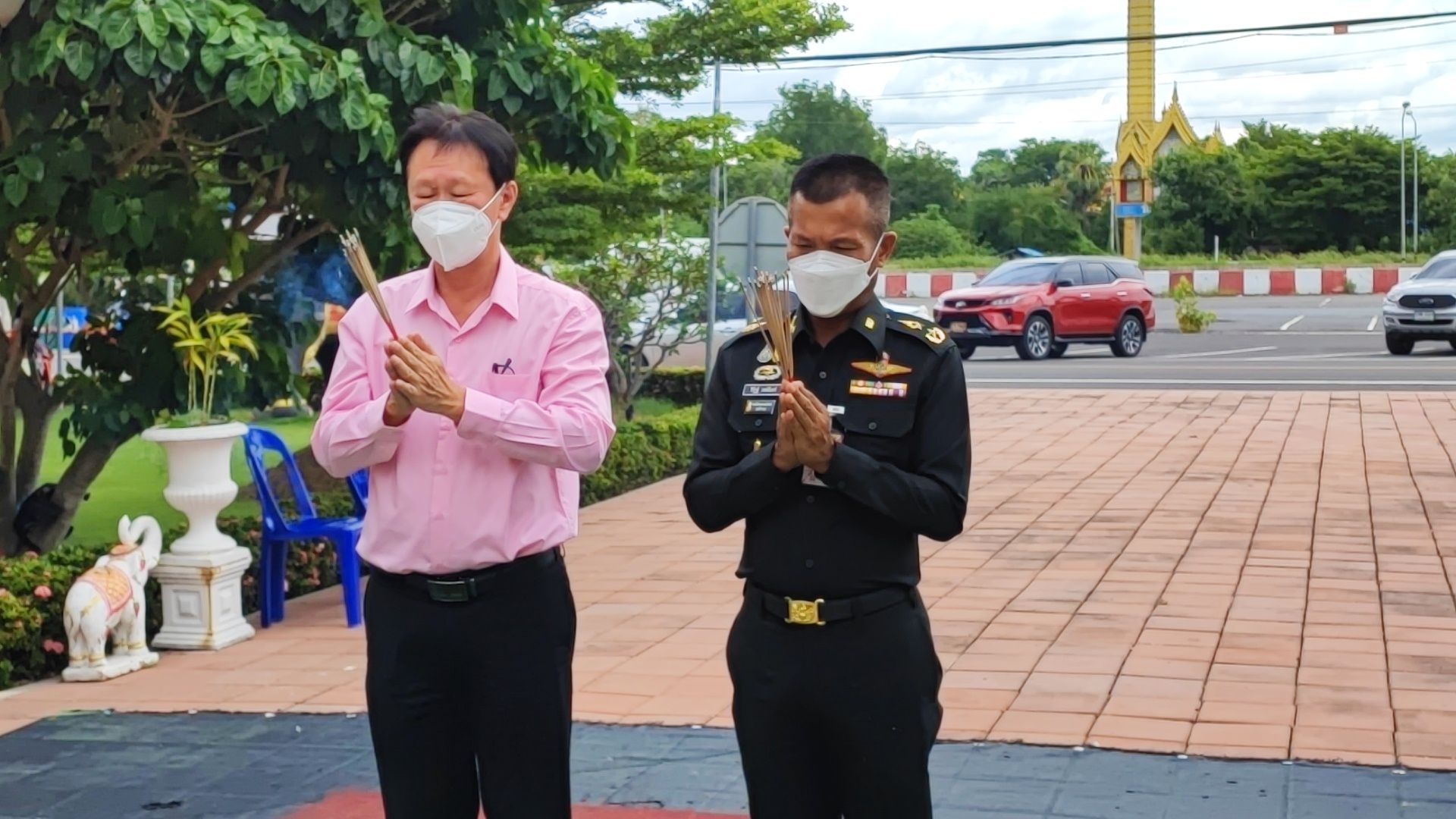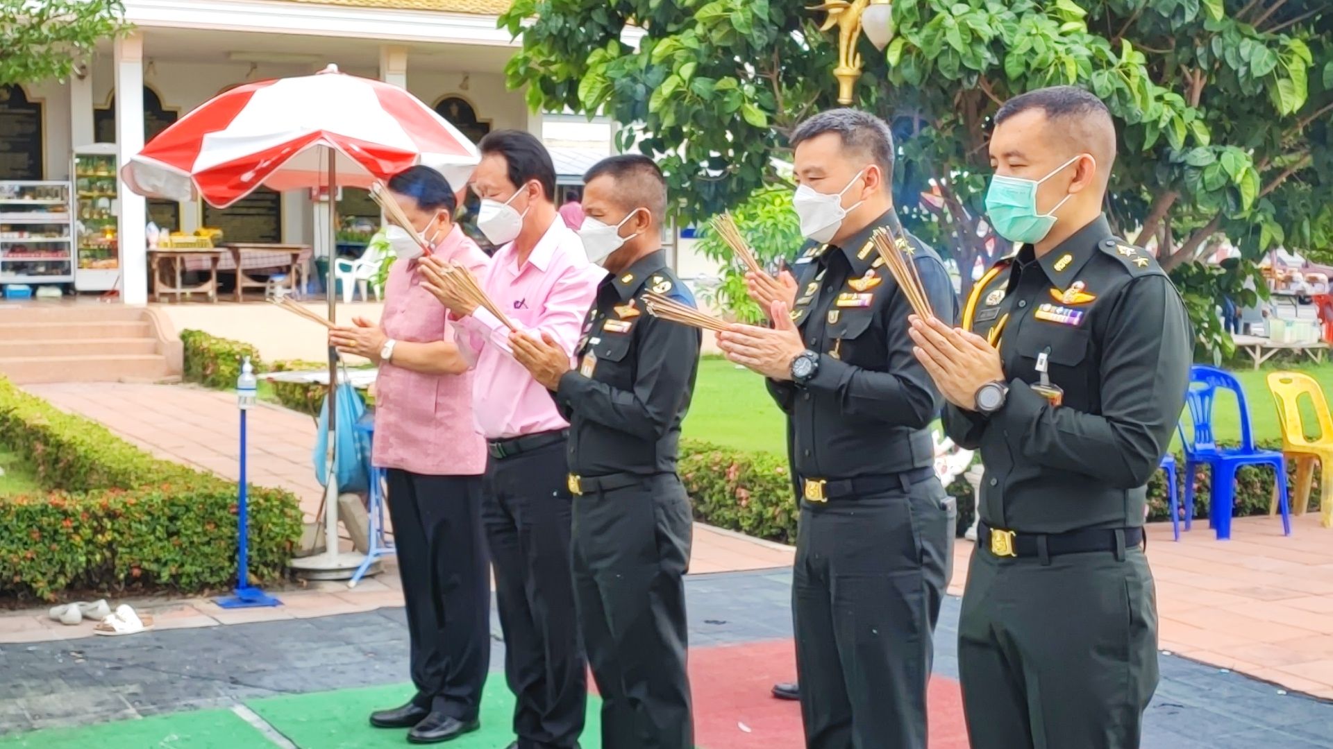 พล.ต.วิรัฎฐ์ วงษ์จันทร์ หัวหน้าสำนักงานเลขานุการคณะกรรมการพัฒนาเพื่อความมั่นคงในระดับพื้นที่ในเขตกองทัพภาคที่ 1 (หน.สล.พมพ.ทภ.1) พร้อมคณะ และ พล.ต.ธนสิน สุขโข ผู้บัญชาการมณฑลทหารบกที่ 13 และคณะฯ ได้ สักการะขอพรองค์เทวาลัยพระพรหม ให้เกิดความโชคดีมีชัยและเป็นศิริมงคล ในโอกาสเดินทางมาร่วมประชุมหัวหน้าส่วนราชการ เพื่อบูรณาการแก้ไขปัญหาในพื้นที่ลุ่มแม่น้ำเจ้าพระยาตอนล่าง