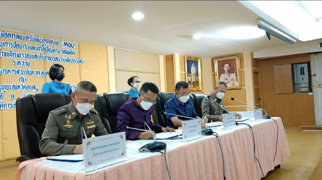 อบจ.อุบลราชธานี นายกานต์ กัลป์ตินันทน์ นายยกองค์กสรริหารส่วนจังหวัดอุบลราชธานี มอบเงินอุดหนุน โครงการป้องกันและแก้ไขปัญหายาเสพติดและเสริมสร้างศักยภาพเด็ก เยาวชน รู้ทันสื่อออนไลน์ ในจังหวัด กว่า 9 ล้านบาท องค์การบริหารส่วนจังหวัดอุบลราชธานี จัดพิธีลงนามบันทึกข้อตกลง MOU ความร่วมมือโครงการอุดหนุนการป้องกันและแก้ไขปัญหายาเสพติด โครงการอุดหนุนการป้องกันและแก้ไขปัญหายาเสพติด ในพื้นที่หมู่บ้าน ชุมชน ที่มีปัญหาการระบาดของยาเสพติด โครงการเสริมสร้างศักยภาพเด็ก เยาวชน และประชาชน รู้ทันภัยสื่อออนไลน์ระหว่าง นายกานต์ กัลป์ตินันทน์ นายกองค์การบริหารส่วนจังหวัดอุบลราชธานี นายสมเจตน์ เต็งมงคลปลัดจังหวัดอุบลราชธานี พล.ต.ต.สถาพร เอมโอษฐ์ ผู้บังคับการตำรวจภูธรจังหวัดอุบลราชธานี และ พ.ต.อ.ยุทธนา พฤกษารุ่งเรือง ผกก.สภ. วารินชำราบ พร้อมด้วยคณะผู้บริหาร หัวหน้าส่วนราชการ เข้าร่วมในพิธีลงนามบันทึกข้อตกลงการรับเงินอุดหนุนฯ ณ ห้องประชุมสภาองค์การบริหารส่วนจังหวัดอุบลราชธานี ชั้น 3