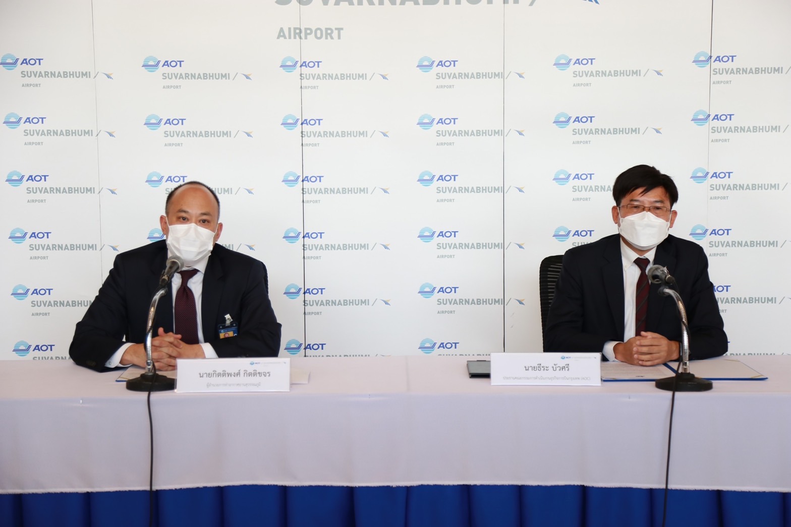 *****เมื่อเวลา 14.00น.วันที่ 9 มิถุนายน 2565 นายกิตติพงศ์ กิตติขจร ผู้อำนวยการ ท่าอากาศยานสุวรรณภูมิ และนายธีระ บัวศรี ประธานคณะกรรมการดำเนินงานธุรกิจการบินกรุงเทพ (AOC) ร่วมกันแถลงข่าวความพร้อมการให้บริการผู้โดยสารขาออก ท่าอากาศยานสุวรรณภูมิ ณ บริเวณด้านหน้าศูนย์ปฏิบัติการภาวะฉุกเฉิน (หน้าห้อง CIP) ชั้น 3 ประตู 8