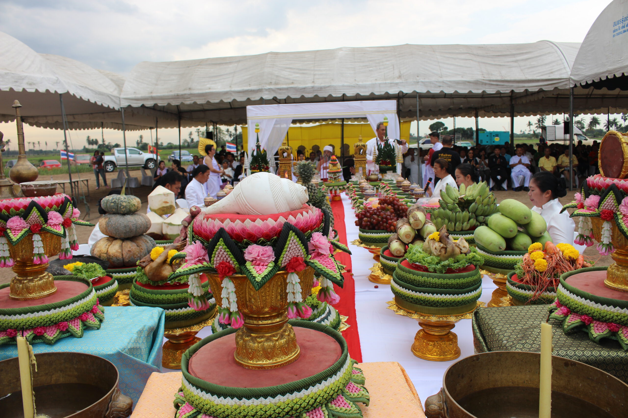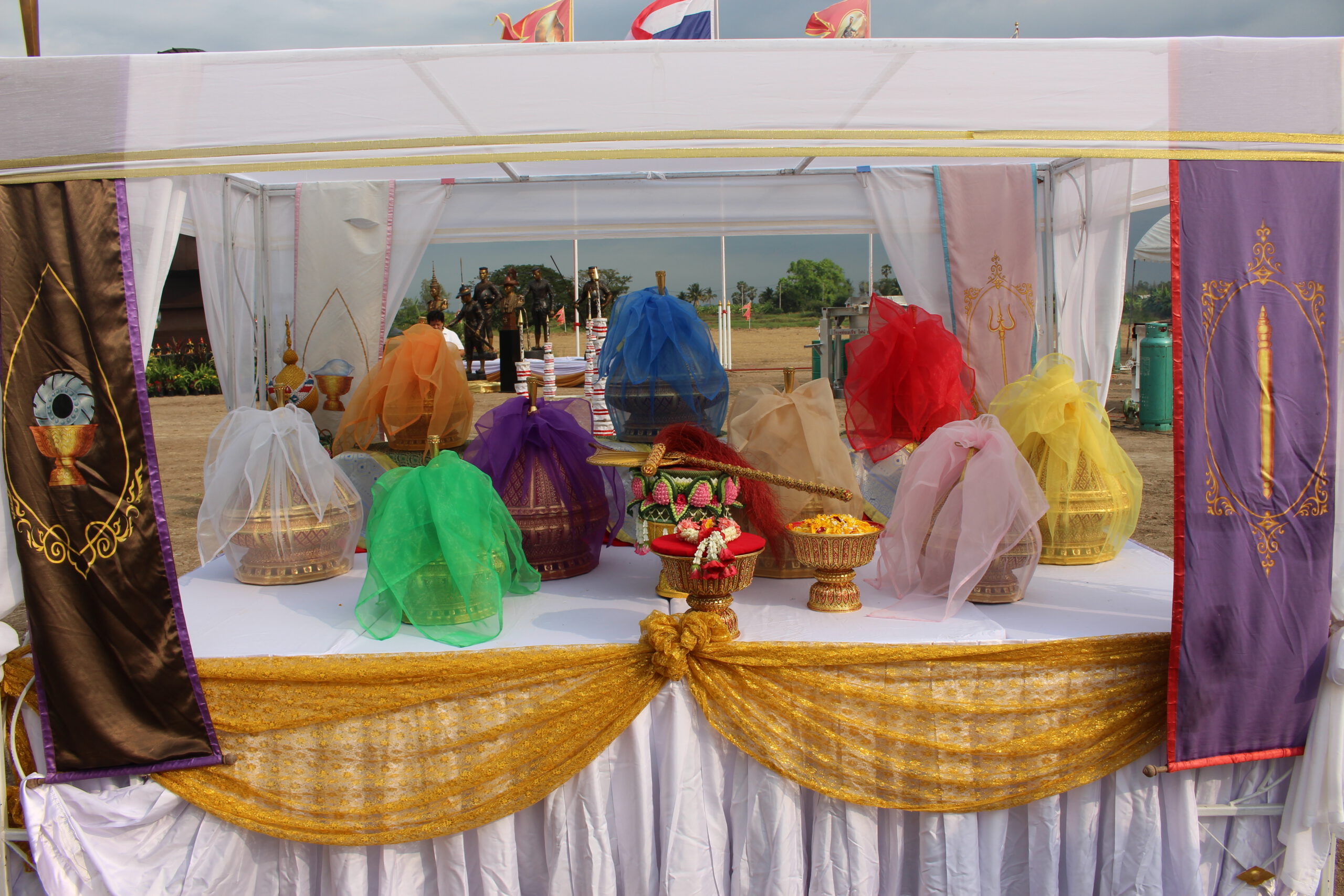 ดร.ถวัลย์ เมืองช้าง กล่าวทิ้งท้ายว่า พิธีเททองหล่อในส่วนข้อพระบาทพระบรมรูปสมเด็จพระนเรศวรมหาราชฤกษ์เวลา 12.๐9 น.ส่วนพิธียกพระบรมรูปสมเด็จพระนเรศวรหาราช อิริยาบถ ทรงพระแสงปืนต้นข้ามแม่น้ำสะโตง ขึ้นบนแท่นประดิษฐานเวลาฤกษ์ 12.29 น.