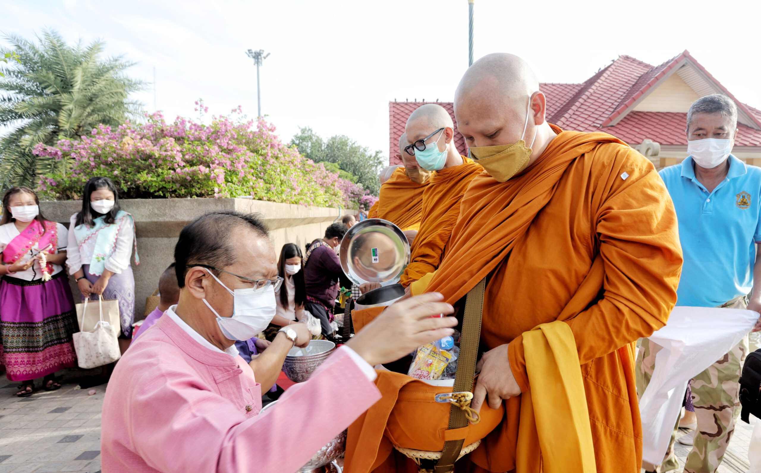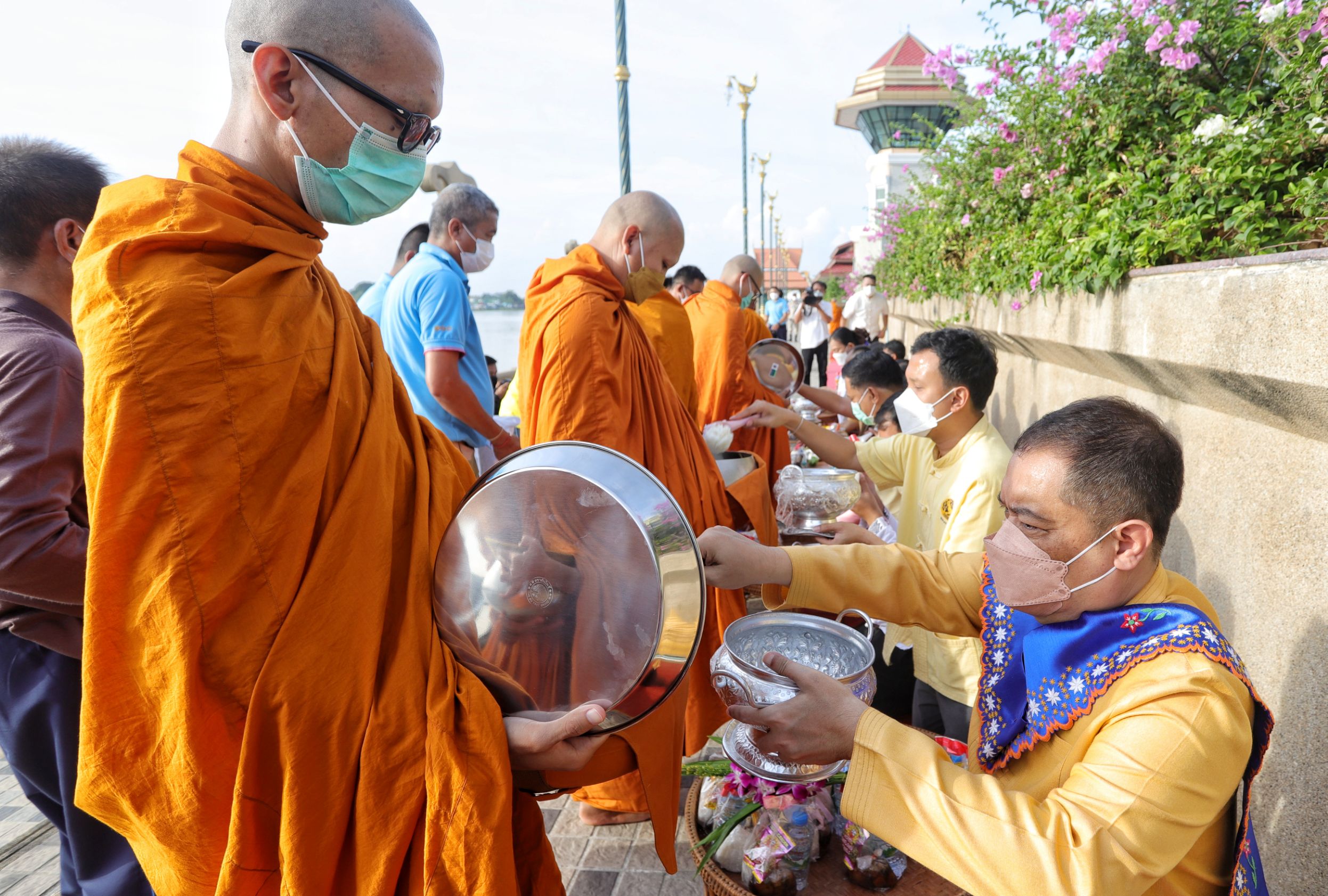เมื่อเวลา 07.00 น.วันที่ 14 มิ.ย. 2565 ที่บริเวณท่าน้ำสวนเทพปทุมเฉลิมพระเกียรติ ต.บางปรอก อ.เมือง จ.ปทุมธานี นายณรงค์ศักดิ์ โอสถธนากร ผู้ว่าราชการจังหวัดปทุมธานี พร้อมด้วย นายเอกวิทย์ มีเพียร รองผู้ว่าราชการจังหวัดปทุมธานี นายพิษณุ ประภาธนานันท์ นายอำเภอเมืองปทุมธานี นายพงษ์เทพ รุ่งเรือง พัฒนาการจังหวัดปทุมธานี หัวหน้าส่วนราชการ ประชาชนชาวปทุมธานี ร่วมกิจกรรมส่งเสริมการท่องเที่ยววิถีวัฒนธรรม ของจังหวัดปทุมธานี ร่วมกันตักบาตรสืบสานวิถี ไทย รามัญ พระภิกษุ เนื่องในวันพระใหญ่ ขึ้น15 ค่ำเพื่อส่งเสริมให้ข้าราชการ ผู้นำท้องถิ่น และประชาชนทั่วไปได้มีการรักษาศีลตามหลักพระพุทธศาสนา และชูอัตลักษณ์ท้องถิ่นดึงนักท่องเที่ยวสัมผัสวัฒนธรรมริมน้ำเจ้าพระยา เพื่อกระตุ้นการท่องเที่ยวให้กลับมาคึกคักอีกครั้ง