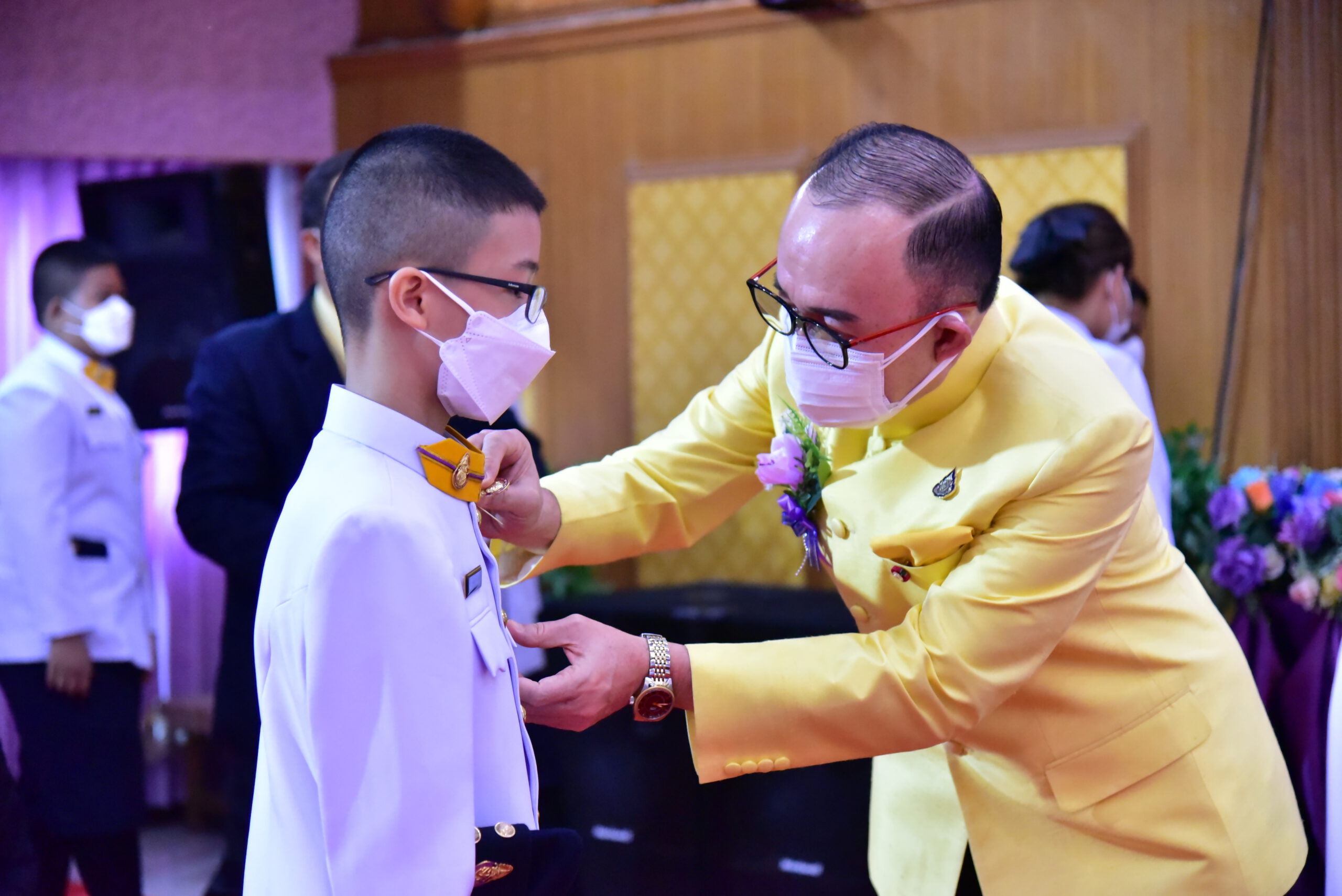 ม.ล.ปนัดดา ดิศกุล สมาชิกวุฒิสภา เป็นประธานพิธีมอบเข็ม ภ.ป.ร. ให้แก่นักเรียนระดับชั้น ม.1 และ ม.4 ที่เข้าใหม่ ของโรงเรียนกาญจนาภิเษกวิทยาลัย นครปฐม