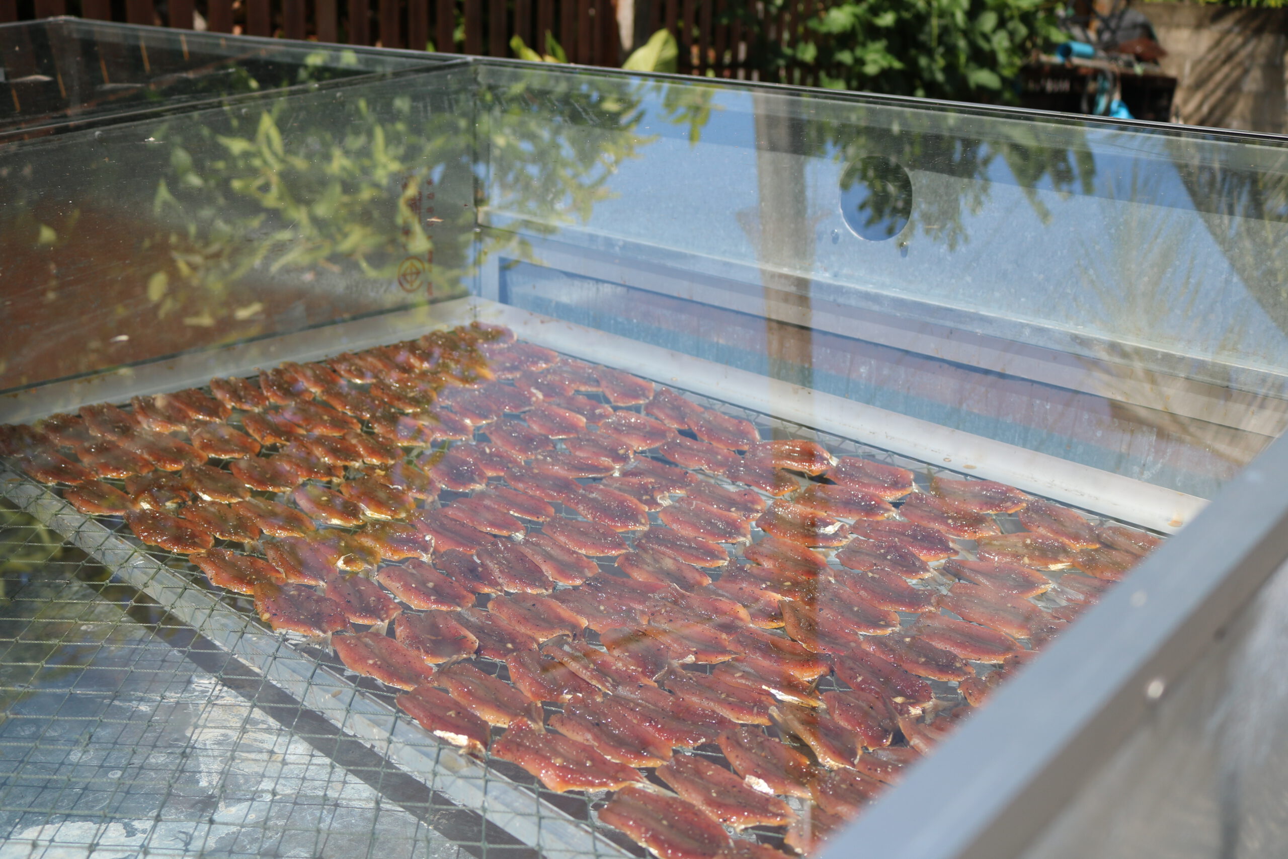 ด้าน คุณราตรี มั่งคั่ง ผู้จัดการบริการ งาน CSR บริษัท ผลิตไฟฟ้าขนอม จำกัด กล่าวว่า สืบเนื่องจากการจัดโครงการความร่วมมือแลกเปลี่ยนผลผลิตทางการเกษตร ครั้งที่ 2 ภายใต้กิจกรรมแลกเปลี่ยนผลผลิตข้าวอินทรีย์และอาหารทะเล “ข้าวใหม่ ปลามัน” ที่จังหวัดสุรินทร์ เมื่อเดือนเมษายน 2565 ที่ผ่านมานั้น จังหวัดสุรินทร์ได้นำข้าวหอมมะลิอินทรีย์ มาแลกกับผลิตภัณฑ์อาหารทะเลของอำเภอขนอม จังหวัดนครศรีธรรมราช ซึ่งในส่วนผลิตภัณฑ์ประมงยังไม่ได้เข้าสู่กระบวนการด้านอินทรีย์ ดังนั้น กิจกรรมการอบรมการจัดทำมาตรฐานแปรรูปอาหารทะเลอินทรีย์ ในครั้งนี้จึงเป็นที่มาและเป็นแรงผลักดันให้ ทาง บริษัท ผลิตไฟฟ้าขนอม จำกัด ร่วมกับ วิทยาลัยเทคโนโลยีอุตสาหกรรมและการจัดการ มหาวิทยาลัยเทคโนโลยีราชมงคลศรีวิชัย พื้นที่ขนอม ในการต่อยอดนวัตกรรมตู้อบลมร้อนพลังงานแสงอาทิตย์ ตากปลาได้ตลอดเวลา โดยตู้สามารถป้องกันเรื่องของแมลงและสิ่งรบกวนต่างๆได้อย่างดี ใช้งานได้ง่าย อีกทั้ง ร่วมกับ สมาพันธ์เกษตรอินทรีย์ไทยพีจีเอส ก่อให้เกิดการร่างมาตรฐานของผลิตภัณฑ์ ให้กับกลุ่มวิสาหกิจชุมชนเพื่อนำไปใช้ประโยชน์ด้านโภชนการ แก้ไขปัญหาราคาผลผลิตการเกษตรตกต่ำ และเพิ่มช่องทางด้านการตลาดของสินค้าผลิตภัณฑ์ได้อย่างยั่งยืนต่อไป