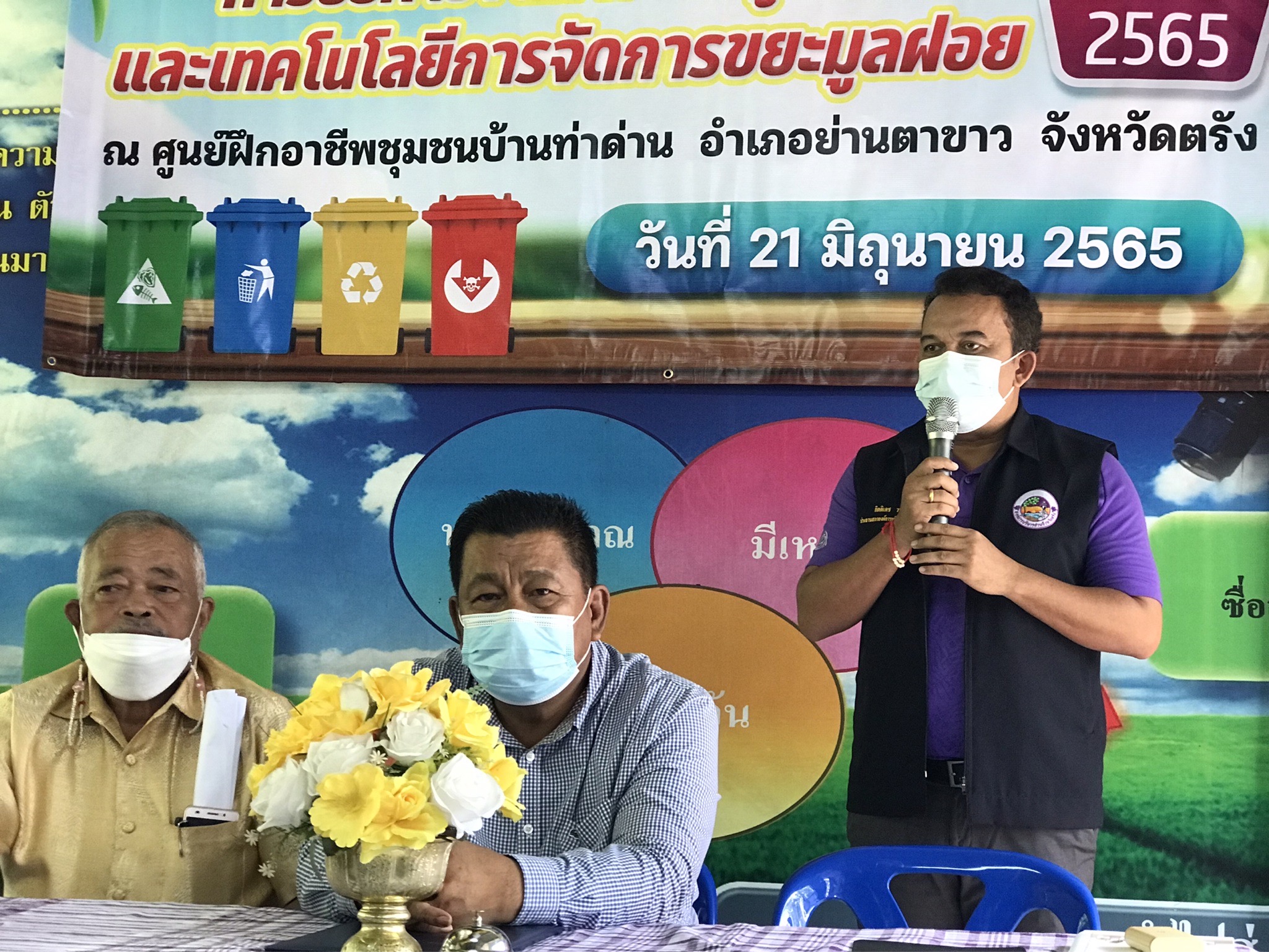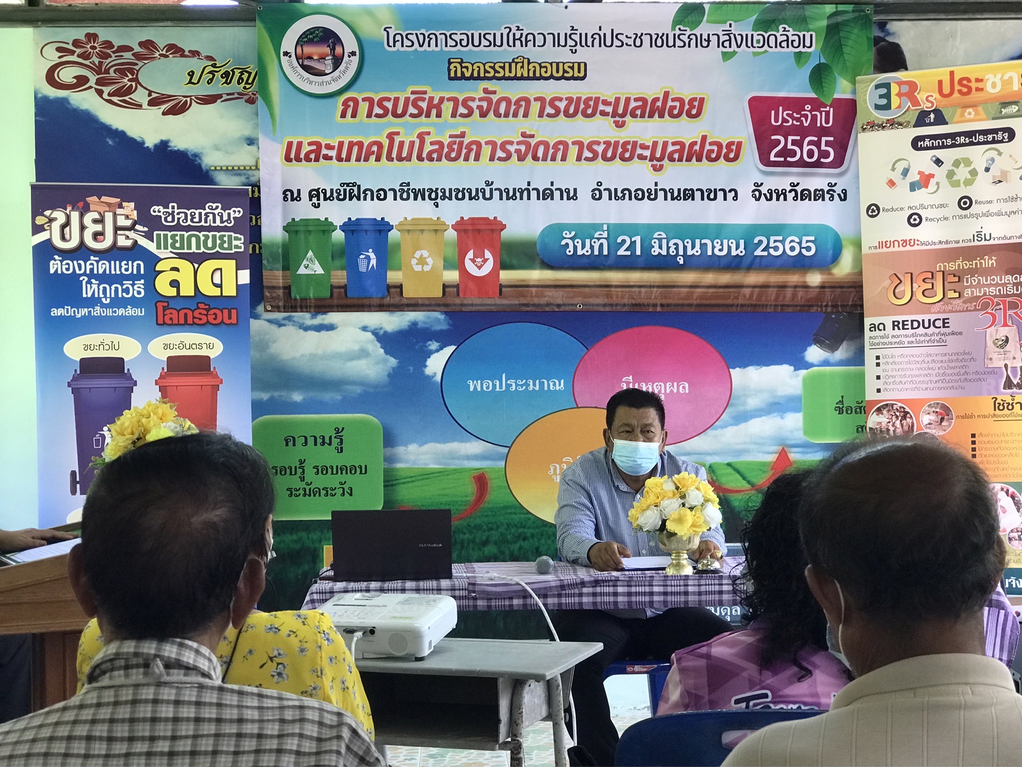 อบจ.ตรัง จัดโครงการอบรมให้ความรู้แก่ประชาชนรักษาสิ่งแวดล้อม กิจกรรมฝึกอบรมการบริหารจัดการขยะมูลฝอยในชุมชนและเทคโนโลยีการจัดการขยะมูลฝอย ประจำปี 2565 รุ่นที่ 2