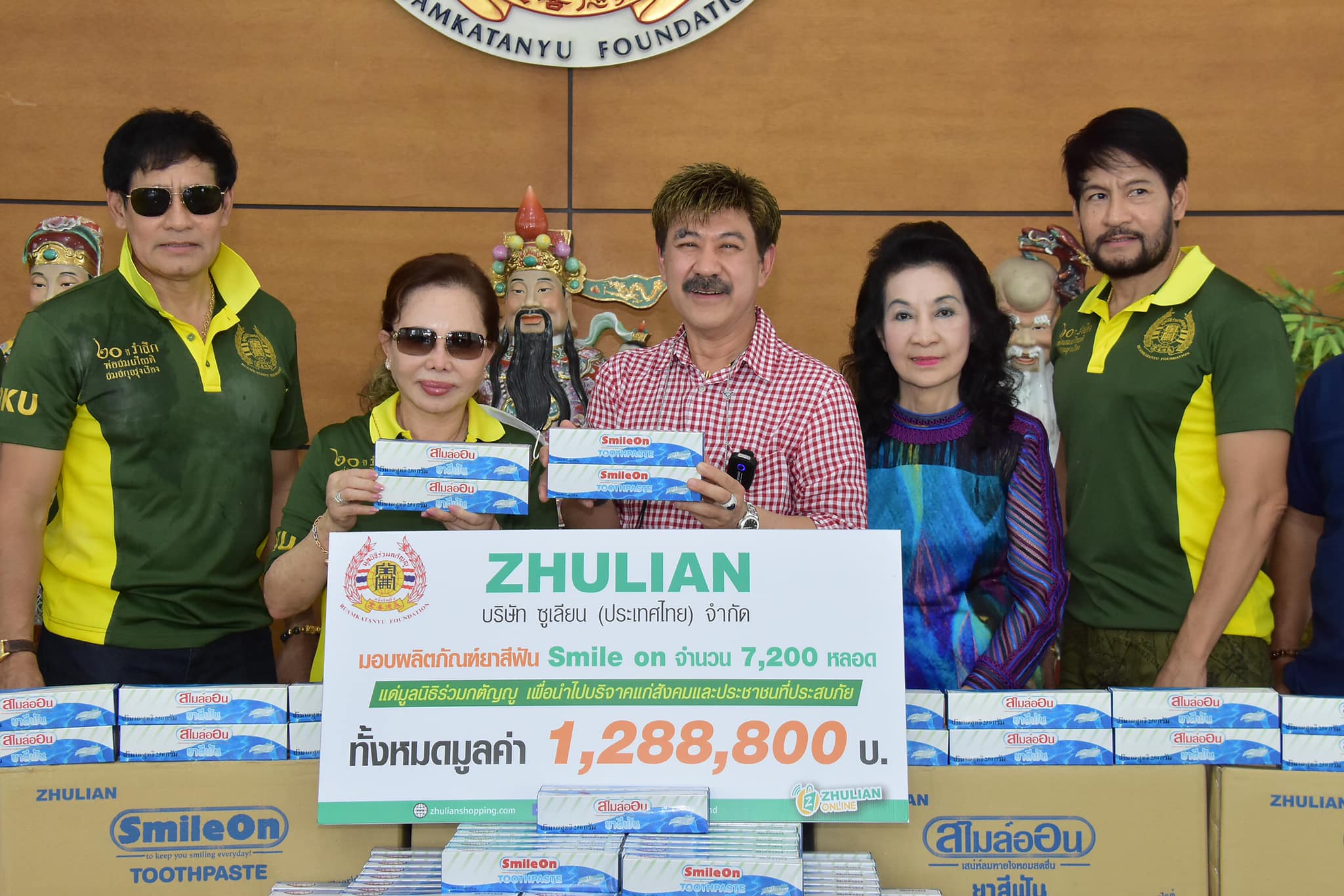ยังคงยืนหนึ่งในความเป็นนักบุญ สำหรับ ดร.ปิยะวัฒน์ จุลล์จักรวงศา CEO บริษัท ซูเลียน (ประเทศไทย) จำกัด ซึ่งเมื่อวันที่ 22 มิถุนายนที่ผ่านมา ได้เดินทางไปยังสำนักงานใหญ่มูลนิธิร่วมกตัญญู บางพลี สมุทรปราการ เพื่อเข้าพบนางรัตนา สมสกุลรุ่งเรือง ประธานมูลนิธิร่วมกตัญญู ก่อนที่จะนำยาสีฟันซูเลียน Smile On จำนวน 7,200 หลอด มูลค่า 1,288,800 บาท มอบให้กับมูลนิธิร่วมกตัญญูเพื่อไปมอบแด่สังคมและผู้ประสบภัย