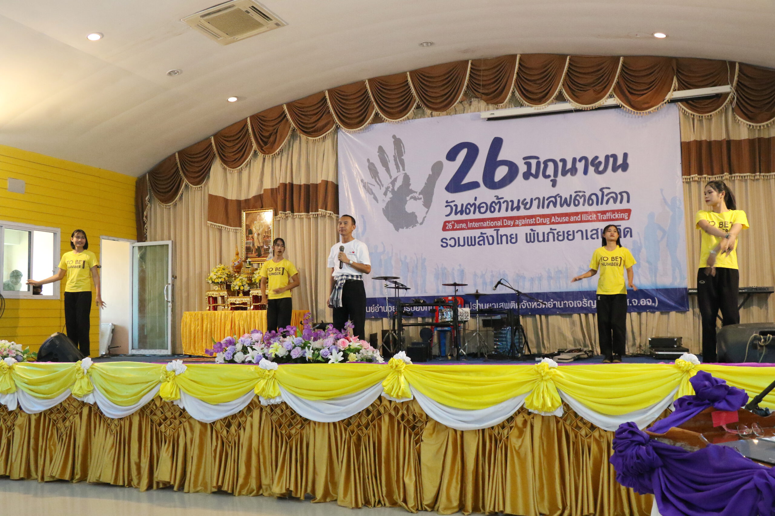 โดยมีกิจกรรม ประกอบด้วย การชุมนุมส่วนราชการ นักเรียน/นักศึกษา และประชาชนทุกภาคส่วน เพื่อรับฟังสารเนื่องในวันต่อต้านยาเสพติดโลก การประกาศเจตนารมณ์และกล่าวคำปฏิญาณตนต่อต้านยาเสพติด การจัดนิทรรศการของหน่วยงานต่างๆ กิจกรรมการแสดงของเยาวชน สมาชิกชมรม TO BE NUMBER ONE และการแข่งขันกีฬาต่อต้านยาเสพติด โดยมีวัตถุประสงค์ เพื่อให้ประชาชนทุกภาคส่วนได้รับรู้และเข้าใจถึงโทษพิษภัยจากยาเสพติด สามารถป้องกันตนเอง ครอบครัว และสังคม ตลอดจนประเทศชาติให้ปลอดภัยจากยาเสพติด พร้อมเข้ามามีส่วนร่วมในการป้องกันและแก้ไขปัญหายาเสพติดอย่างจริงจัง นายฤทธิสรรค์ เทพพิทักษ์ ปลัดจังหวัด นางสาววันเพ็ญ ตั้งสกุล นายกองค์การบริหารส่วนจังหวัด นายธนูศักดิ์ เสมอภาค นายอำเภอเมืองอำนาจเจริญ นำส่วนราชการ กำนัน ผู้ใหญ่บ้าน และประชาชนเข้าร่วมกิจกรรม