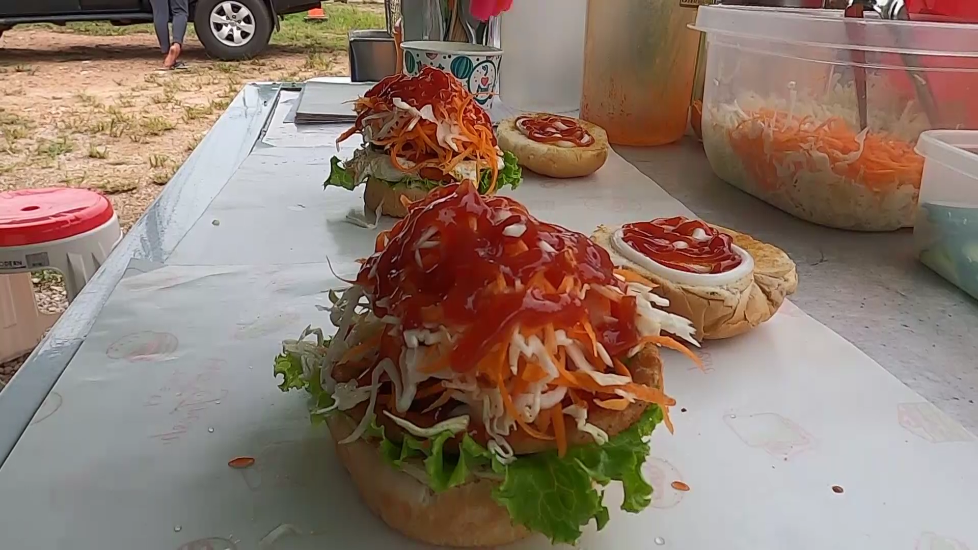 โดยนางสาวจรี ใจตรง หรือครูเจ กล่าวว่า ตนเองได้เป็นครู กศน.ตำบลมากว่า 10 ปี ก่อนหน้านี้ก็ทำอาชีพเสริมหลายอบ่างทั้งขายอาหารทะเลสด และตากแห้ง แต่ก็ประสบปัญหาการหาสินค้าได้มีเพียงพอต่อความต้องการของลูกค้า และต้องจัดการเรียนการสอนออนไลน์ จนไม่มีเวลาไปหาสินค้ามาขายได้จึงได้หยุดไป เลยหันมาขายแฮมเบอร์เกอร์หน้าโรงเรียนหาดสำราญวิทยาคม โดยมีลูกค้าทั้งนักเรียน ชาวบ้านในอำเภอหาดสำราญ และนักท่องเที่ยวที่แวะมาซื้ออย่างต่อเนื่อง โดยใช้เวลาก่อนไปทำงานขายข้าวหน้าไก่เทอริยากิ ตอนเย็นขายแฮมเบอร์เกอร์ โดยใช้วัตถุดิบจากประเทศมาเลเซียทั้งหมดไม่ว่าจะเป็นขนมปัง ซอส เนื้อ ไก่ ปลา กุ้ง ชีส จึงทำให้ได้รสสัมผัสเหมือกับเกินแฮมเบอร์เกอร์ที่ประเทศมาเลเซียเลยทีเดียว และเป็นเจ้าแรกเจ้าเดียวในอำเภอหาดสำราญที่ขายแฮมเบอร์เกอร์ จึงทำให้ยอดขายไม่ต่ำว่า 100 ชิ้นต่อวัน สามารถเป็นอาชีพเสริมที่ทำง่าย สนุกและได้เงินด้วย ทางด้านนางสาวอำภา กุลตัน ลูกค้าขาประจำ กล่าวว่า ตนเองมักจะพาลูกๆมาซื้อแฮมเบอร์เกอร์ครูเจเป็นประจำเกือบทุกวัน เพราะถูกใจในรสชาติที่อร่อย กลมกล่อม ซอสเข้มข้นหวานมัน เหมือนกับที่เคยได้กินที่ประเทศมาเลเซีย และราคาก็ไม่แพงด้วย อีกอย่างครูเจจะให้วัตถุดิบที่ดีมีคุณภาพจากประเทศมาเลเซีย.