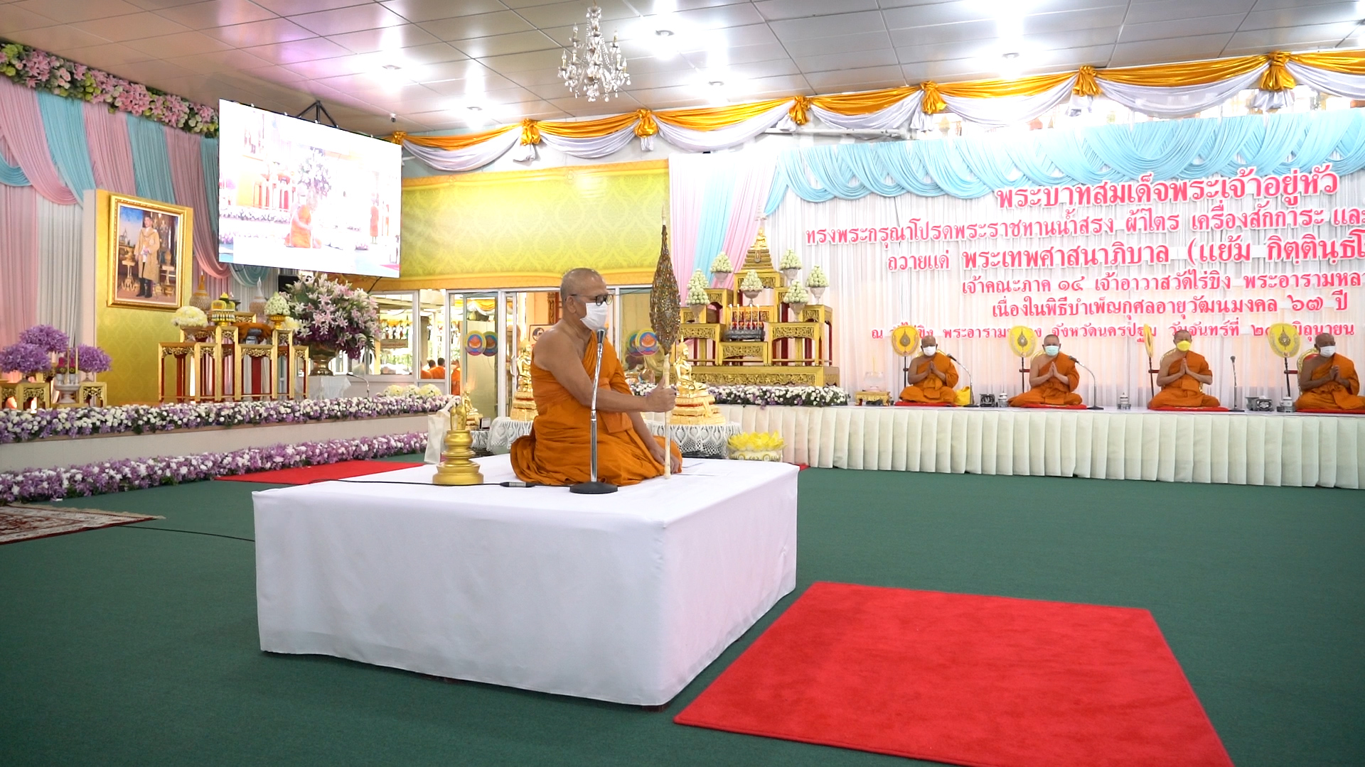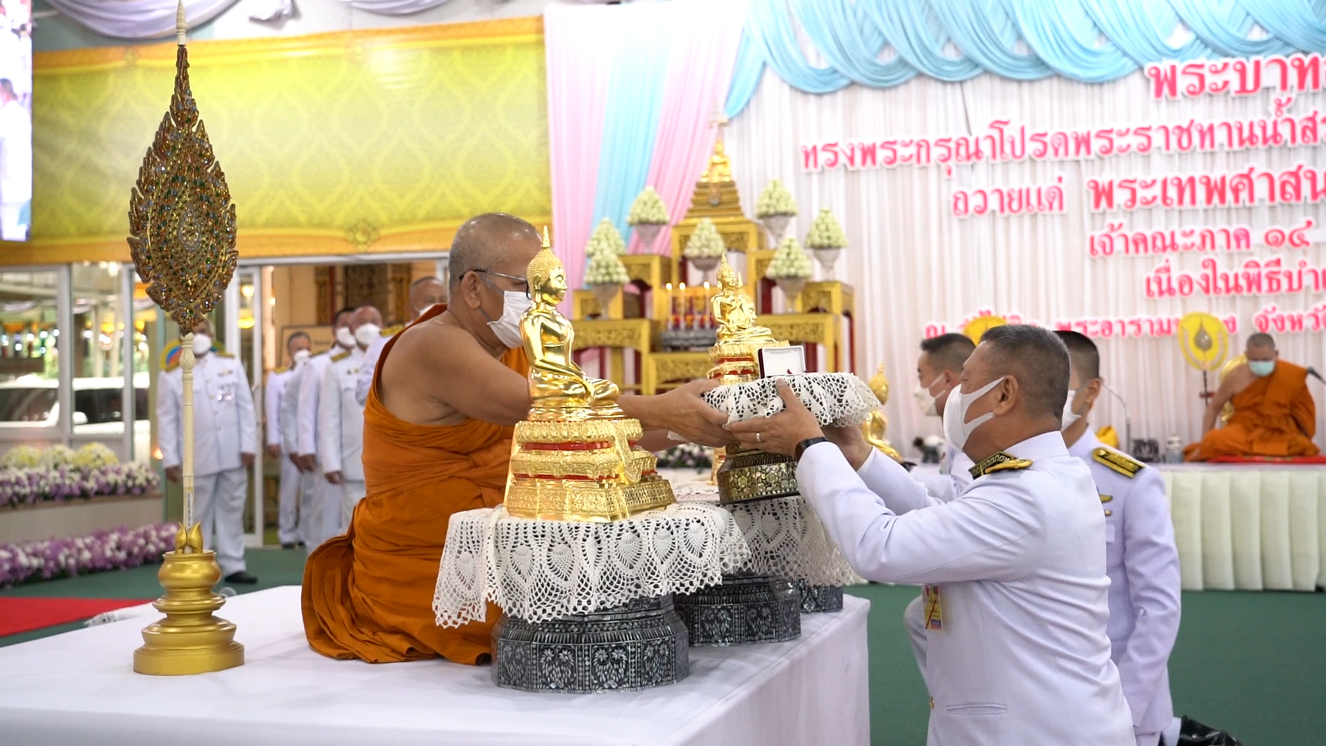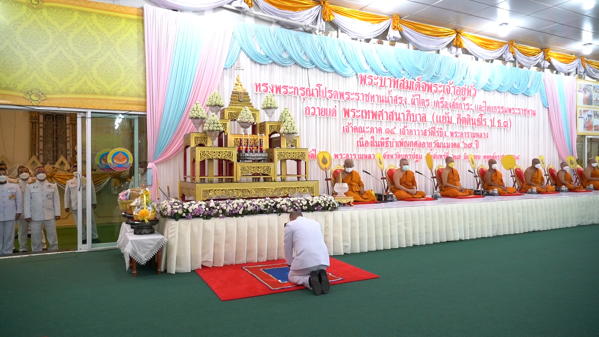 ในหลวงโปรดเกล้าฯพระราชทานน้ำสรง ผ้าไตร เครื่องสักการะ และไทยธรรมพระราชทาน ถวายแด่พระเทพศาสนาภิบาล