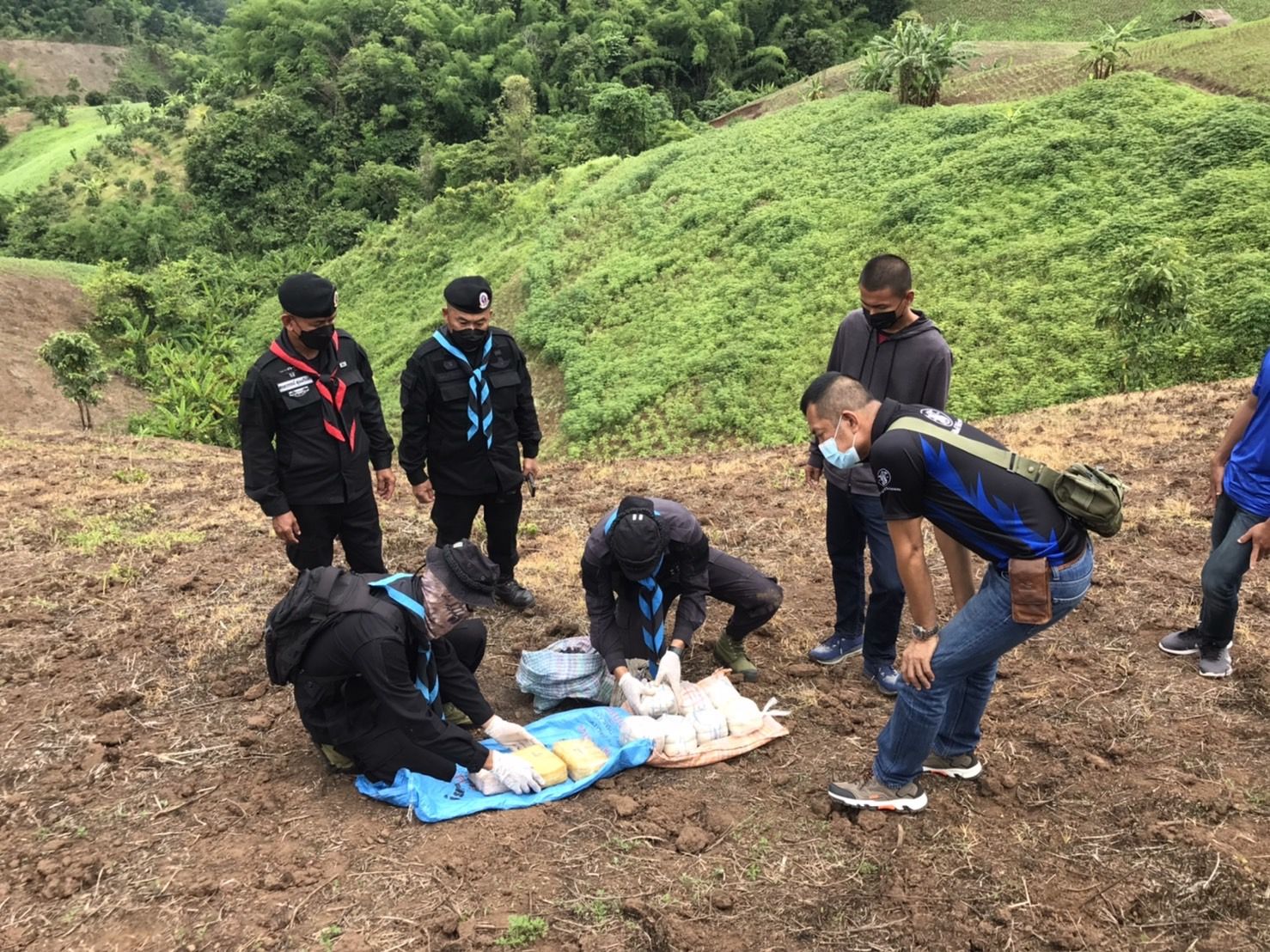 29มิ.ย.2565 ร้อย.ทพ.3201 บก.ควบคุม ทพ.ศปก.ทภ.3 จัด กพ. ลว.พิสูจน์ทราบ และเฝ้าตรวจ บริเวณ ช่องทาง บ.ป่ากุ๋ย ม.3 ต.ท่าตอน อ.แม่อาย จว.ช.ม. ได้ตรวจพบชายต้องสงสัย สะพายกระสอบฟางดัดแปลงเป็นเป้สะพายหลัง เดินขึ้นมาจากช่องทาง บ.ป่ากุ๊ยฯ ผ่านเข้ามาในพื้นที่จึงได้แสดงตัวขอตรวจค้น แต่บุคคลชายคนดังกล่าวได้วิ่งหลบหนีกลับไปยังทิศทางฝั่งประเทศเพื่อนบ้าน ระหว่างหลบหนีได้ทิ้งกระเป๋าเป้ฯไว้ หน่วยจึงได้ประสาน จนท.ตร.สภ.แม่อาย เข้ามาดำเนินการตรวจสอบของกลาง