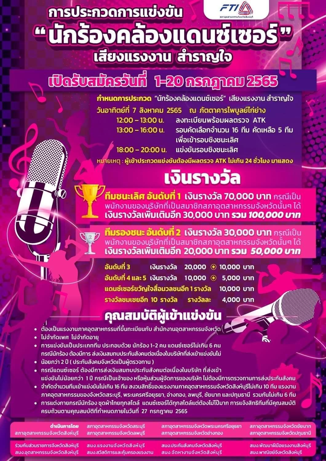 สภาอุตสาหกรรมสิงห์บุรี จัดงานใหญ่ “นักร้องคล้องแดนซ์เซอร์” เสียงแรงงาน สำราญใจ..ชิงรางวัลเพียบ