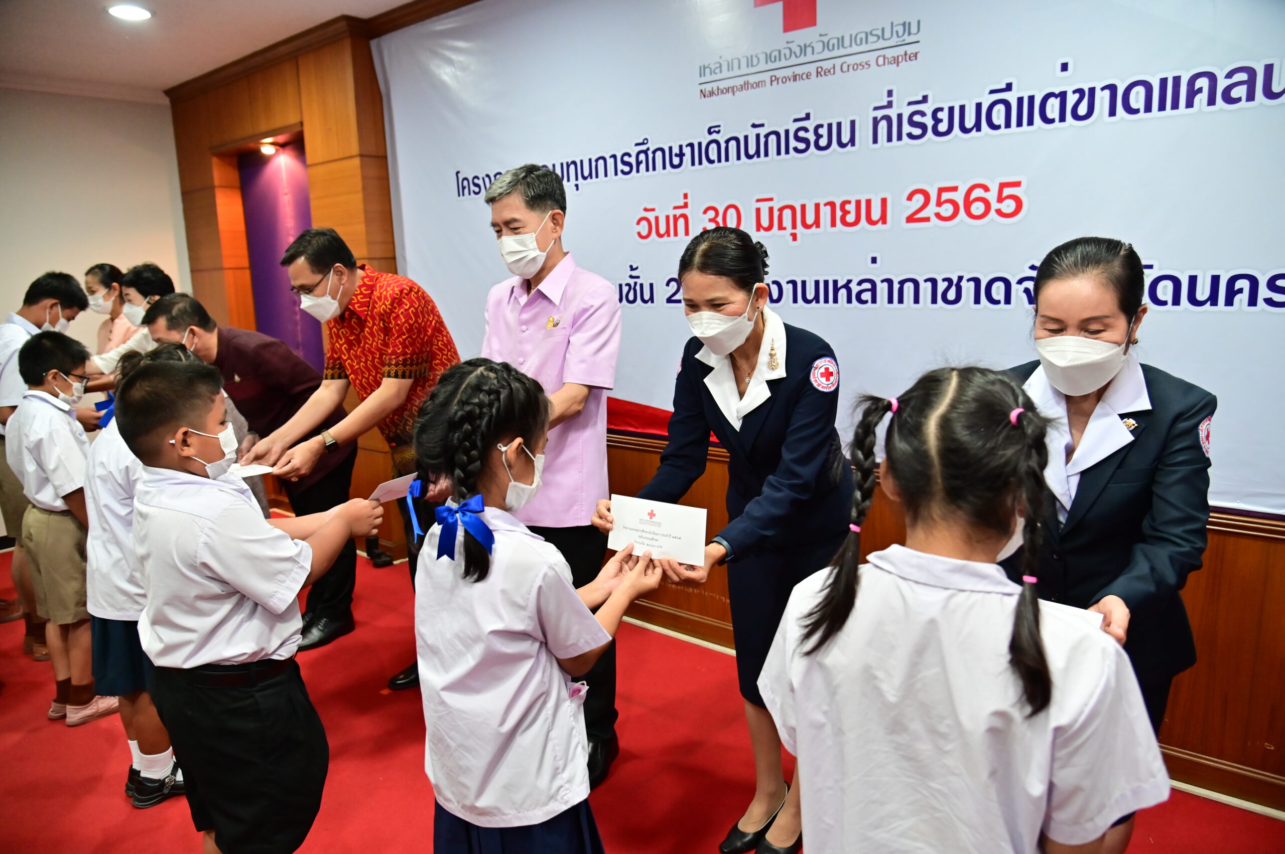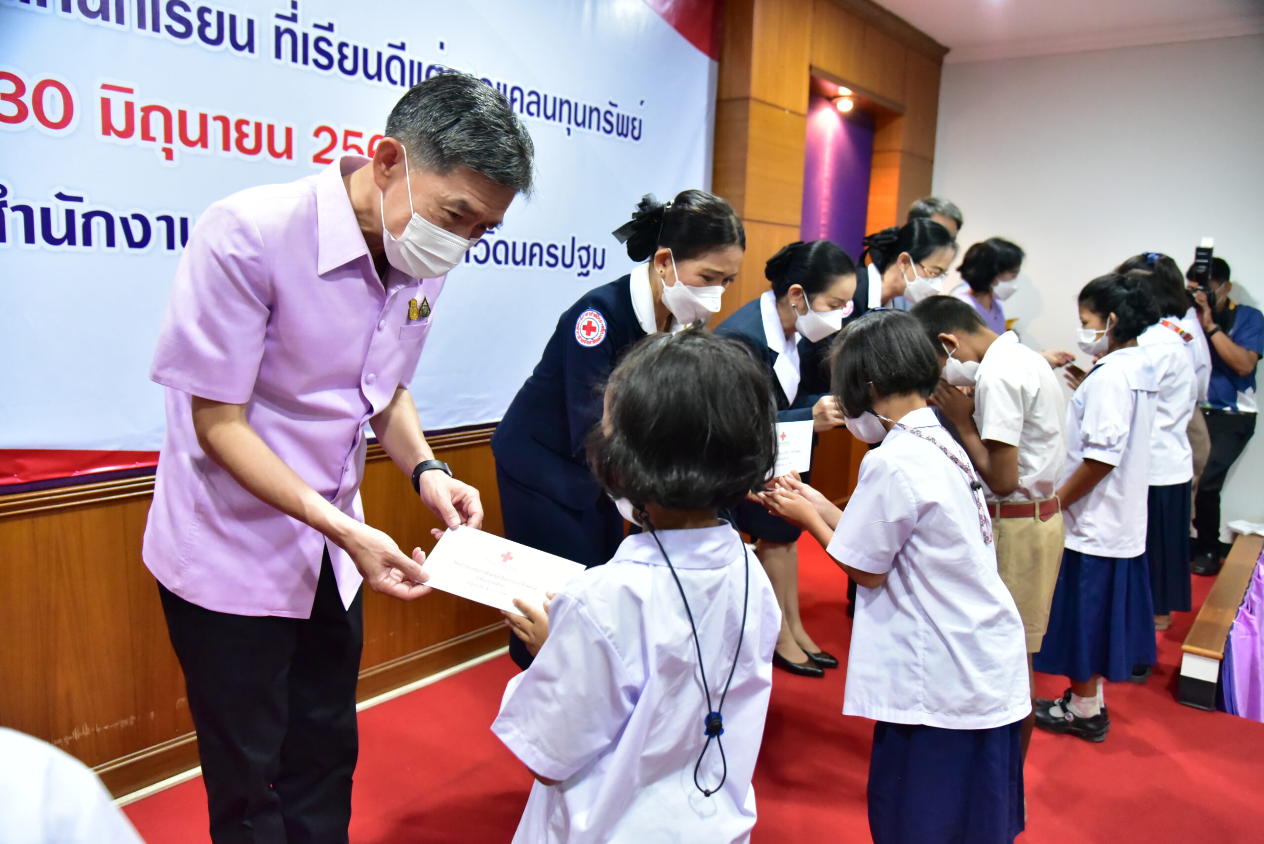สำนักงานเหล่ากาชาดจังหวัดนครปฐม มอบทุนการศึกษาแก่นักเรียนที่เรียนดี แต่ขาดแคลนทุนทรัพย์