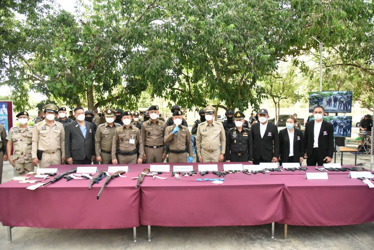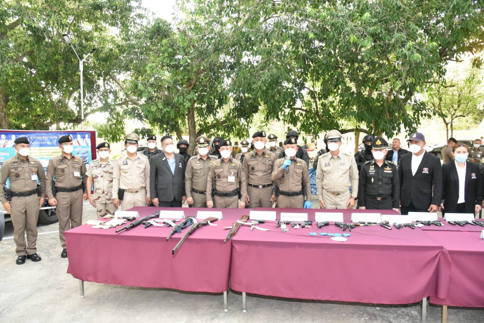 นอกจากนี้ ตำรวจภูธรภาค 7 และตำรวจภูธรจังหวัดนครปฐม ได้แถลงผลการจับกุมผู้ต้องหาตามหมายจับ จำนวน 5 ราย ได้แก่ข้อหาร่วมกันฆ่าผู้อื่นโดยไตร่ตรองไว้ก่อน ร่วมกันพยายามฆ่าผู้อื่นโดยไตร่ตรองไว้ก่อน มีอาวุธปืนไว้ในครอบครองโดยไม่ได้รับอนุญาต พาอาวุธปืนติดตัวเข้าไปในเมือง หมู่บ้าน หรือทางสาธารณะโดยไม่มีเหตุจำเป็นเร่งด่วนตามสมควรแก่พฤติการณ์ โดยไม่ได้รับอนุญาตให้มีอาวุธปืนติดตัว และยิงปืนซึ่งใช้ดินระเบิดโดยใช่เหตุในเมือง หมู่บ้านหรือที่ชุมชน พร้อมของกลางเป็นอาวุธปืนหลายชนิด ซองบรรจุกระสุน เครื่องกระสุนปืน ปลอกกระสุนปืน รถยนต์ รถจักรยานยนต์ และอื่นๆ อีกเป็นจำนวนมาก