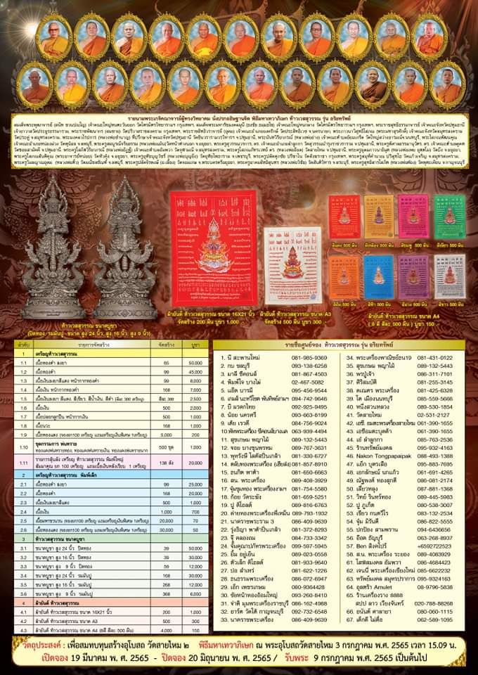 วัดสายไหม ได้จัดสร้างเหรียญท้าวเวสสุรรณ รุ่นอริยทรัพย์”(รุ่นแรก)เป็นครั้งแรก ประกอบไปด้วย