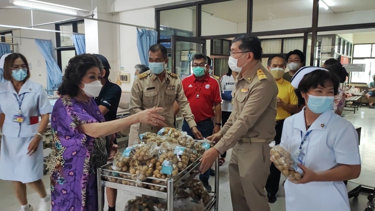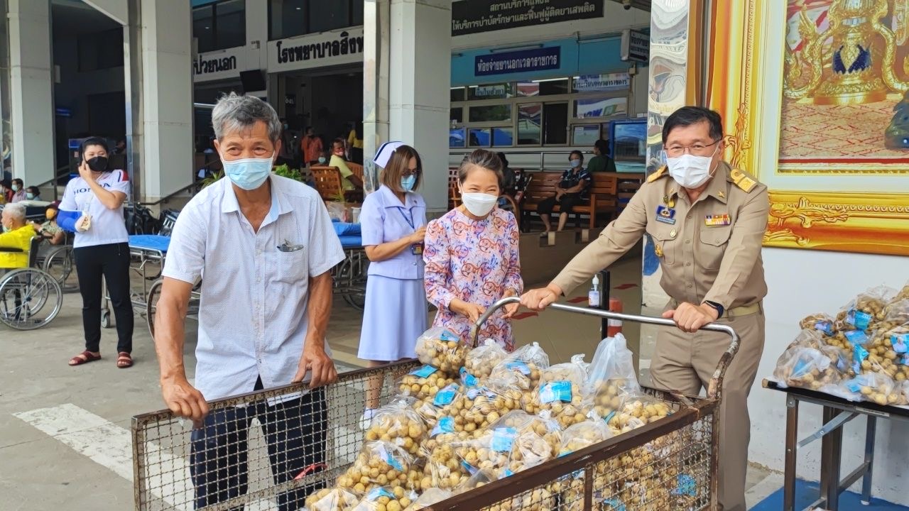 โดยลองกองที่นำมาแจกในวันนี้ เป็นลองกองที่มีพันธมิตร เพื่อนๆที่รักใคร่ชอบพอกัน นำทีมโดยคุณสมเกียรติ และคุณพัชนี เหลืองดิลก เจ้าของกิจการและตัวแทนผู้จัดจำหน่ายรถจักรยานยนต์ฮอนด้า ภายใต้ชื่อกิจการ สิงห์สยามยานยนต์ เดินทางไปเหมาที่สวนลองกองในจังหวัดจันทบุรี มาจำนวน 1060 กิโลกรัม ก่อนจะได้รับความช่วยเหลือจากวิทยาลัยอาชีวศึกษาสิงห์บุรี นำนักศึกษามาช่วยกัน คัด ชั่ง และบรรจุใส่ถุงๆละ 1 กิโลกรัม ก่อนจะนำมาแจกจ่ายที่โรงพยาบาลสิงห์บุรี