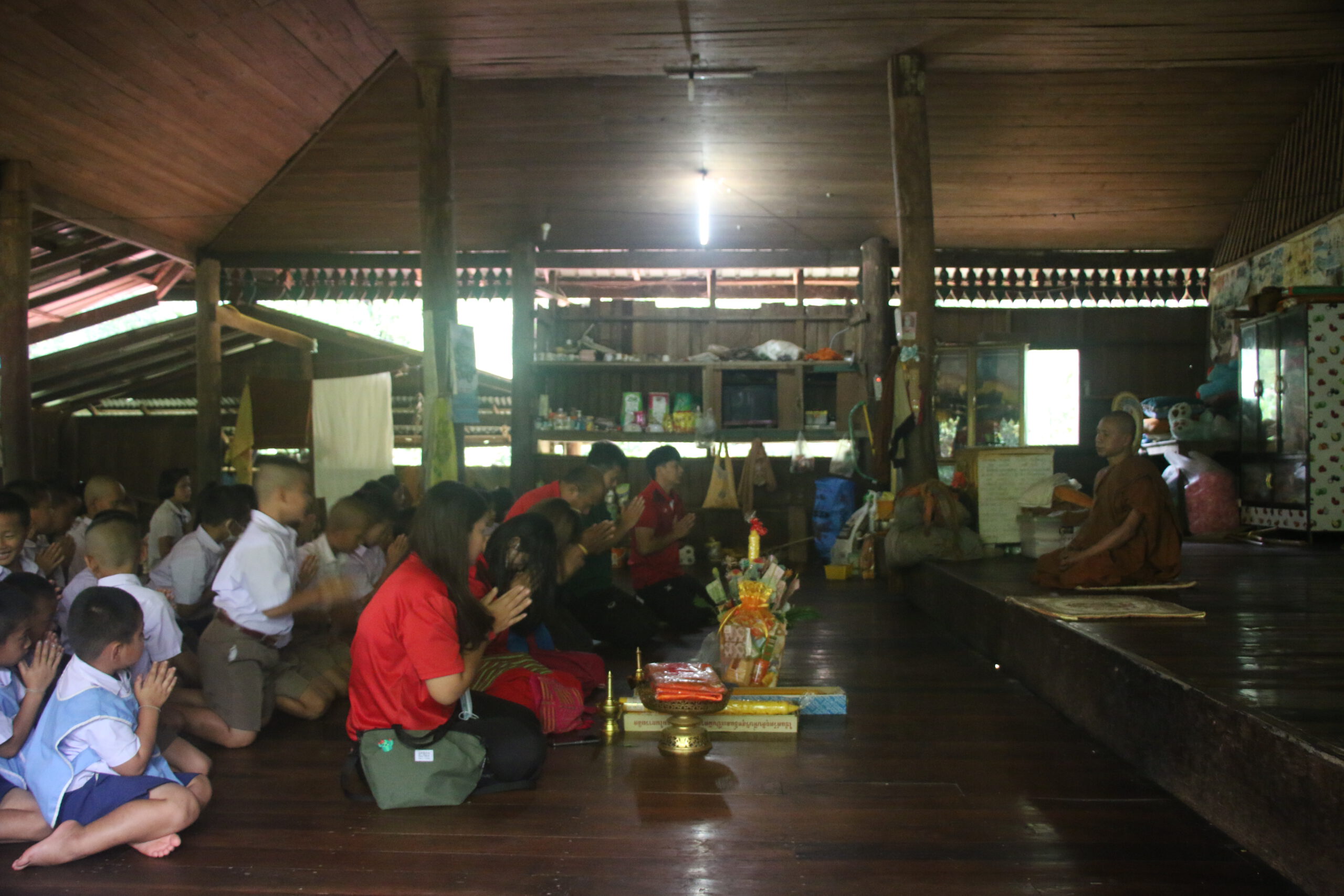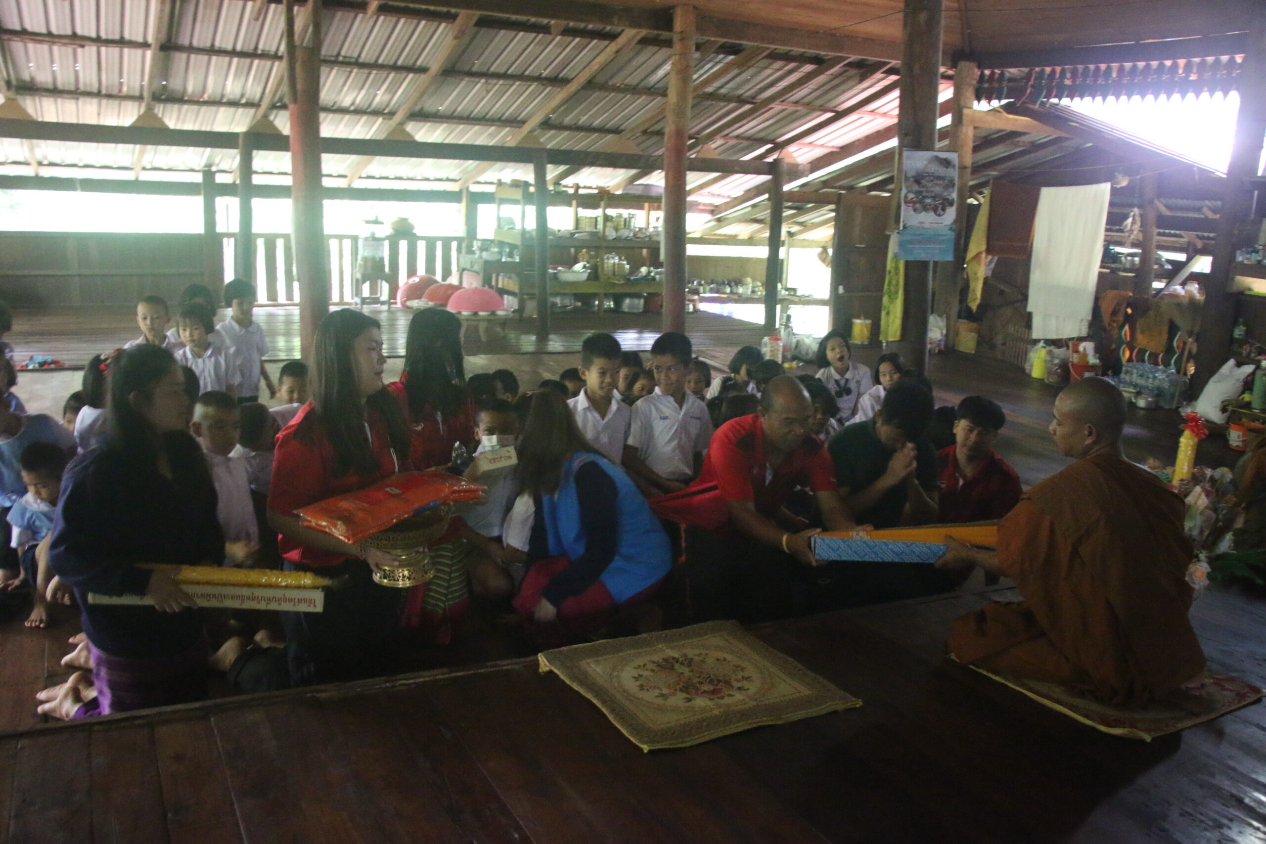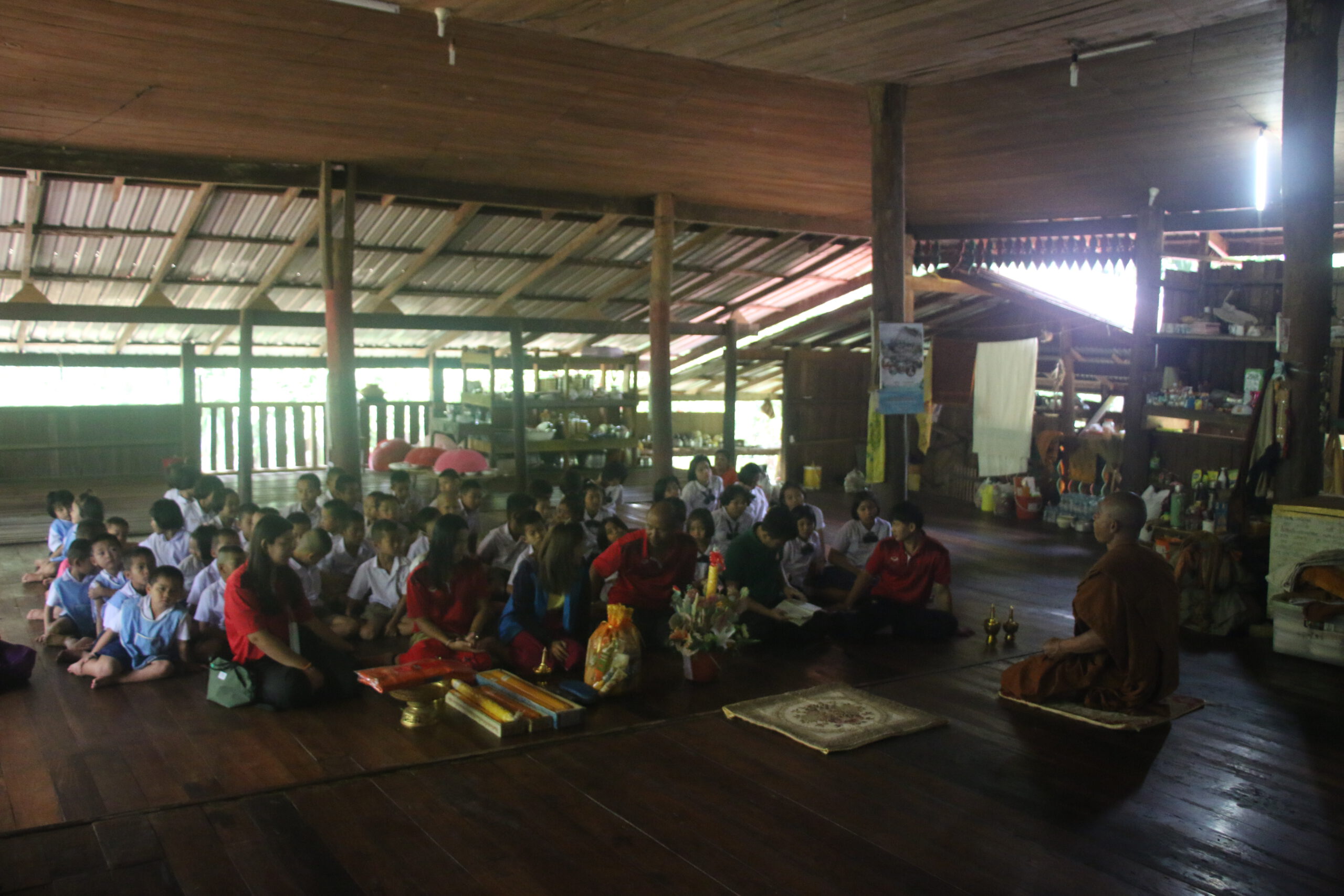 ซึ่งหลังจากตักบาตรพระสงฆ์แล้วในเวลาต่อมาคณะครูโรงเรียนบ้านกองม่องทะ สาขา บ้านไล่โว่ได้พานักเรียนของโรงเรียนทั้งหมด 71 คน ซึ่งเป็นลูกหลานของชาวบ้านเดินทางมายังเพื่อถวายเทียนพรรษา และจตุปัจจัยไทยธรรม เพื่อถวายแก่พระสงฆ์ที่จำพรรษาที่วัดไล่โว่แห่งนี้ ซึ่งเป็นกิจกรรมที่ครูและนักเรียนที่นี่ร่วมกันปฎิบัติทุกๆปีในวันเข้าพรรษา ทั้งนี้เพื่อปลูกฝังให้เด็กๆได้รู้จักวันสำคัญทางพุทธศาสนา และได้เข้าวัดทำบุญตามวิถีของชาวพุทธที่ชาวบ้านปฏิบัติมาตั้งแต่ในอดีต