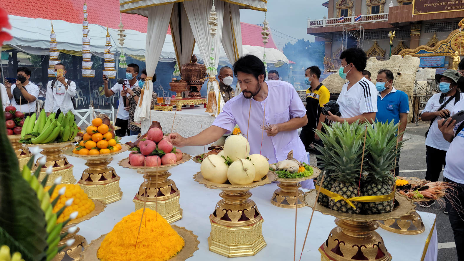 โดยมีหัวหน้าส่วนราชการ ตำรวจ พ่อค้าแม่ขาย และประชาชนจำนวนมาก เข้าร่วมพิธี ขณะที่ นายบิณฑ์ บรรลือฤทธิ์ ได้ถอดสร้อยคอทองคำหนัก 5 บาท ออกจากคอ นำมาหลอมรวมหล่อหน้าตักขององค์พระพุทธเมตตา ปางมหาวิชัย ด้วย หลังเสร็จพิธีปรากฏว่ามีฝนตกลงมาอย่างหนักและมีลมกรรโชกมาอย่างแรงนานกว่า 10 นาที ก่อนที่ทั้งลมและฝนจะหยุดตกเหมือนไม่มีอะไรเกิดขึ้น ชาวบ้านที่มาร่วมในพิธีต่างพากันยกมือไหว้ เพราะเชื่อว่าสิ่งศักดิ์สิทธิ์และเทดาร่วมปะพรมน้ำมนตร์ลงในกับผู้เข้าร่วมในพิธีการในครั้งนี้เพื่อเป็นสิริมงคลครอบครัว