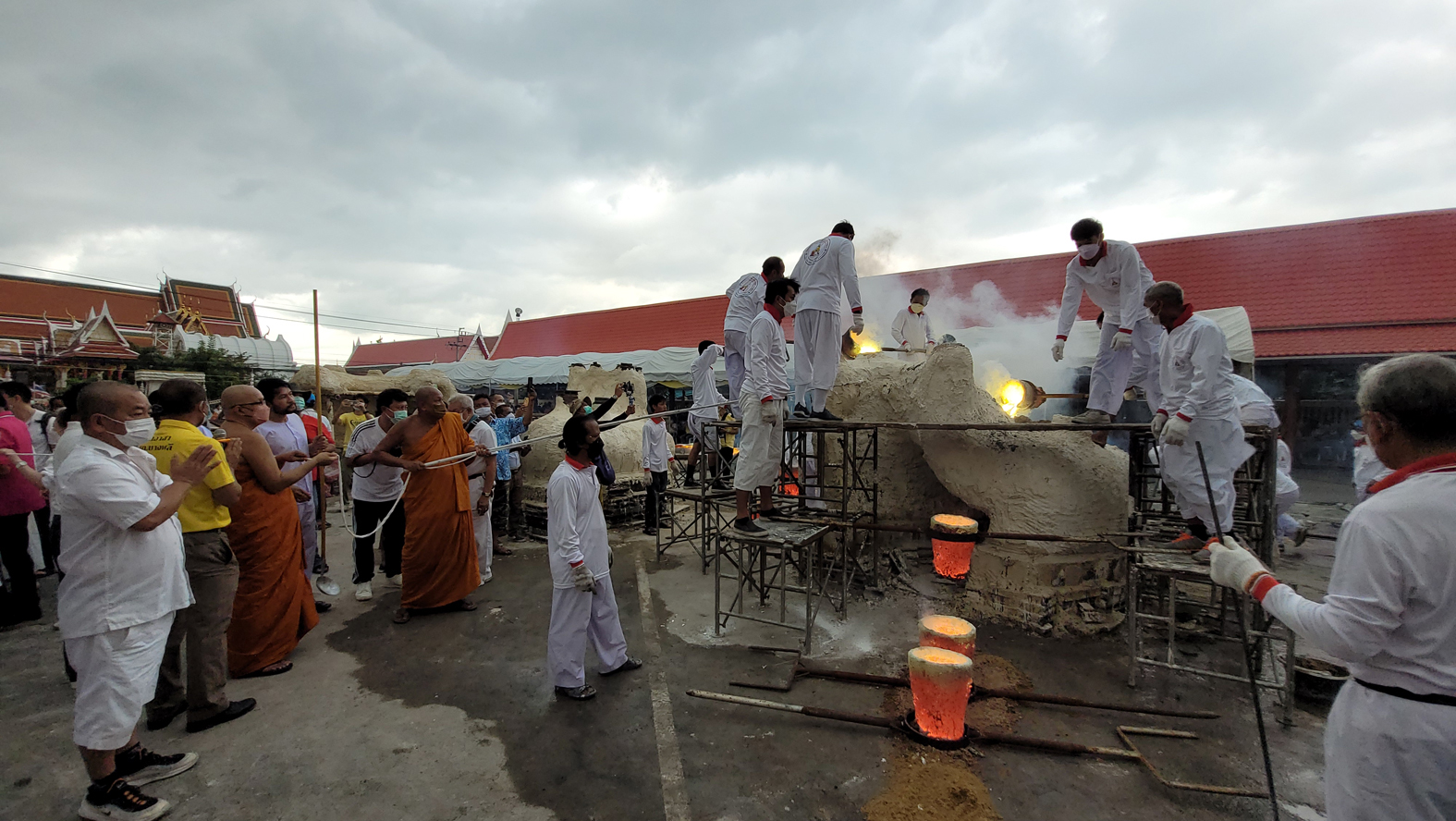 สมุทรปราการ วัดบางพลีใหญ่กลาง จัดพิธีเททองหล่อส่วนหน้าตักพระพุทธเมตตาระยะที่3เนื่องในวันอาสาฬหบูชา