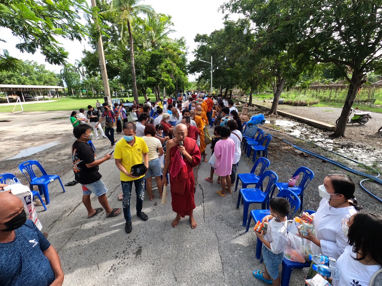 นครปฐม วัดเกจิดังลุ่มน้ำท่าจีนตักบาตรอาหารแห้ง วันเข้าพรรษา