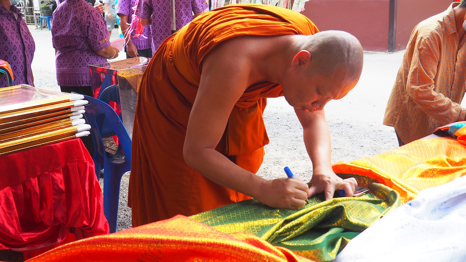 ที่วัดเถรพลาย ต.วังน้ำซับ อ.ศรีประจันต์ จ.สุพรรณบุรี พระครูพิสุทธิรัตนาภรณ์ เจ้าอาวาสวัดเถรพลาย พร้อมด้วยคณะกรรมการวัดเถรพลาย และชาวบ้าน อ.ศรีประจันต์ ร่วมกันประกอบพิธีแห่ผ้า 8 สี ห่มองค์พระเจดีย์ สมัยกรุงศรีอยุธยา สมเด็จพระนเรศวรมหาราช อายุเก่าแก่ กว่า 400 ปี ซึ่งเป็นประเพณีเก่าแก่ มีหนึ่งเดียวในจังหวัดสุพรรณบุรี ที่ได้สืบสานติดต่อกันมาหลายชั่วอายุคน เพื่อถวายเป็นพุทธบูชา ช่วงเทศกาลวันเข้าพรรษาของทุกปี