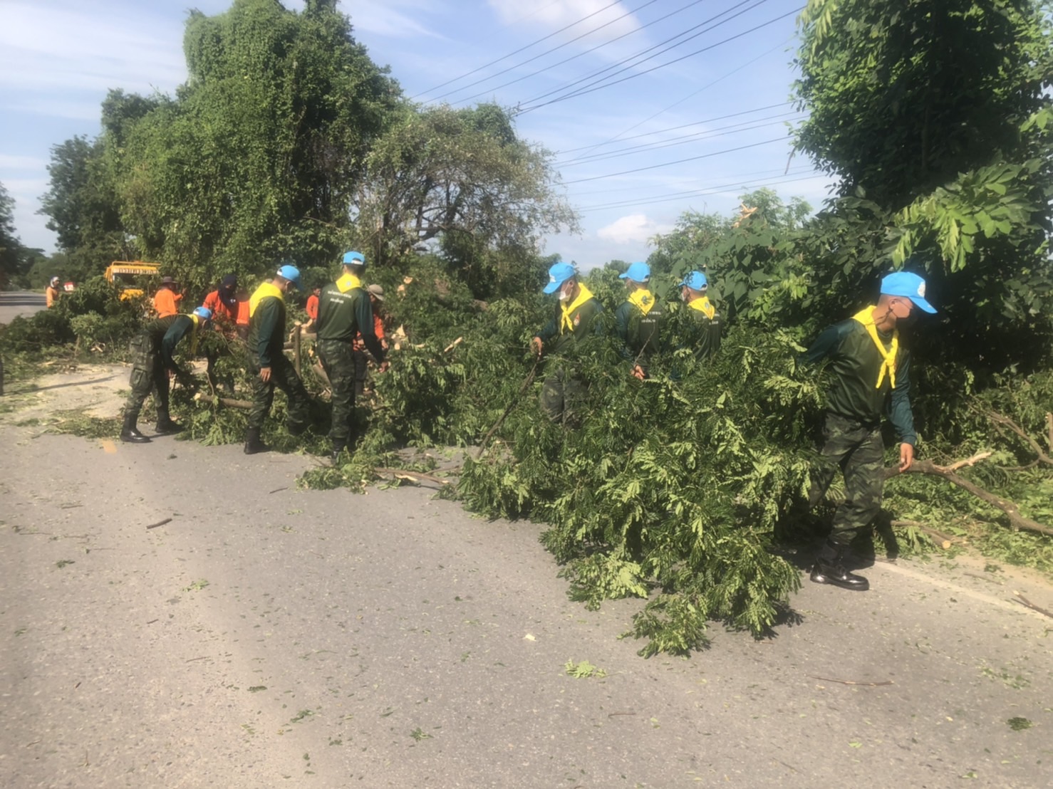 กาญจนบุรี ทหารจิตอาสา กรมทหารราบที่ 19 ช่วยตัดต้นไม้ที่ล้มขวางทางรถ