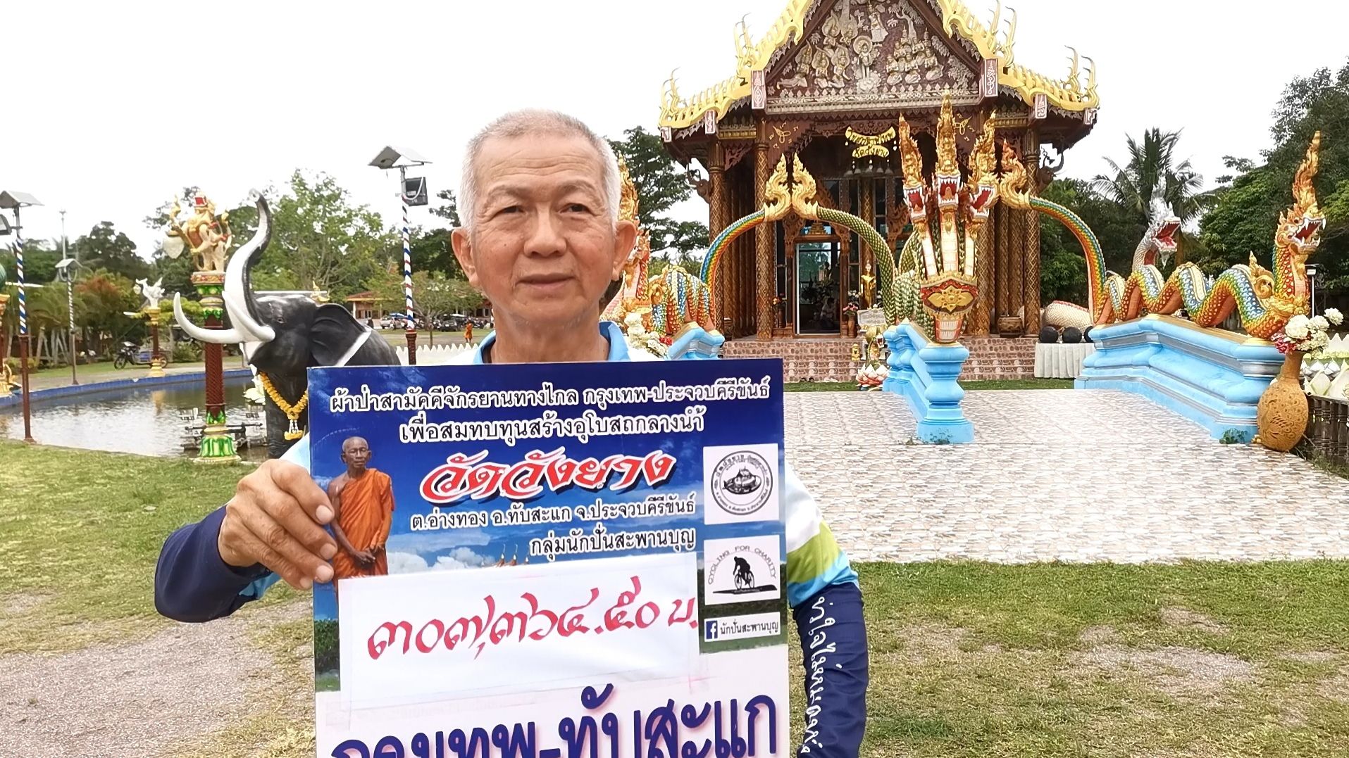 คณะนักปั่นจักรยานทางไกลแสวงบุญ ร่วมปั่นจักรยานทอกผ้าป่าสามัคคีเพื่อสมทบทุน สมทบทุนสร้างอุโบสถ์ลอยน้ำวัดวังยาง ยอดบุญกว่า 307,364.50 บาท